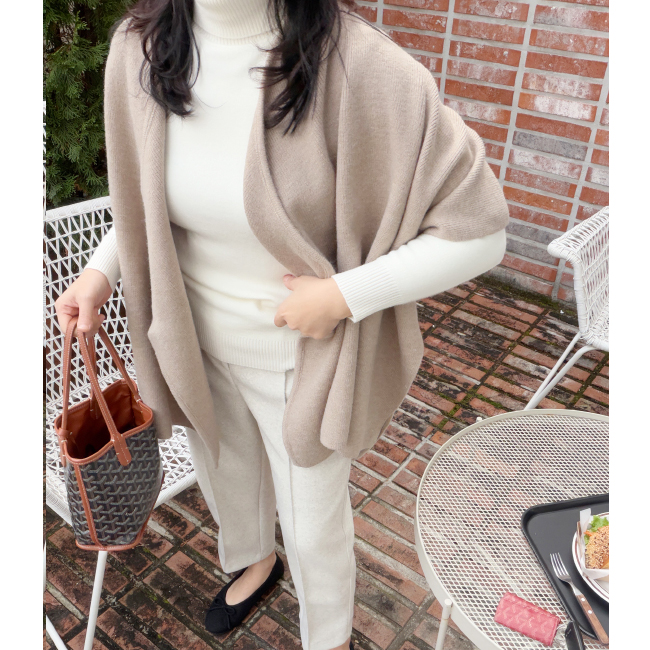 넉넉한 아웃핏으로 체형커버에 좋은 니트숄 아이템이에요,
