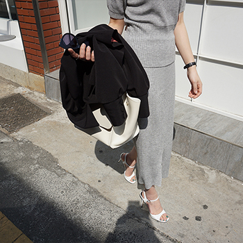 심플한 골지 나그랑 디테일로 바디핏에 따라 자연스럽게 핏되는 컬러 라운드 니트