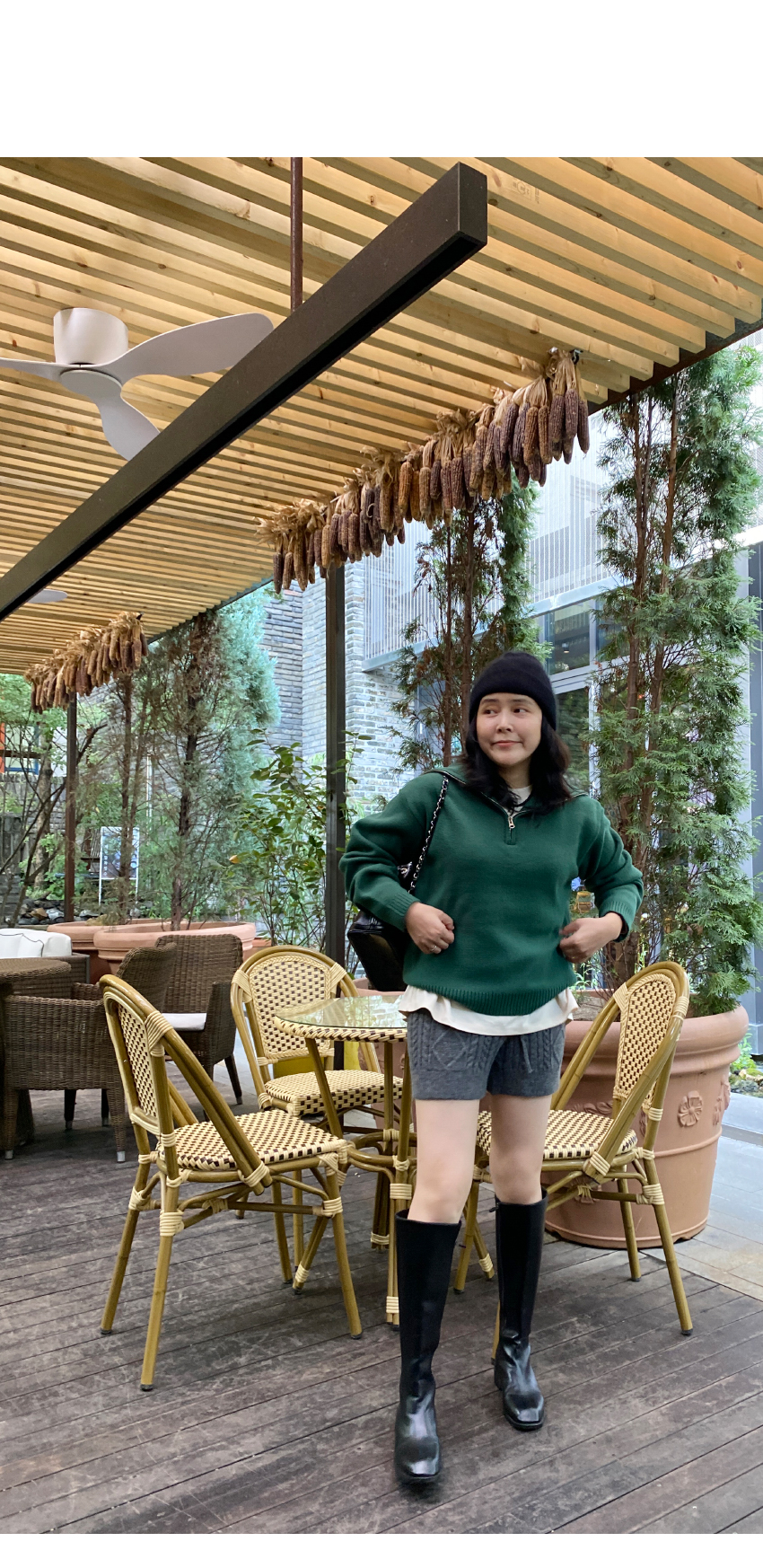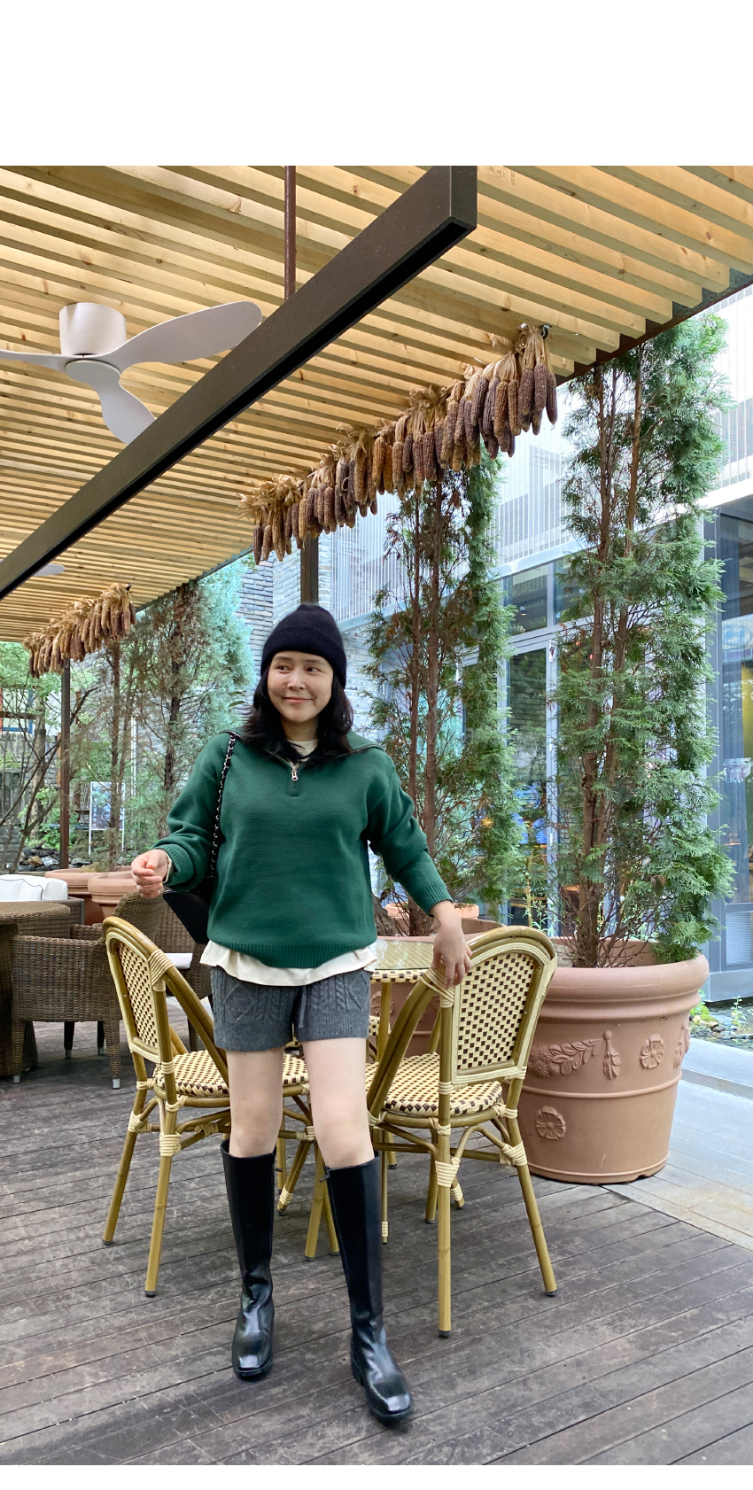 반집업라인으로 페미닌하면서도 캐주얼한 무드를 자아내며,