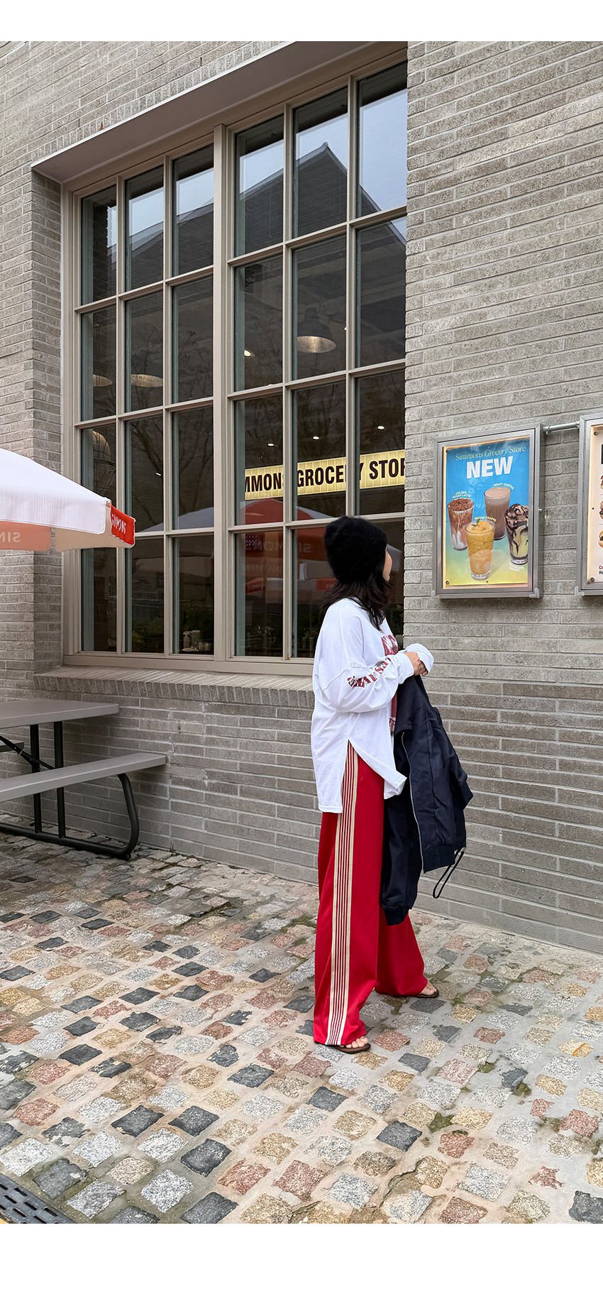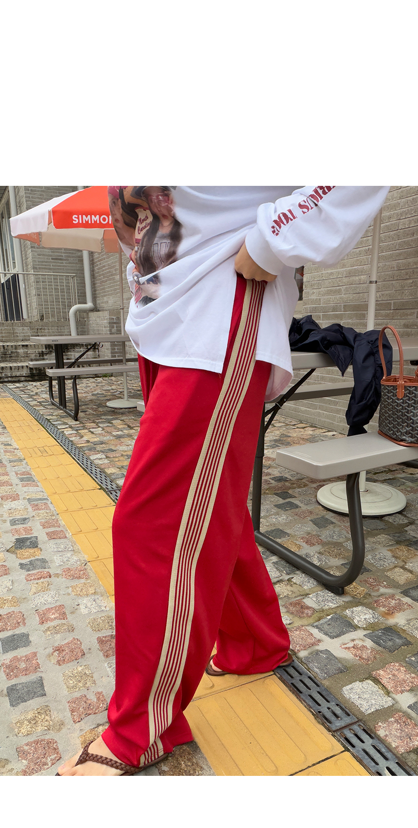사이드 스트라이프패턴으로 롱한 레그라인을 어필해주며