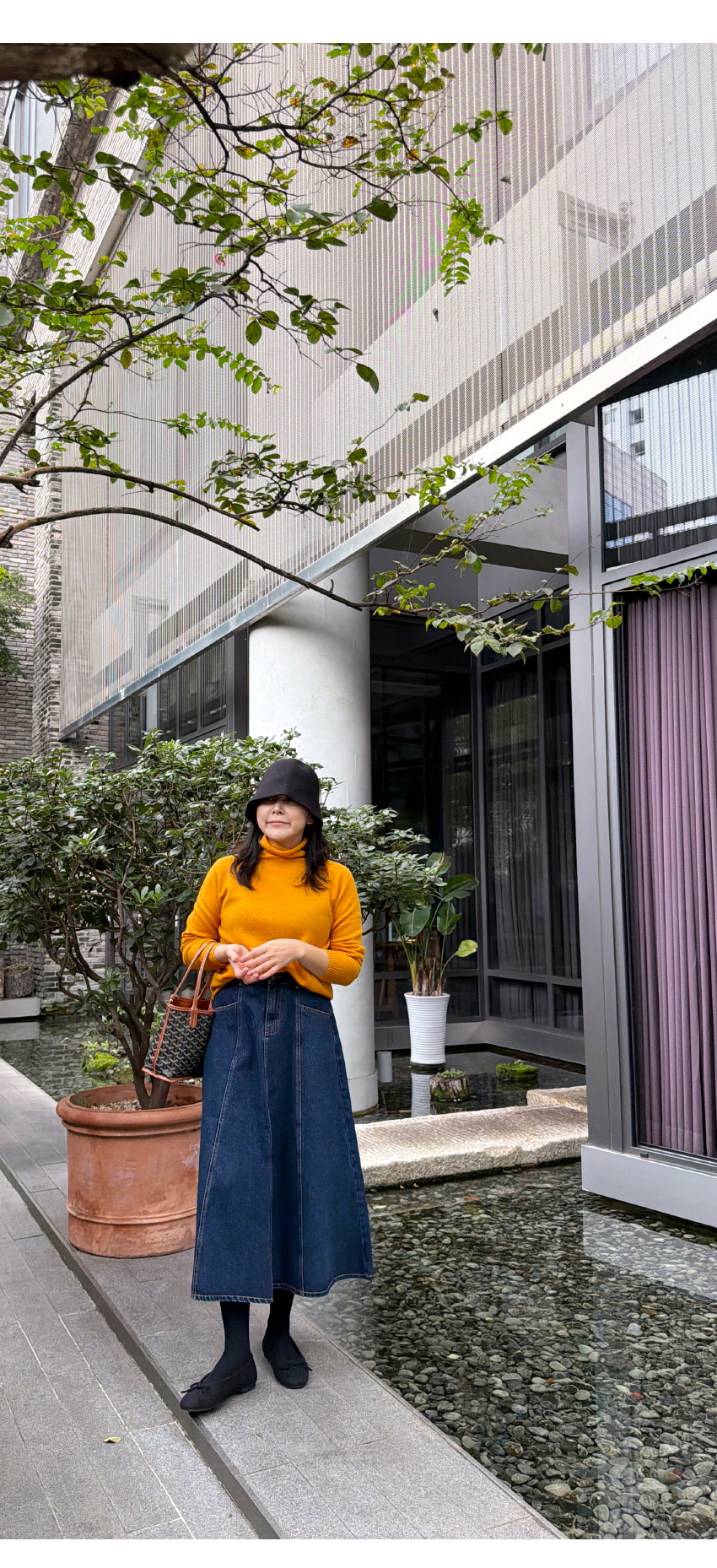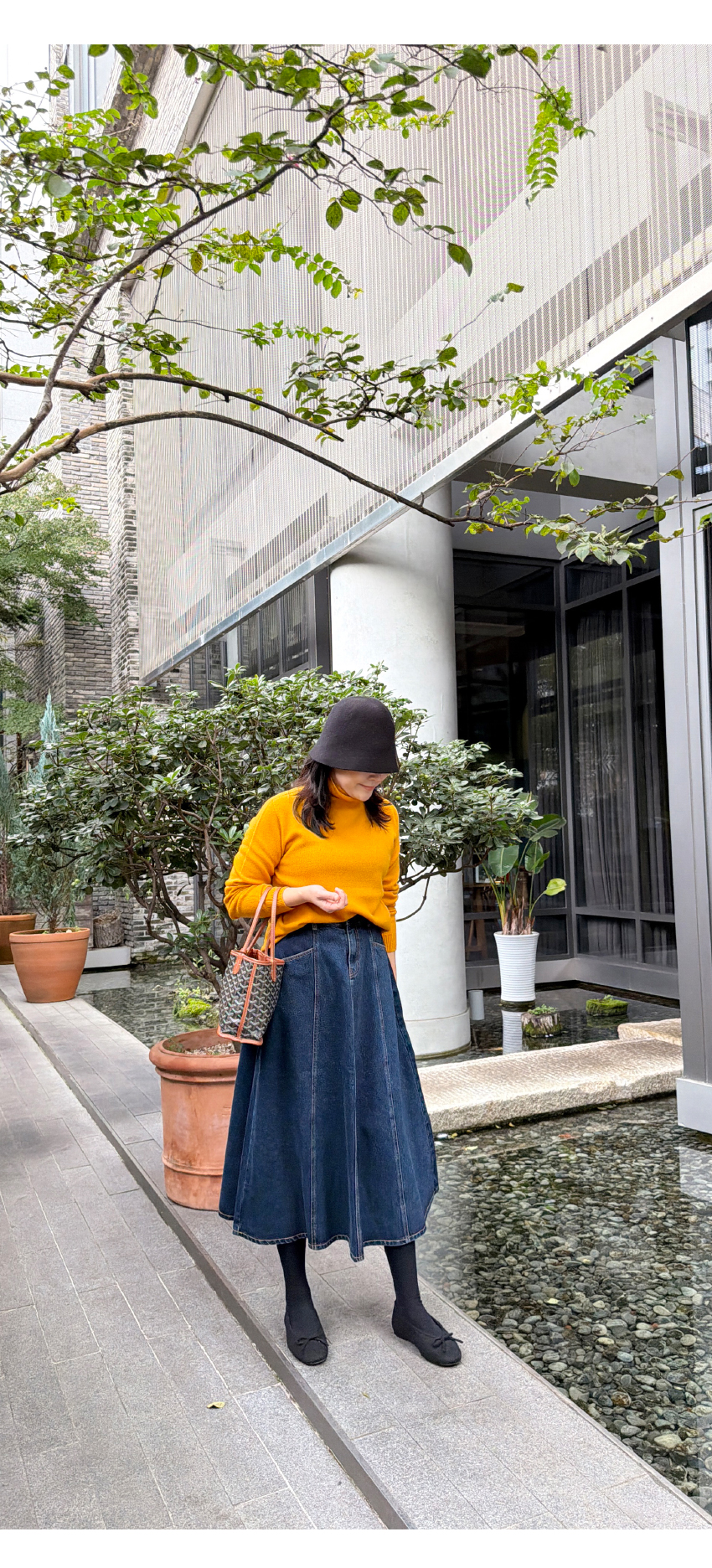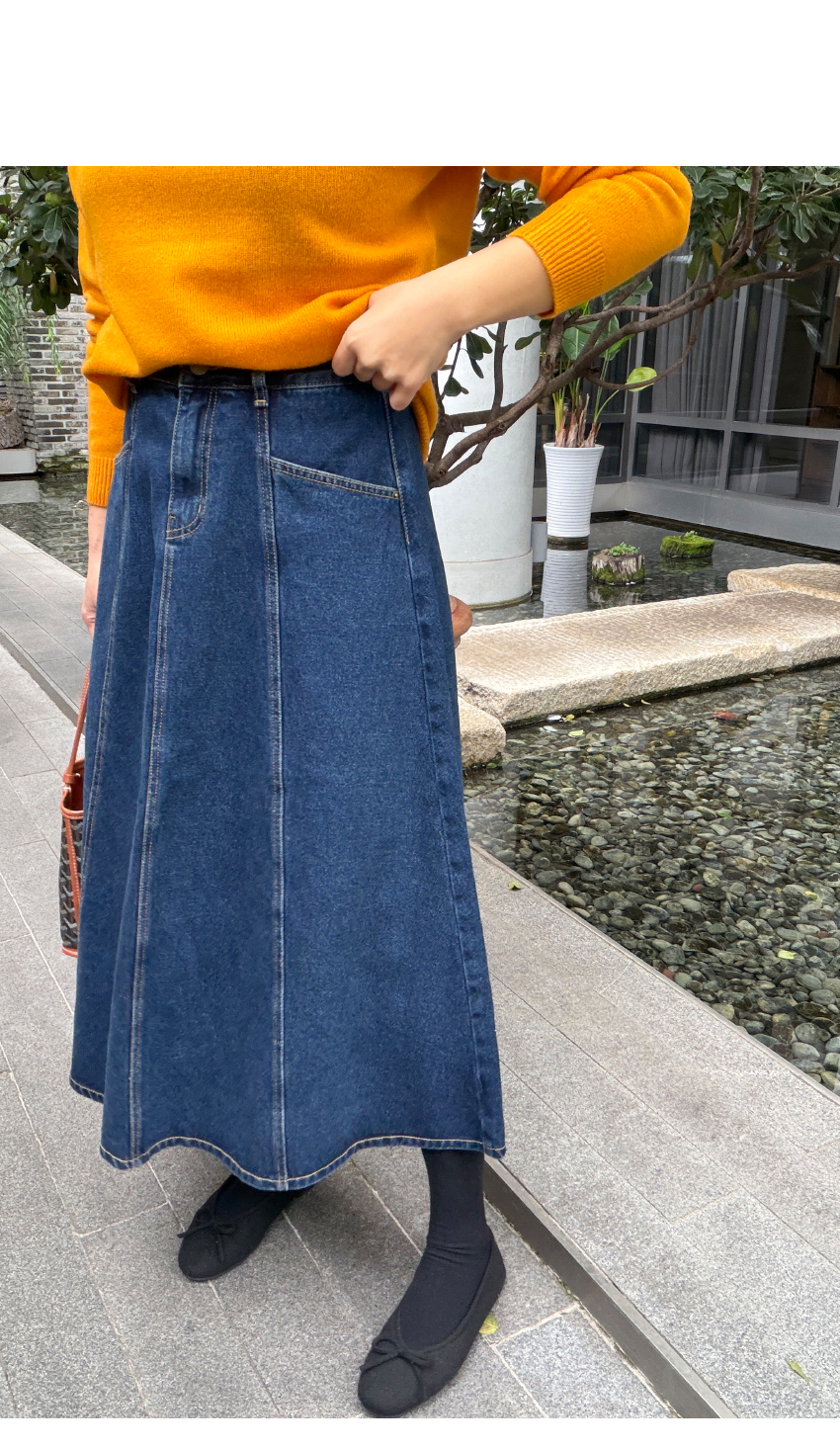언제나 사랑받는 데님스커트를 소개해드려요,차분하면서도 데일리해 자주 손이가는 제품인데요,롱한 기장에 A라인으로 떨어지는 실루엣으로네추럴하면서도 멋스럽게 매치하기 좋구요,허리뒷밴딩으로 편안한 착용감을 선사해드립니다자유로운 활동성을 보장해드리며,안감이 기모로 제작되어 따듯하게 즐기실 수 있어요,유행에 구애없는 데일리템으로 사심담아 추천드릴게요,컬러는 원컬러로 진행되며,사이즌는 S,M,L 총 3사이즈까지 진행되어요,평소 27사이즈 착용하는 저는 S사이즈로 착용해준 핏이구요,사이즈는 개인마다 차이가 있으니,정확한 사이즈는 상세표를 참고해주세요!