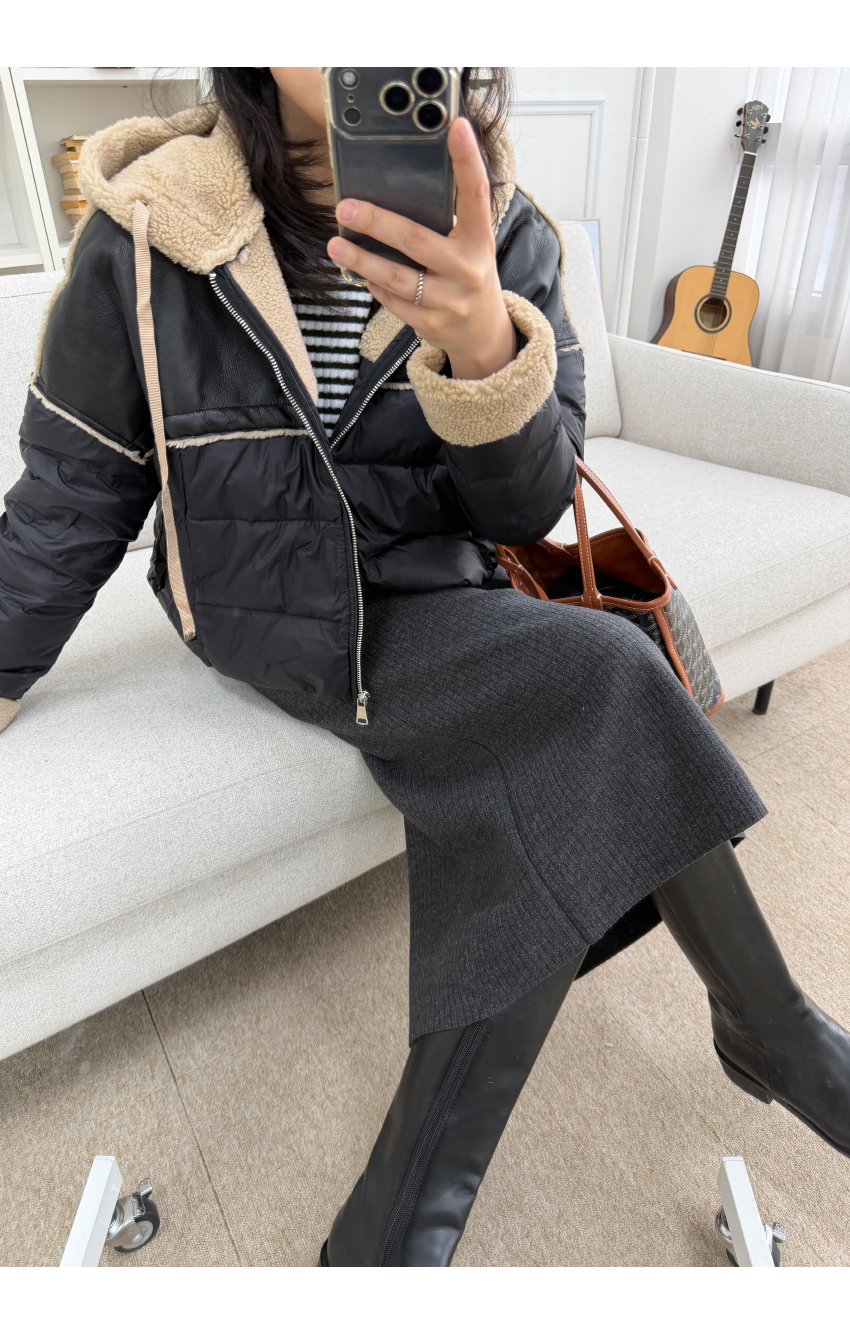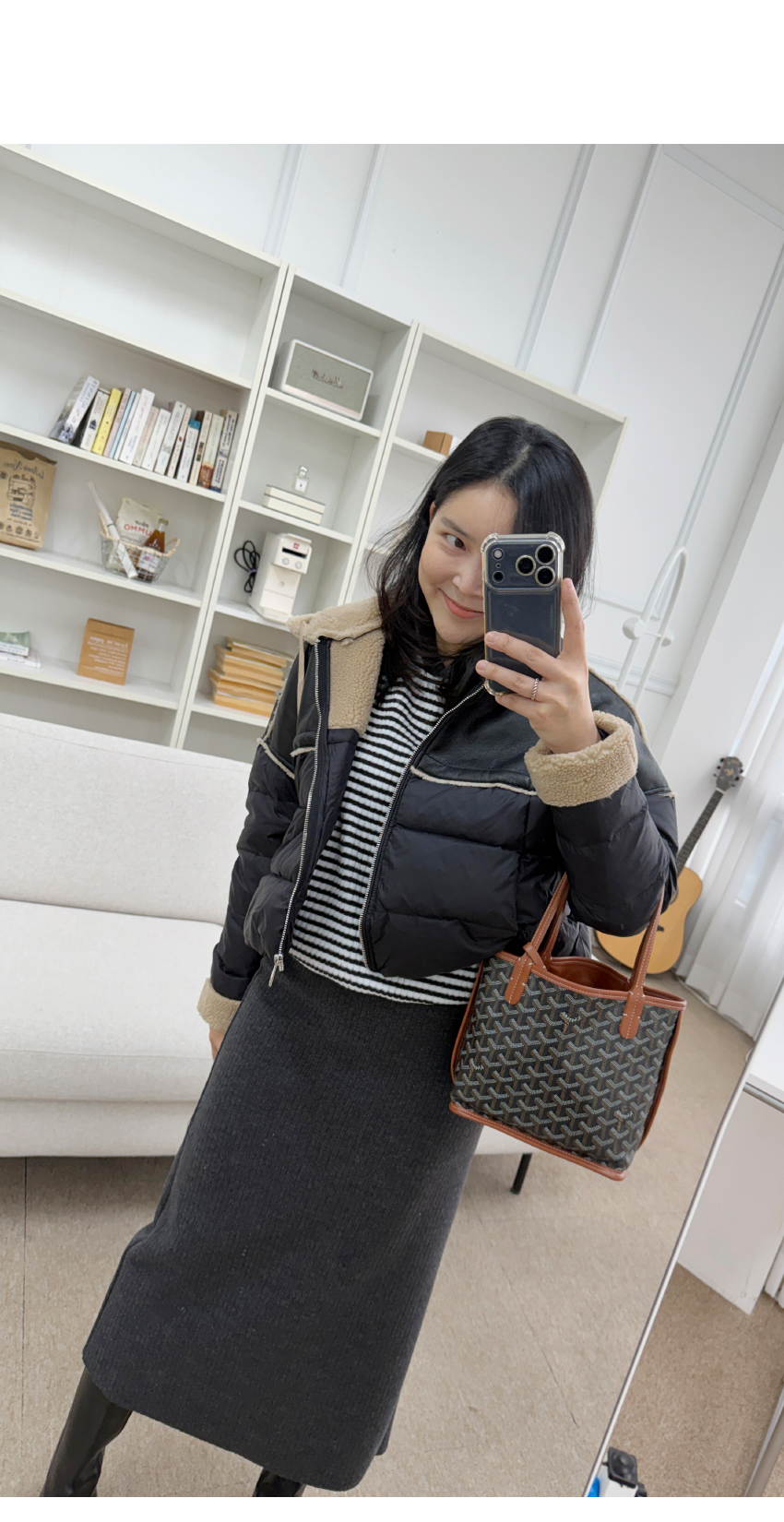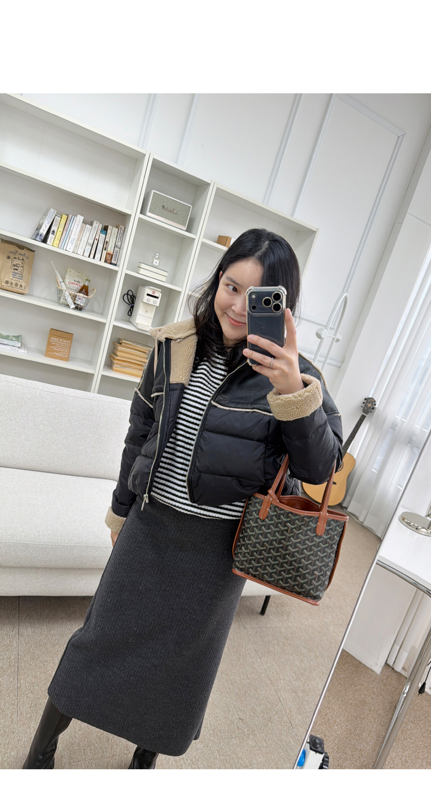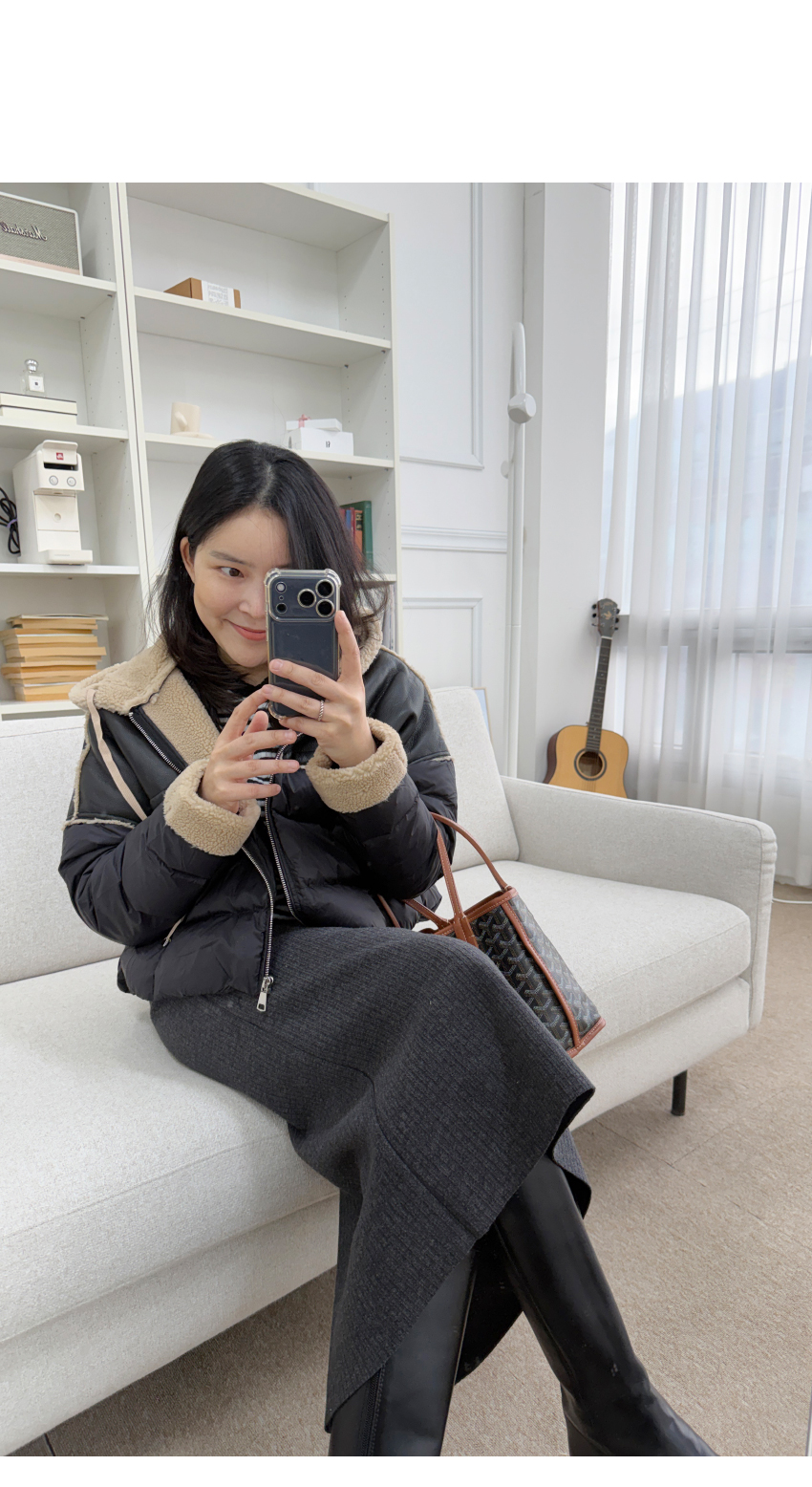 무스탕과 패딩믹스로 유니크한 실루엣을 연출해드립니다,
