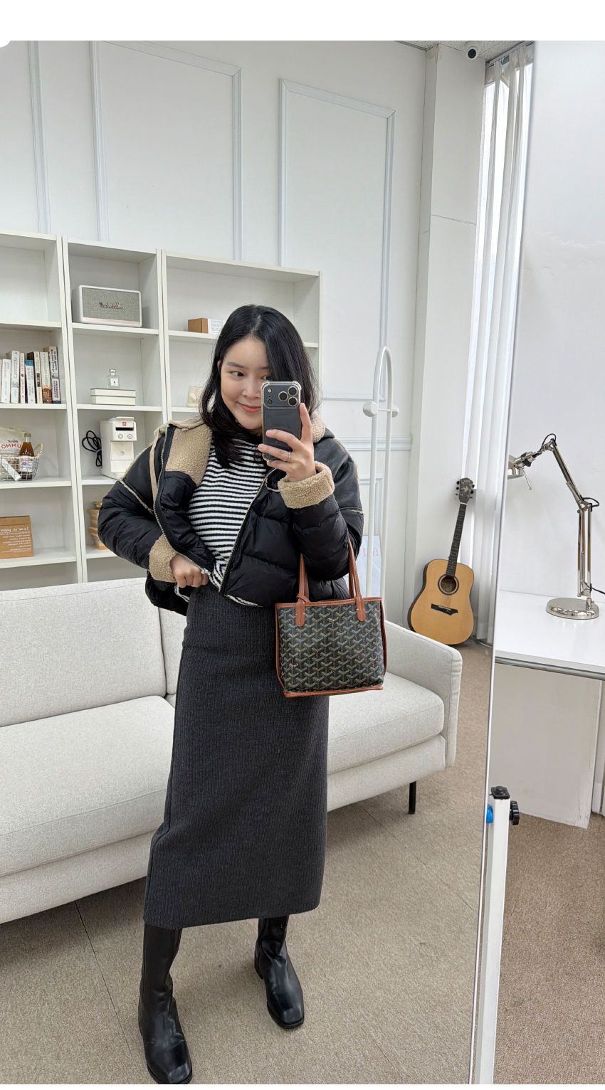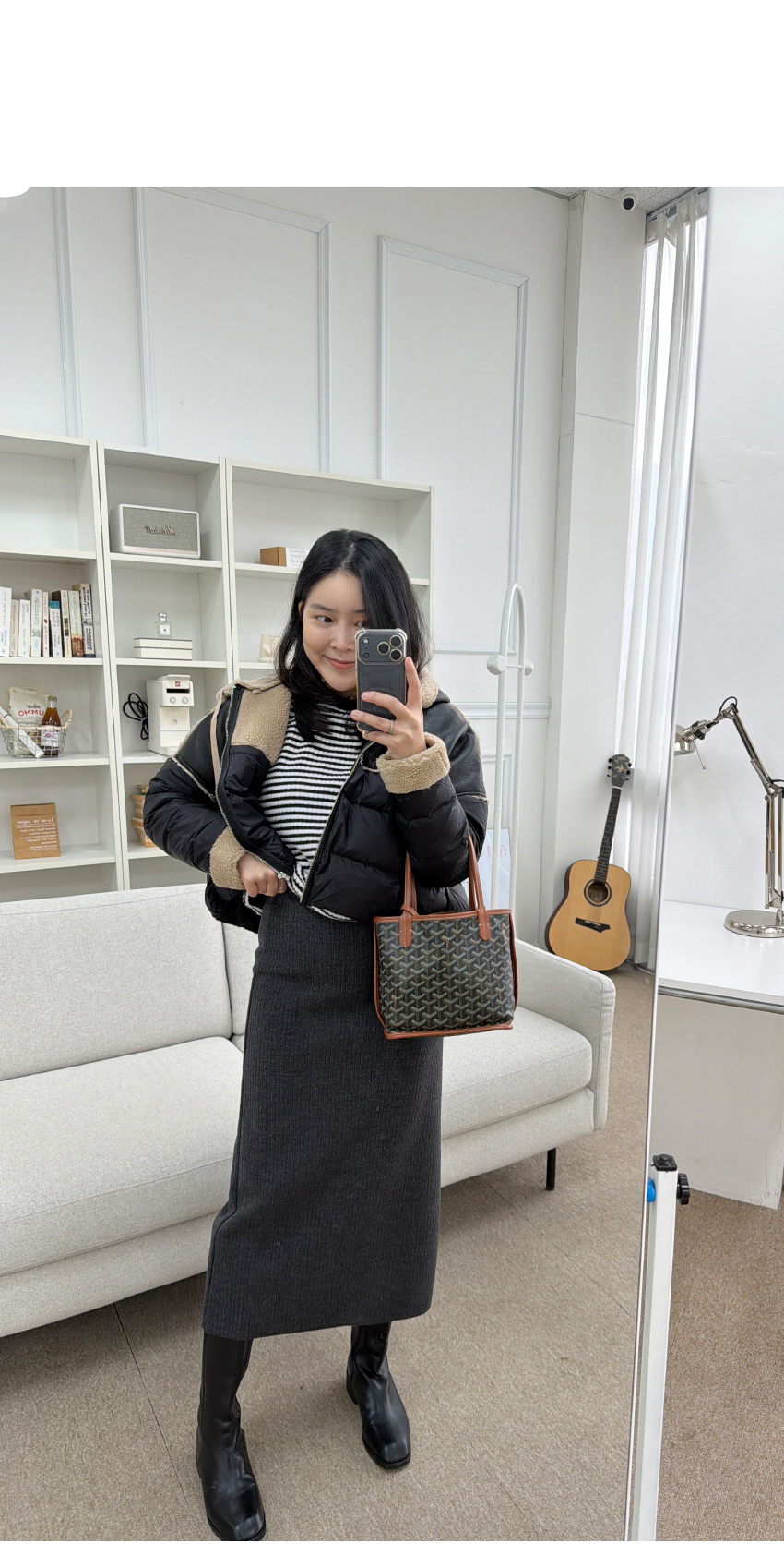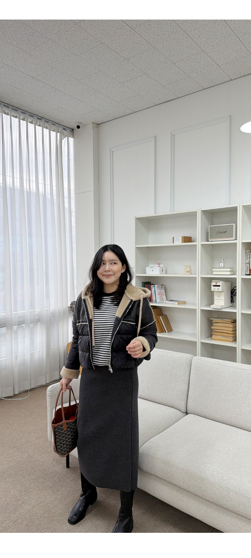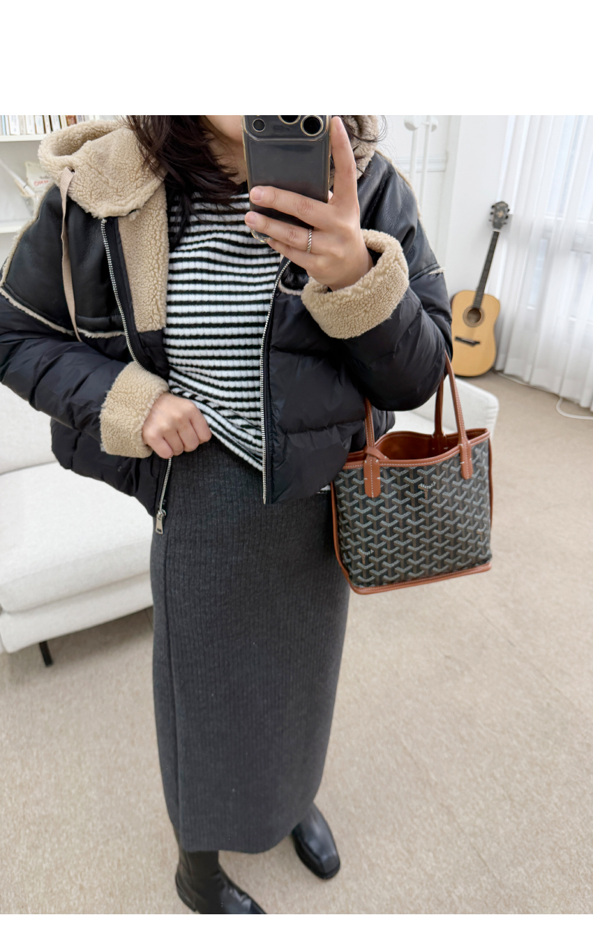 무스탕과 패딩믹스로 유니크한 실루엣을 연출해드립니다,