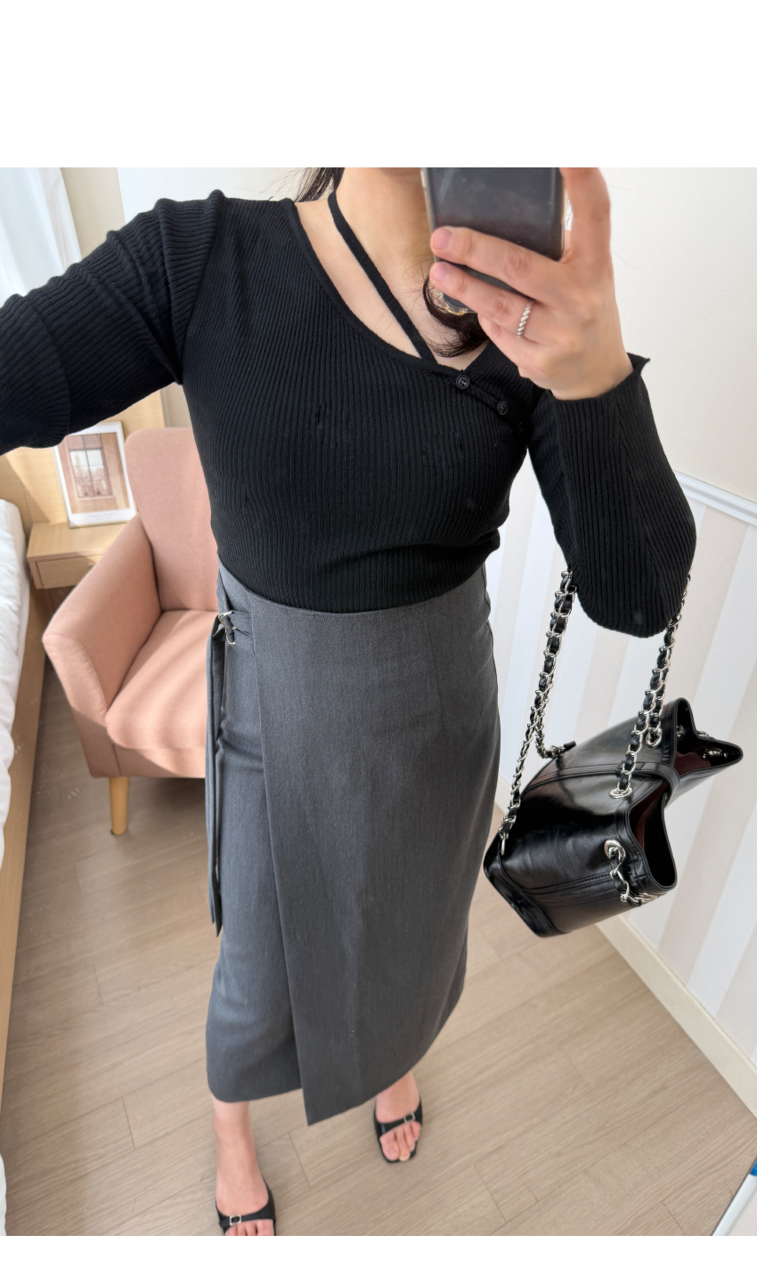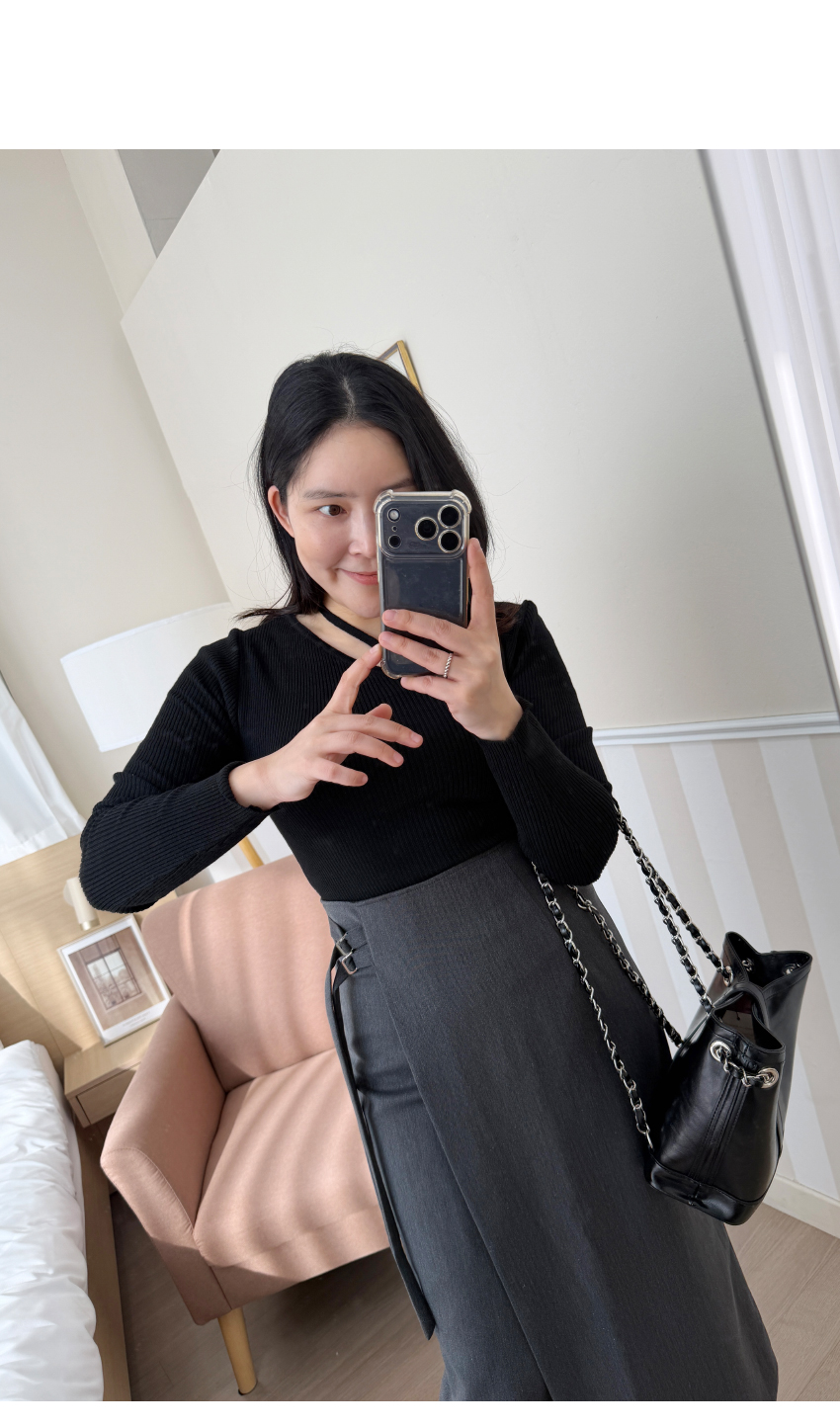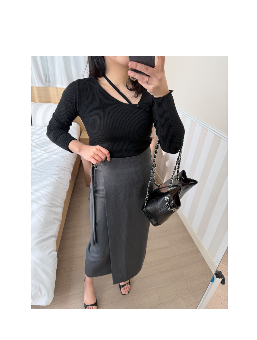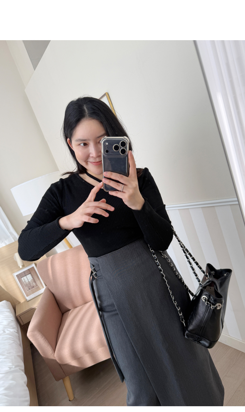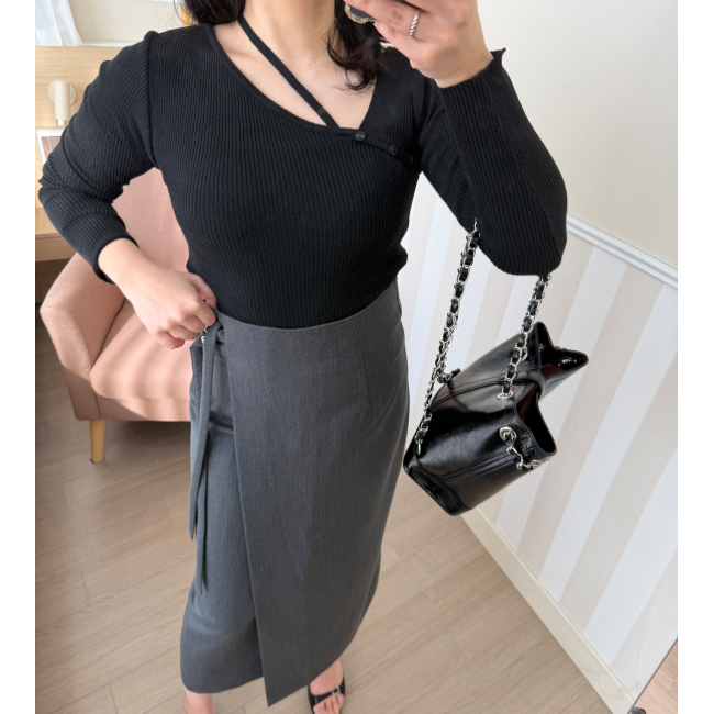 언발 라인의 니트아이템이예요,군더더기 없이 심플한 디테일로 다양한 아이템과 코디가 이지하며,늘어짐이나 변형이 적어 오래도록 즐기시기 좋은 아이템이에요,쇄골라인이 살짝 드러나여리여리한 실루엣을 어필해주며,네크라인 언발 끈이 마련되어 섹슈얼한 포인트를 더해드립니다,자켓속이나 가디건등 다양한 아우터에 이너로도 활용하기 좋으며,슬림핏으로 라인을 예쁘게 잡아주어매일매일 즐겨입기 좋은 기본아이템으로 추천드릴게요,