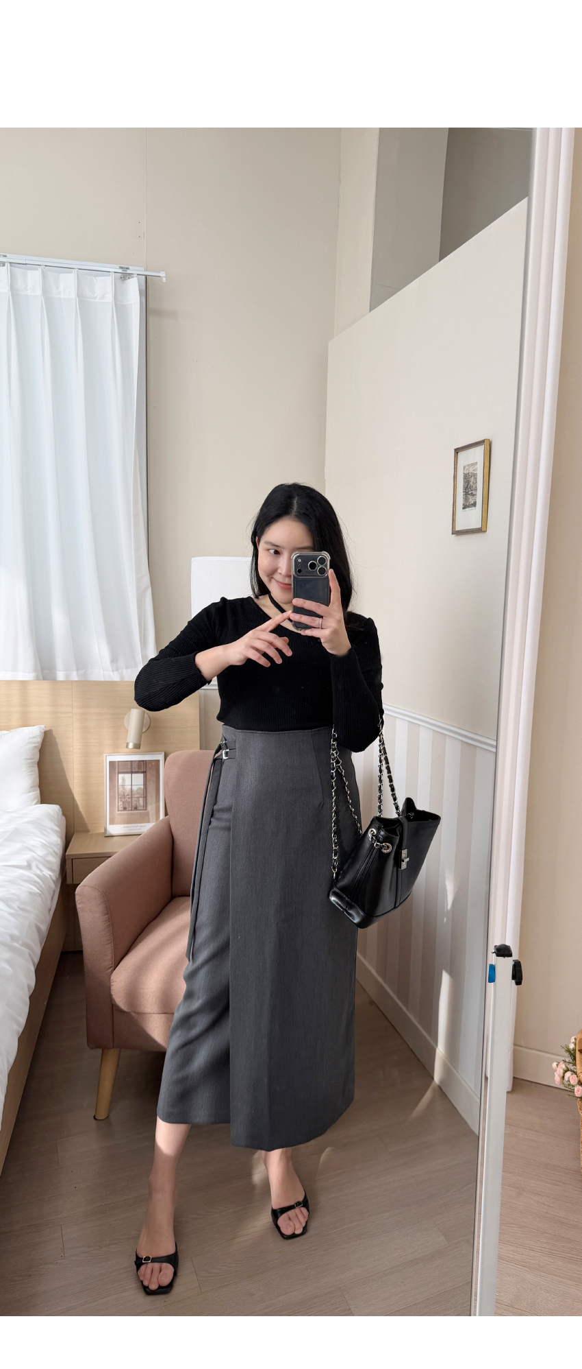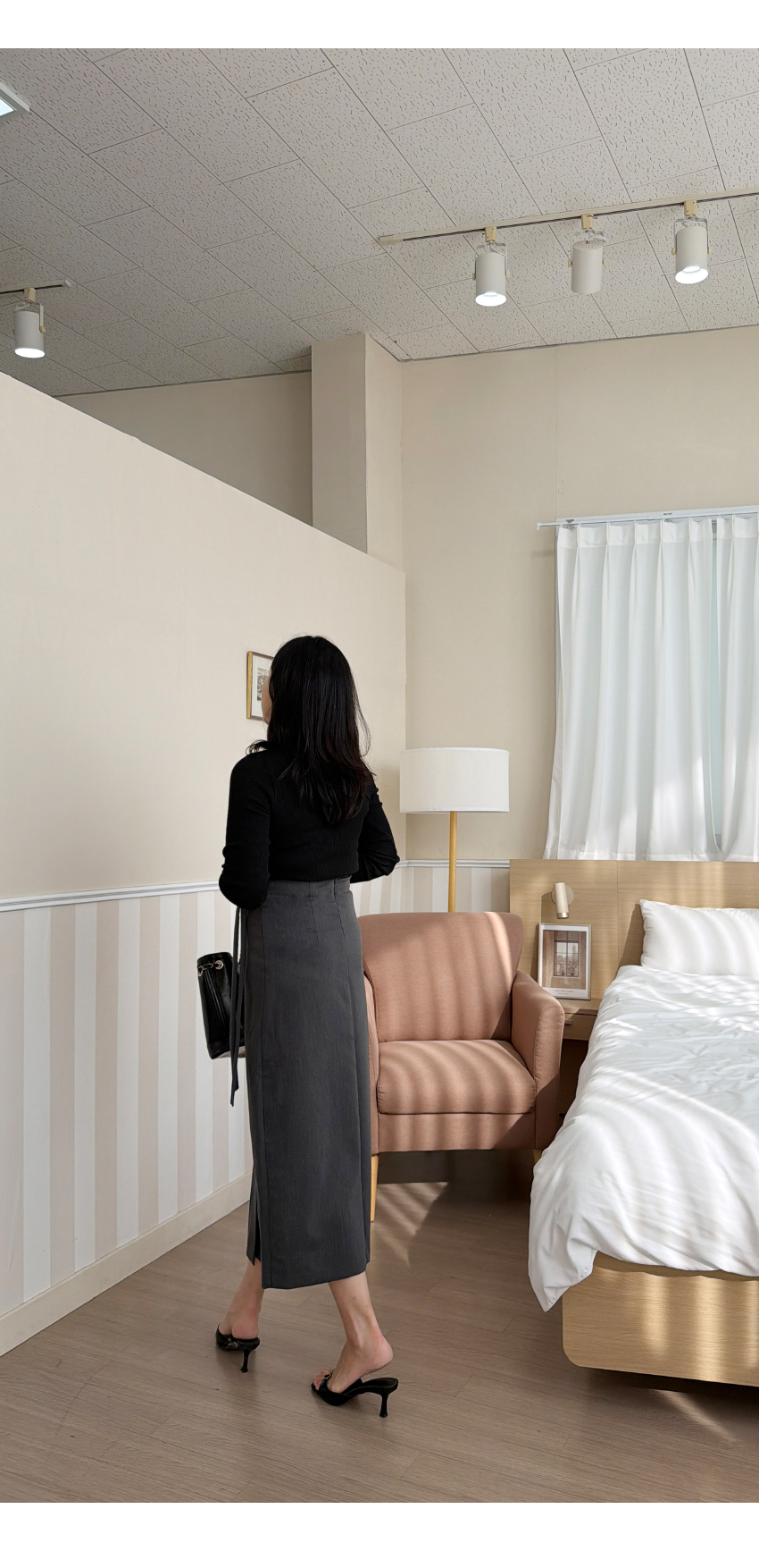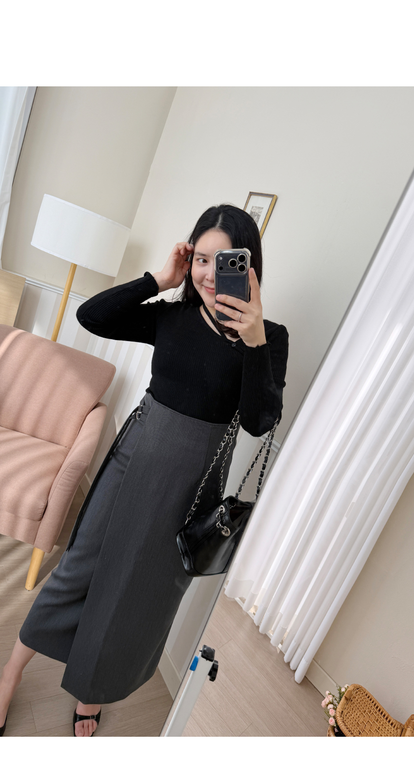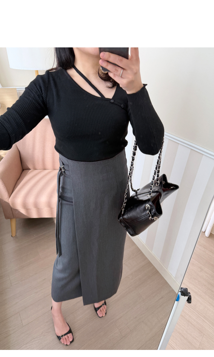 언발 라인의 니트아이템이예요,군더더기 없이 심플한 디테일로 다양한 아이템과 코디가 이지하며,늘어짐이나 변형이 적어 오래도록 즐기시기 좋은 아이템이에요,쇄골라인이 살짝 드러나여리여리한 실루엣을 어필해주며,네크라인 언발 끈이 마련되어 섹슈얼한 포인트를 더해드립니다,자켓속이나 가디건등 다양한 아우터에 이너로도 활용하기 좋으며,슬림핏으로 라인을 예쁘게 잡아주어매일매일 즐겨입기 좋은 기본아이템으로 추천드릴게요,