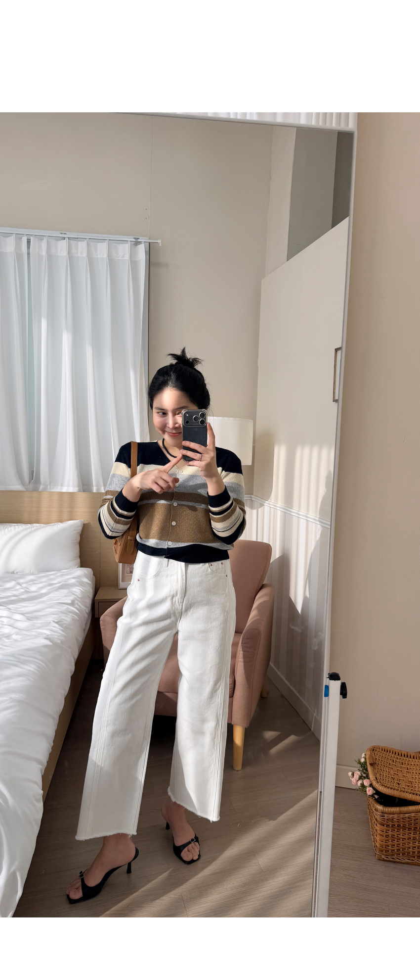 스커트나 데님,슬랙스등 다양한 하의와 매치하기 좋은 데일리템으로 추천 드릴게요,