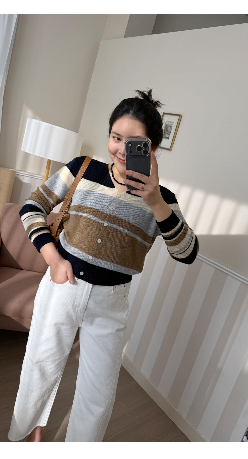 단가라 패턴의 데일리 가디건이에요.