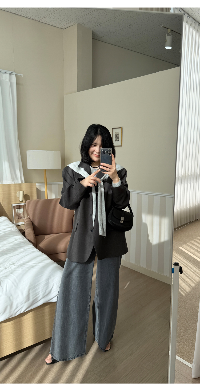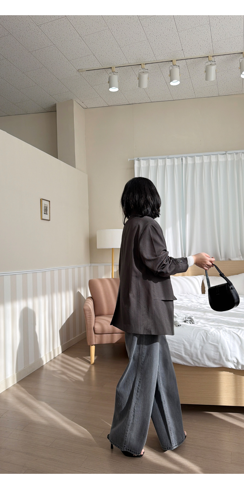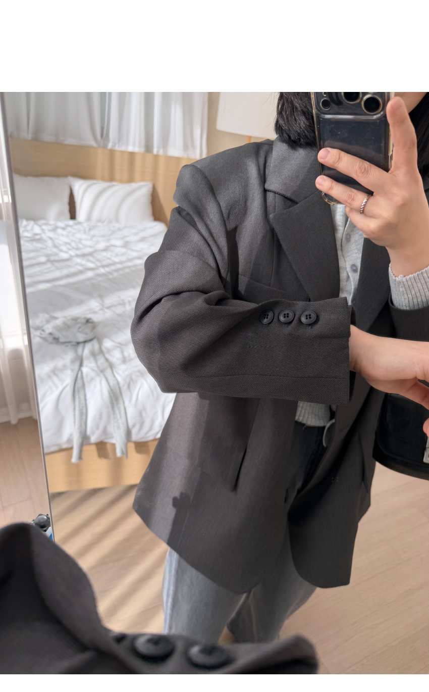 포멀한 무드의 카라 자켓을 소개해드려요,클래식한 분위기를 자랑하는 아이템인데요, 군더더기없이 심플한 실루엣으로