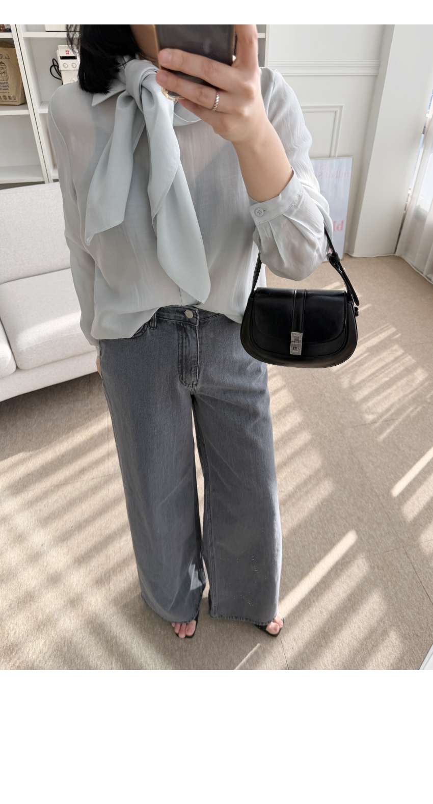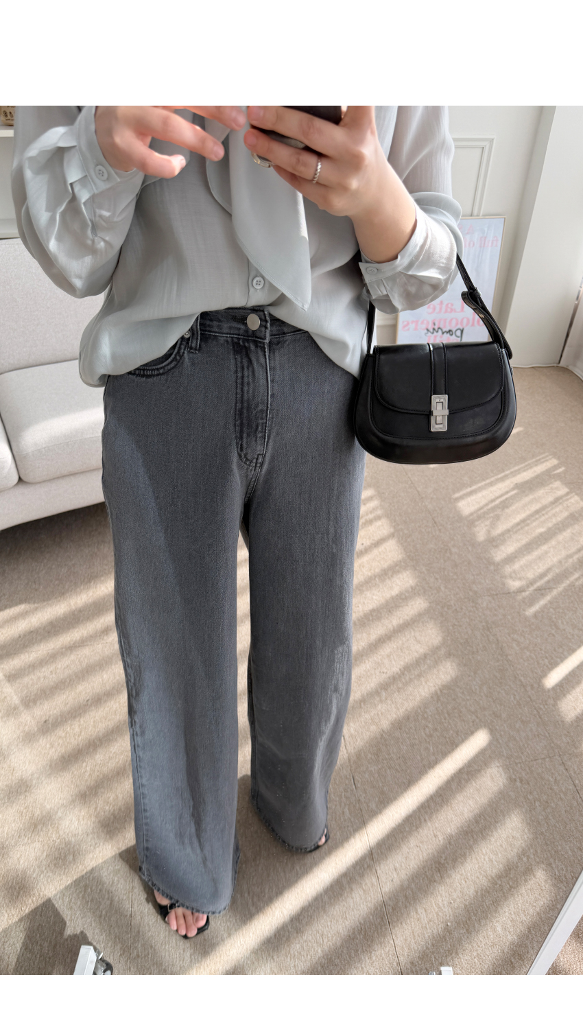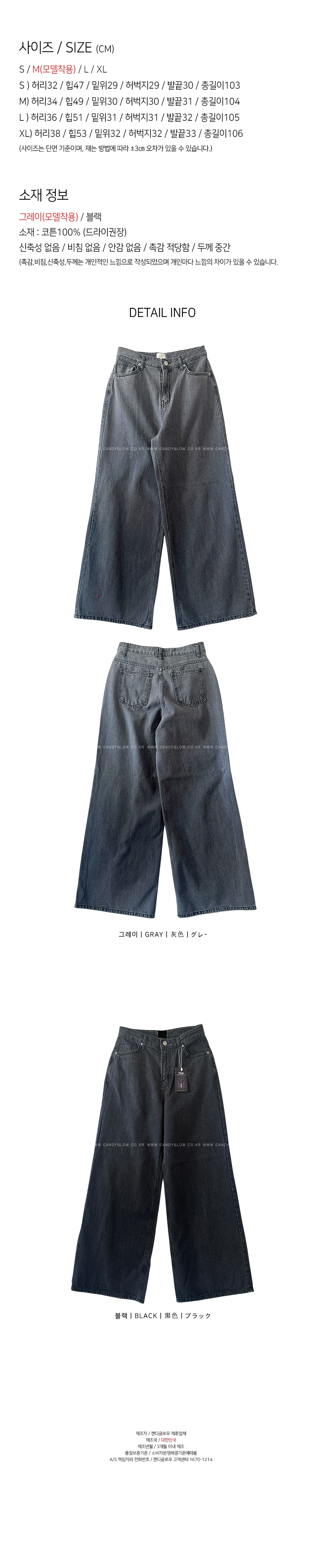 데님라인입니다, 네추럴한 일자핏으로 와이드한 라인을 자랑하는데요,포멀한룩에서 캐주얼까지 다양한 스타일링에코디하기 좋은아이템입니다,신축성 없는 소재로 쉐입의 변형을 덜어주며,롱한 레그라인을 연출해드리구요,다양한 상의템과 코디가 이지한 데일리템으로하나쯤 소장하시길 사심담아 추천드릴게요,컬러는 블랙,그레이 총 2컬러로 진행되구요,