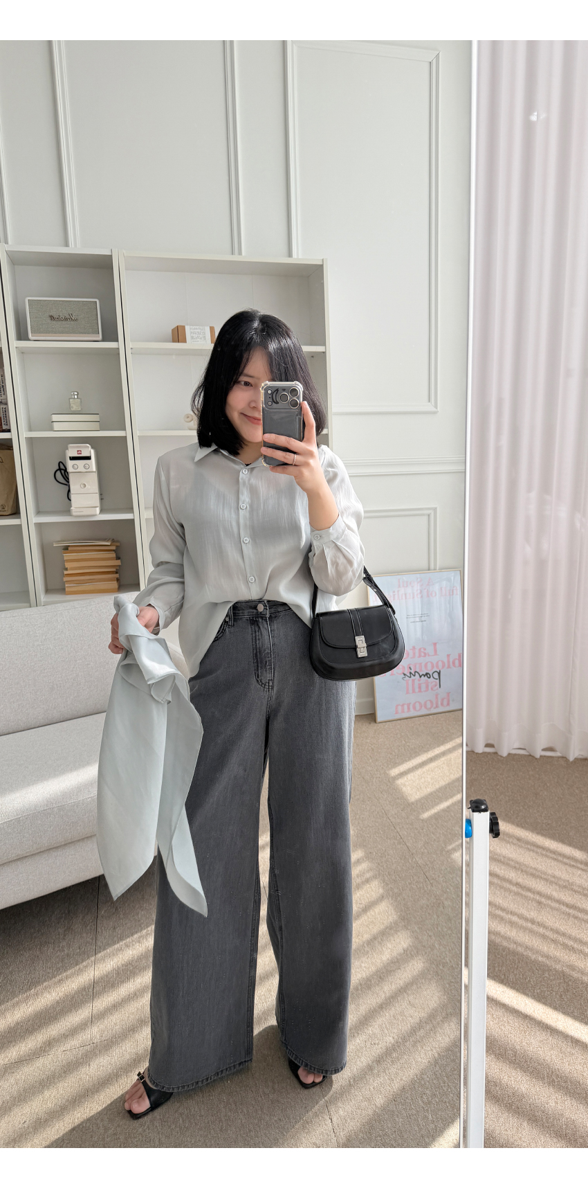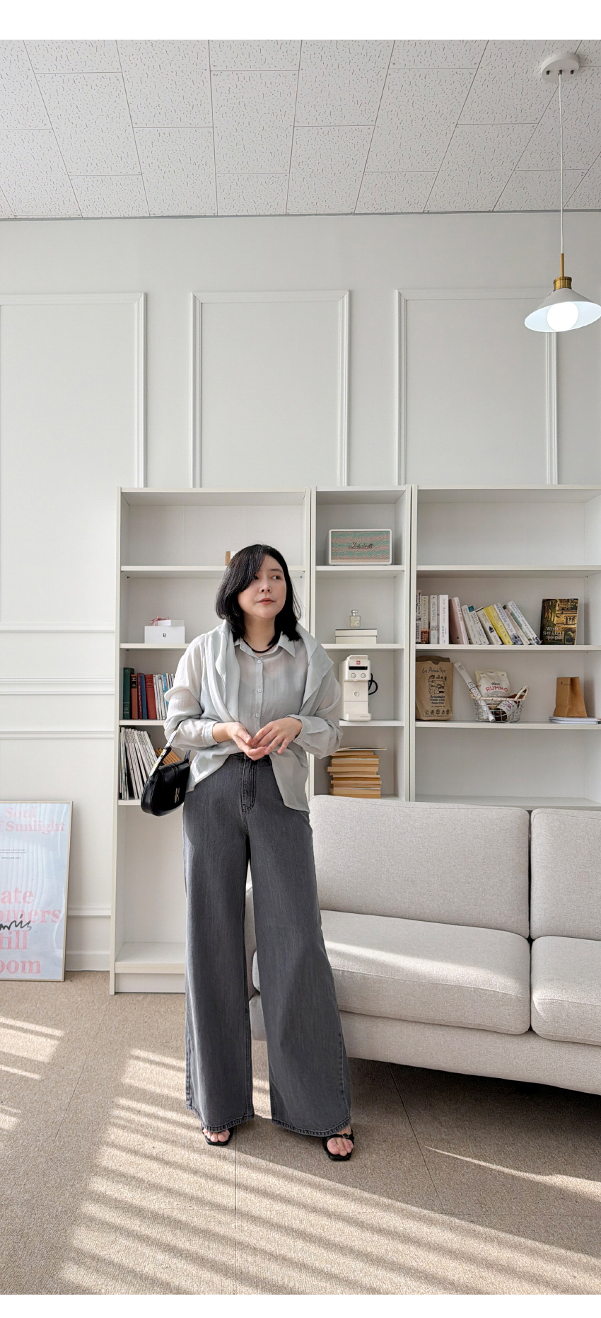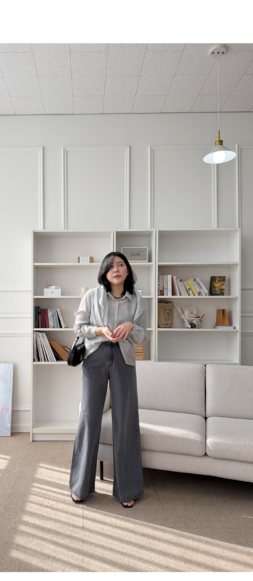 데님라인입니다, 네추럴한 일자핏으로 와이드한 라인을 자랑하는데요,포멀한룩에서 캐주얼까지 다양한 스타일링에코디하기 좋은아이템입니다,신축성 없는 소재로 쉐입의 변형을 덜어주며,롱한 레그라인을 연출해드리구요,다양한 상의템과 코디가 이지한 데일리템으로하나쯤 소장하시길 사심담아 추천드릴게요,컬러는 블랙,그레이 총 2컬러로 진행되구요,