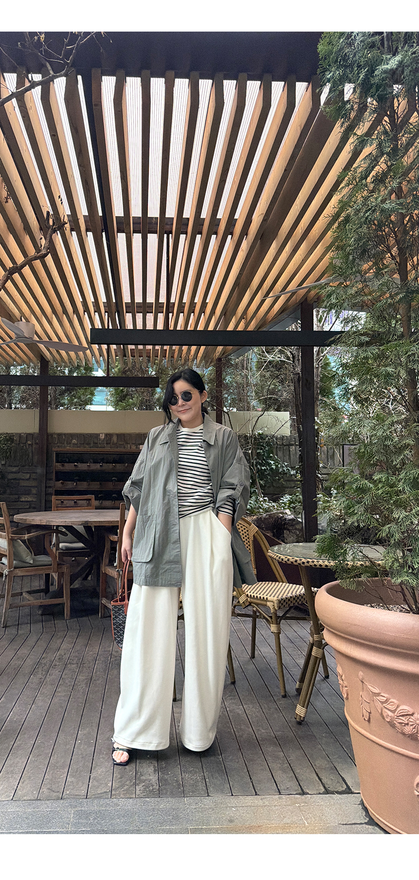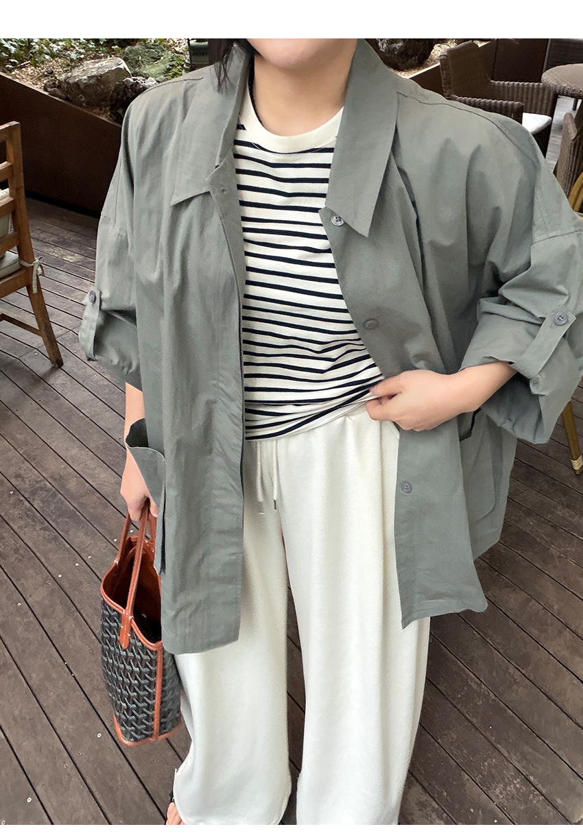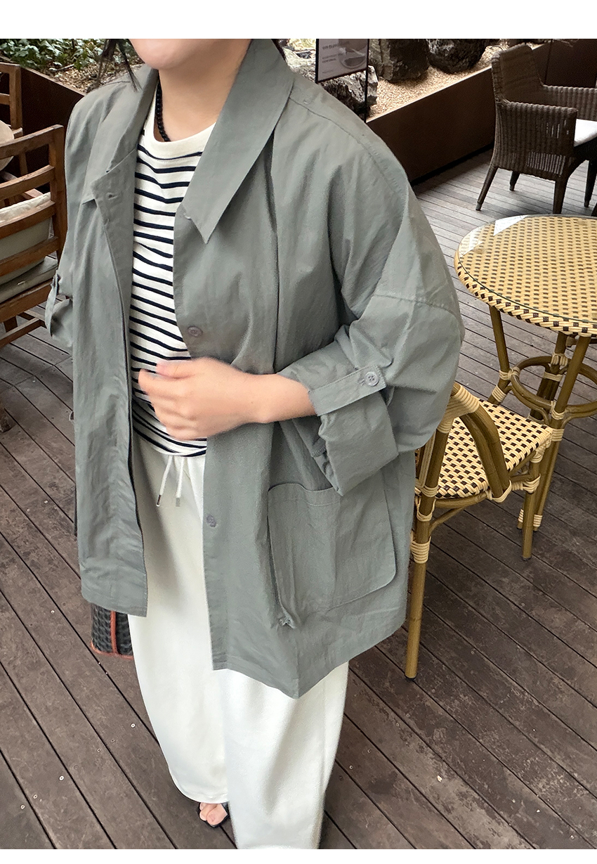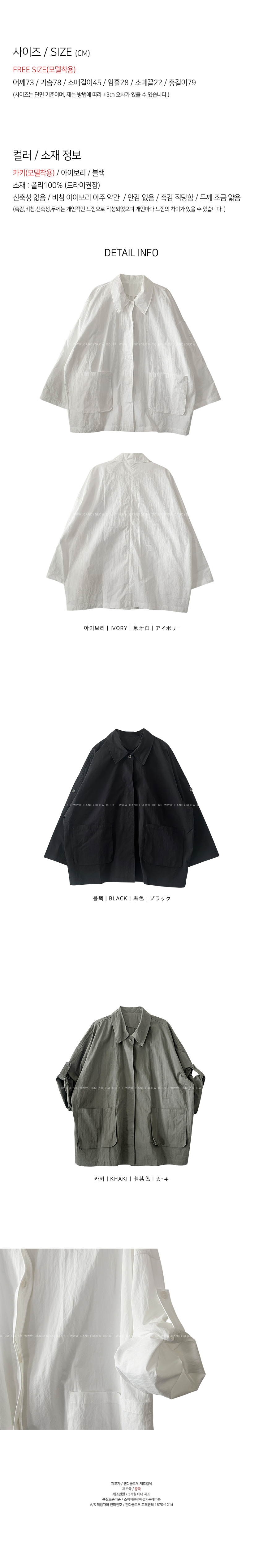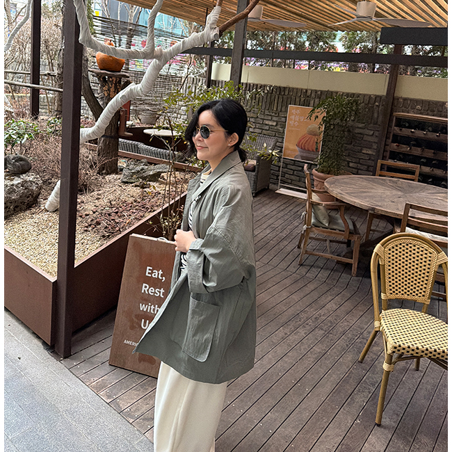 시원한 무드의 자켓을 소개해드려요네추럴한 핏으로 모던한 분위기를 갖춘 아이템이에요,넉넉하게 제작된 핏으로 체형커버는 물론,손쉬운 스타일링이 가능한 아이템입니다,소매라인 롤업고정이 가능해 페미닌한 포인트를 유지해드리며,앞중심 단추로 간편한 클로징을 도와드려요,얇고 가벼운 소재감으로 썸머에도 시원하게 즐겨주세요,컬러는 카키,아이보리,블랙 총3컬러로 진행되며,
