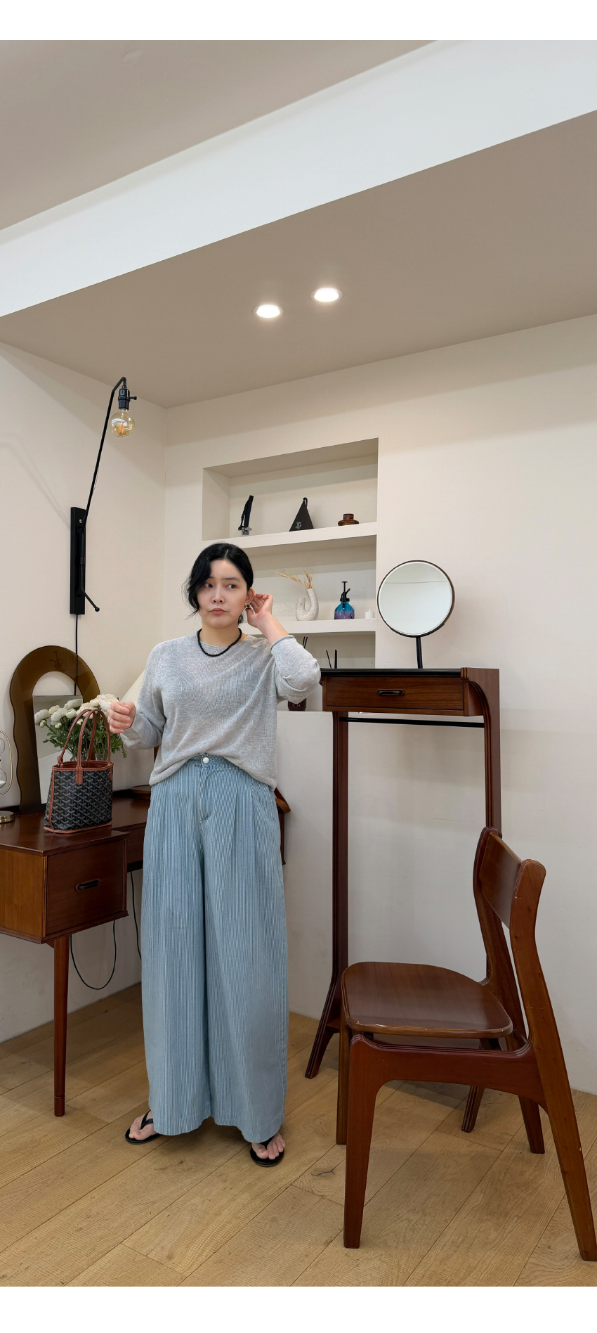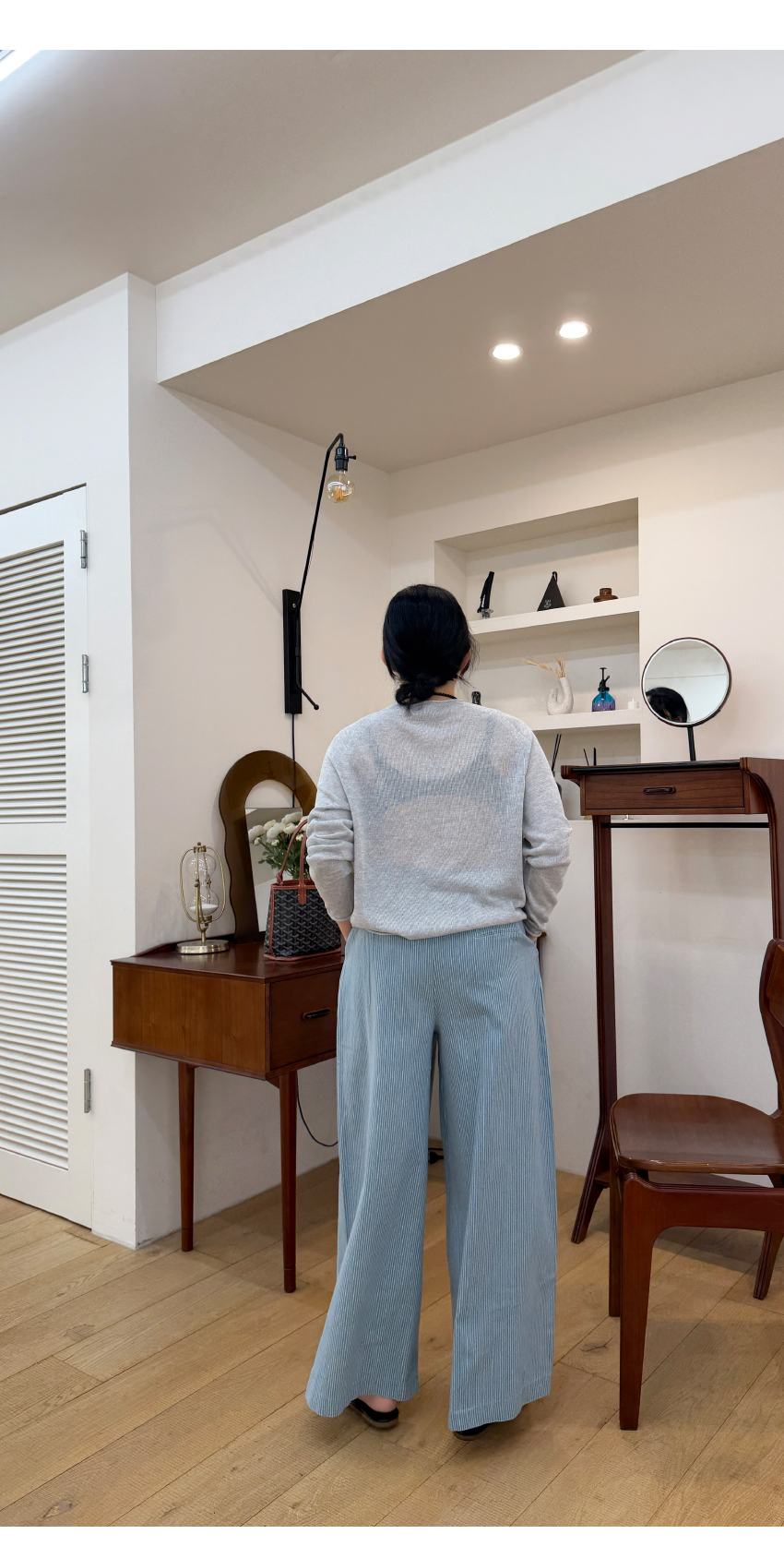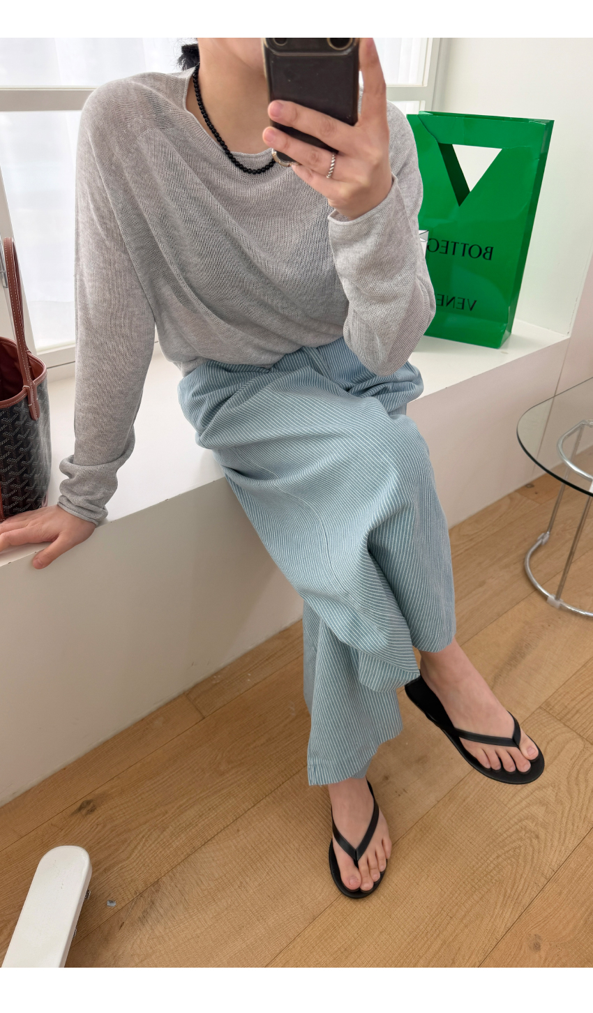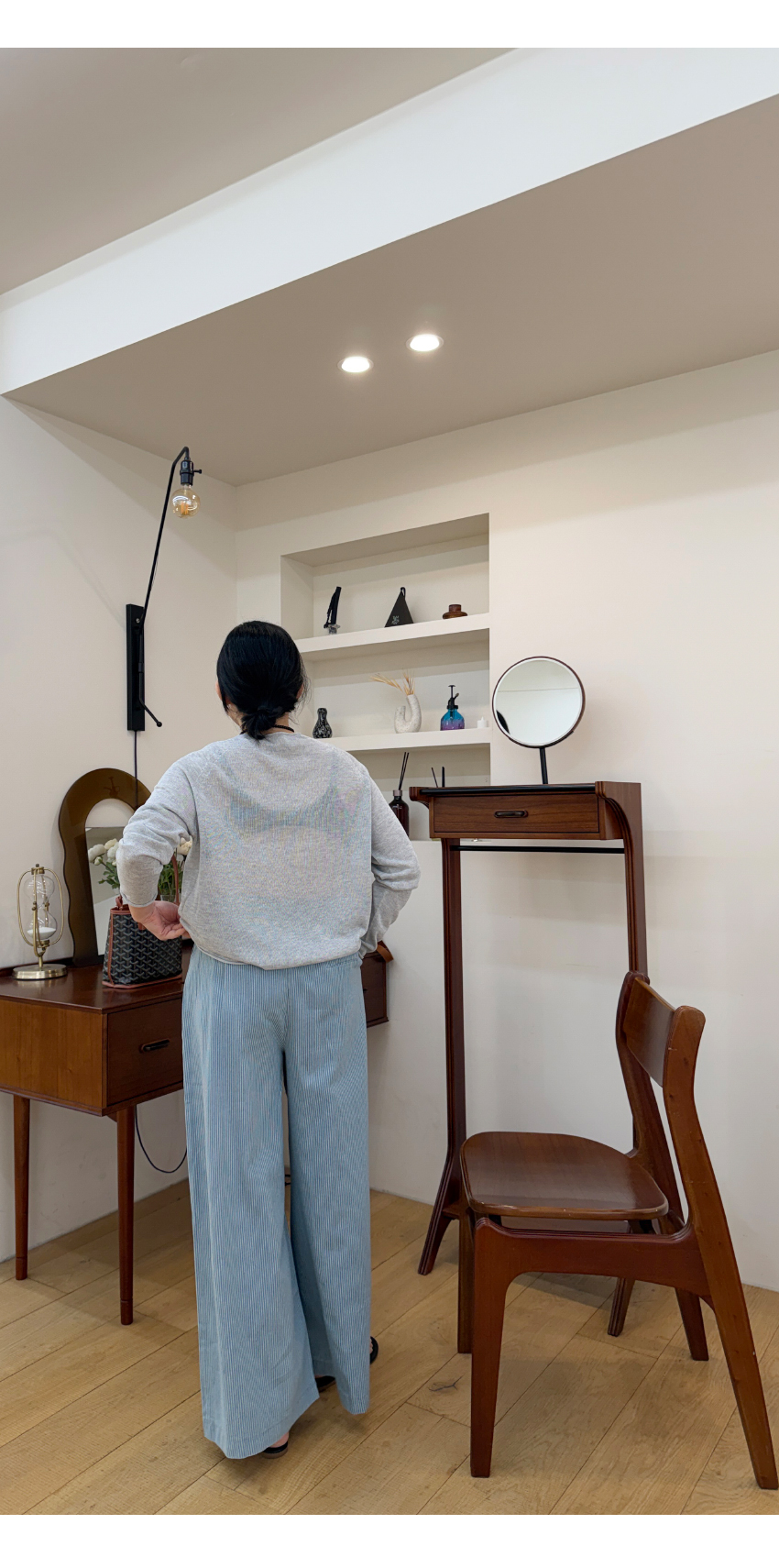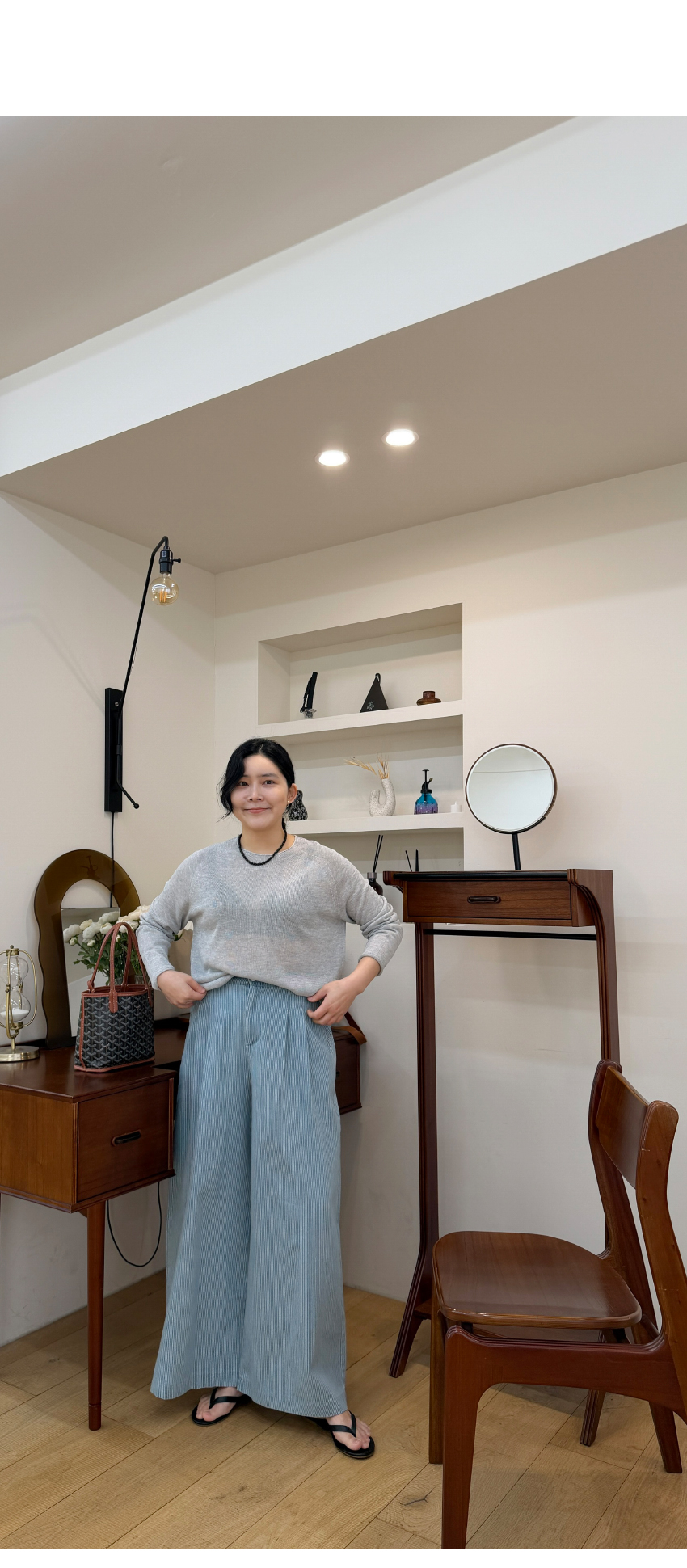 스트라이프 데님라인입니다, 네추럴무드의 와이드한 라인을 자랑하는데요,포멀한룩에서 캐주얼까지 다양한 스타일링에코디하기 좋은아이템입니다,신축성 없는 소재로 쉐입의 변형을 덜어주며,롱한 레그라인을 연출해드리구요,허리뒷부분이 밴드로 제작되어 편안함은 물론,스트라이프 나염이 더해져 은은한 포인트가 되어드려요.다양한 상의템과 코디가 이지한 데일리템으로하나쯤 소장하시길 사심담아 추천드릴게요,