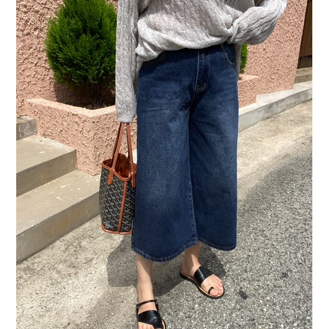 편하게 착용되는 데님팬츠를 소개해드려요,발목 위로 떨어지는 8부기장의 아이템이에요,와이드한 라인으로 체형커버와 동시에,하이웨스트로 허리군살을 쏙- 커버해드려요,양사이드 리얼포켓으로 실용성까지 챙겨드렸구요,촬영내내 너무 편안하게 착용했던 제품이라사심담아 추천드리며,기본컬러로 유행에 구애없이 꾸준히 착용하기 좋으실거에요,컬러는 흑청,진청 총 2컬러로 준비해보았구요사이즈는 S,M,L 총3사이즈로 진행되며,평소 27사이즈 착용하는 저는 M사이즈로 착용해준 핏이예요,개인마다 사이즈차이가 있으니,정확한 사이즈는 상세표를 참고해주세요,