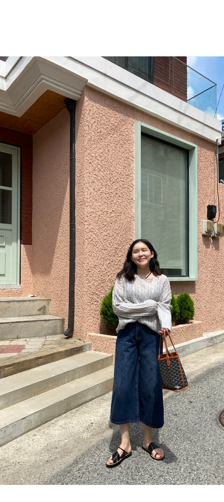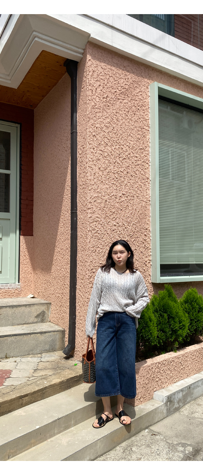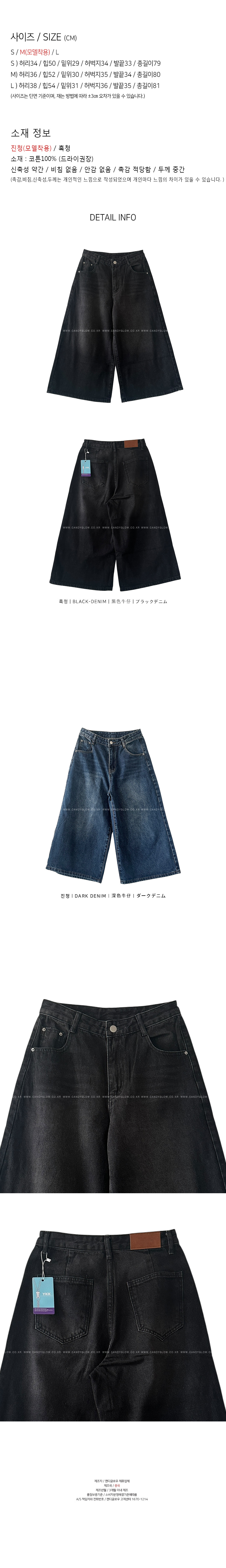 편하게 착용되는 데님팬츠를 소개해드려요,발목 위로 떨어지는 8부기장의 아이템이에요,와이드한 라인으로 체형커버와 동시에,하이웨스트로 허리군살을 쏙- 커버해드려요,양사이드 리얼포켓으로 실용성까지 챙겨드렸구요,촬영내내 너무 편안하게 착용했던 제품이라사심담아 추천드리며,기본컬러로 유행에 구애없이 꾸준히 착용하기 좋으실거에요,컬러는 흑청,진청 총 2컬러로 준비해보았구요사이즈는 S,M,L 총3사이즈로 진행되며,평소 27사이즈 착용하는 저는 M사이즈로 착용해준 핏이예요,개인마다 사이즈차이가 있으니,정확한 사이즈는 상세표를 참고해주세요,