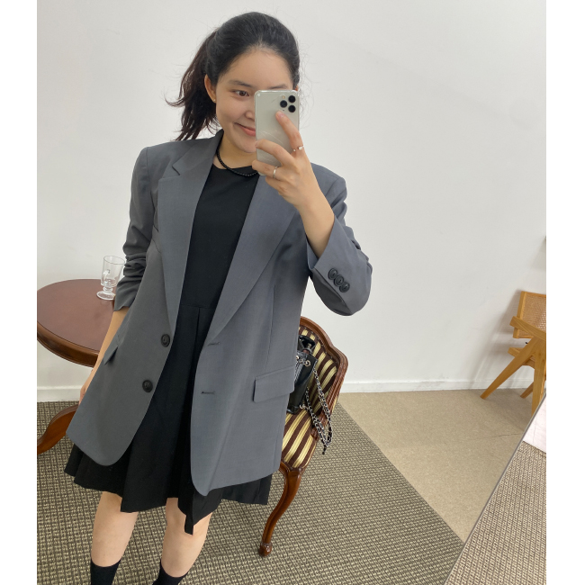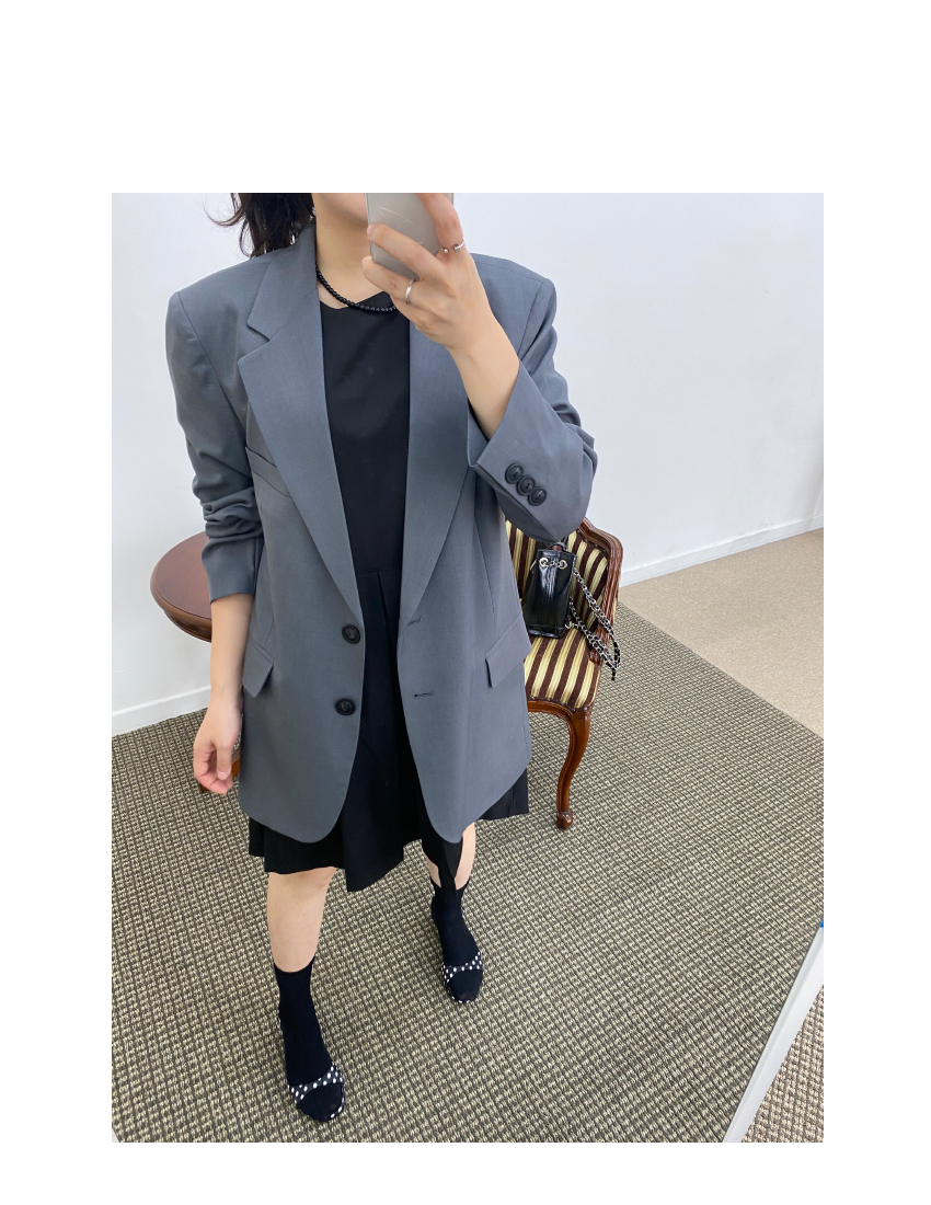 포멀한 무드의 오버핏 자켓을 소개해드려요,클래식한 분위기를 자랑하는 아이템인데요, 군더더기없이 심플한 실루엣으로