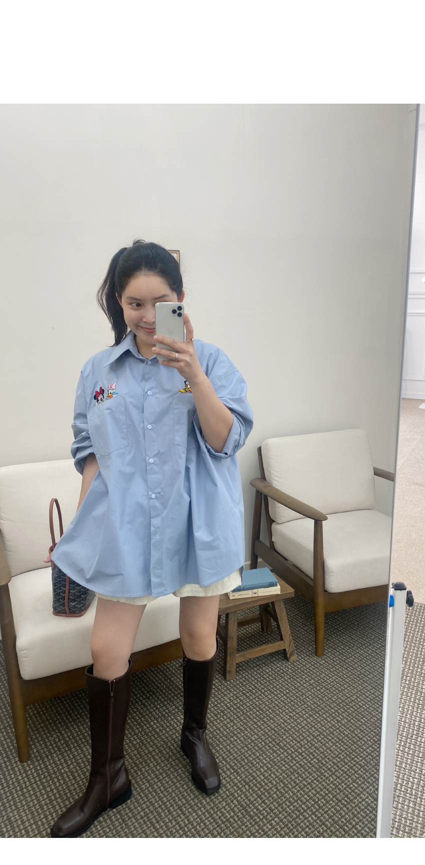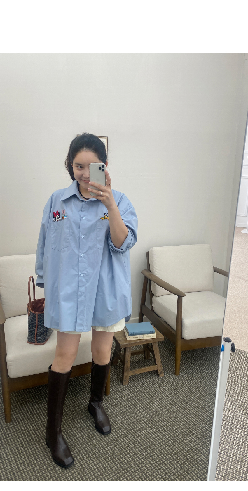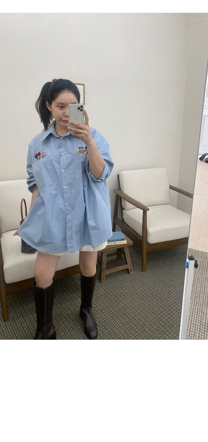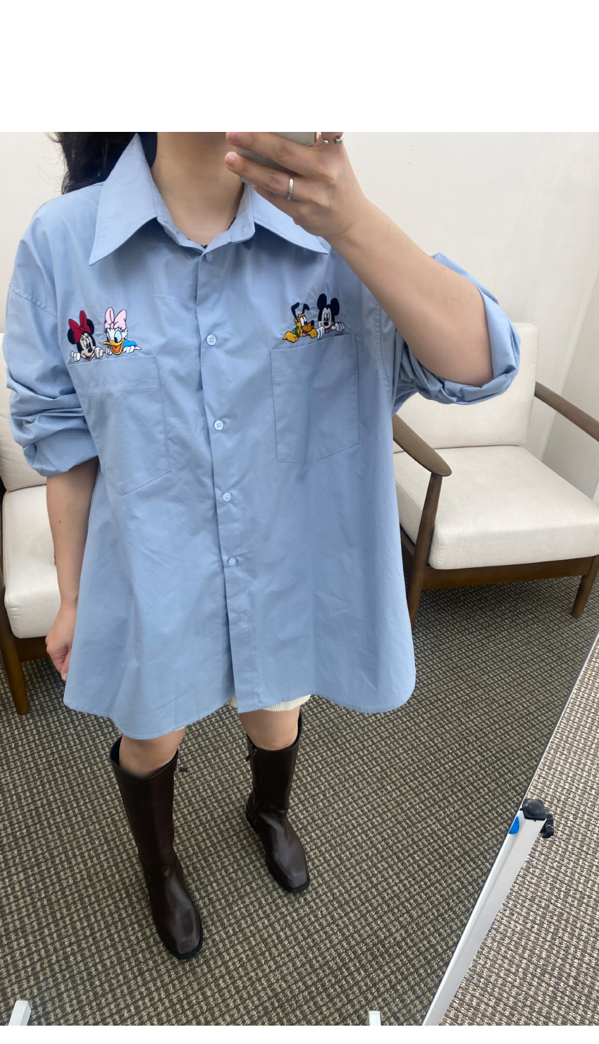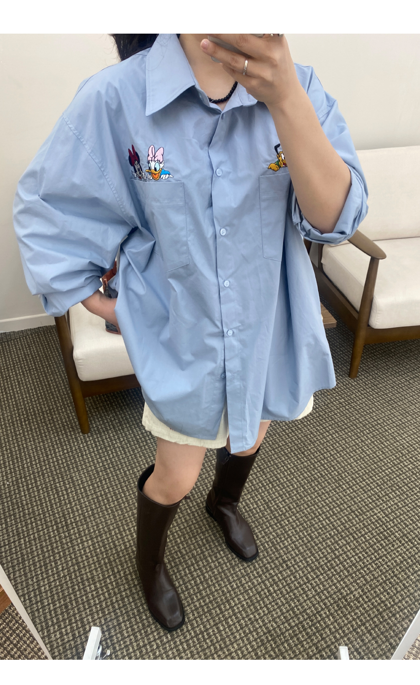 가을시즌 소장하셔야 할 셔츠를 소개해드려요,코튼소재로 베이직한 무드를 어필해주는 아이템인데요,,박시넉넉한핏으로 네추럴한 실루엣을 연출해드리며,세련된 컬러감이 다양한 분위기를 더해드려데일리룩부터 포멀한룩까지 다양한 스타일링이 가능한 아이템이에요,귀여운 디즈니캐릭터가 더해져 은은한 포인트가 되어드리며,베스트나,가디건 등 레이어드 셔츠로도 이지합니다,데일리템으로 사심담아 추천드릴게요,컬러는 아이보리,네이비,스카이블루,핑크총 4컬러로 준비해보았구요사이즈는 프리사이즈로 44-77 사이즈까지 추천해드리며,정확한 사이즈는 상세표를 참고해주세요,