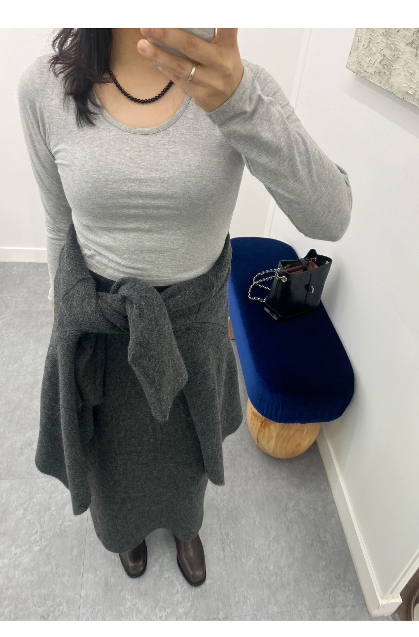 롱한 기장으로 다리라인이 많이 드러나지 않아