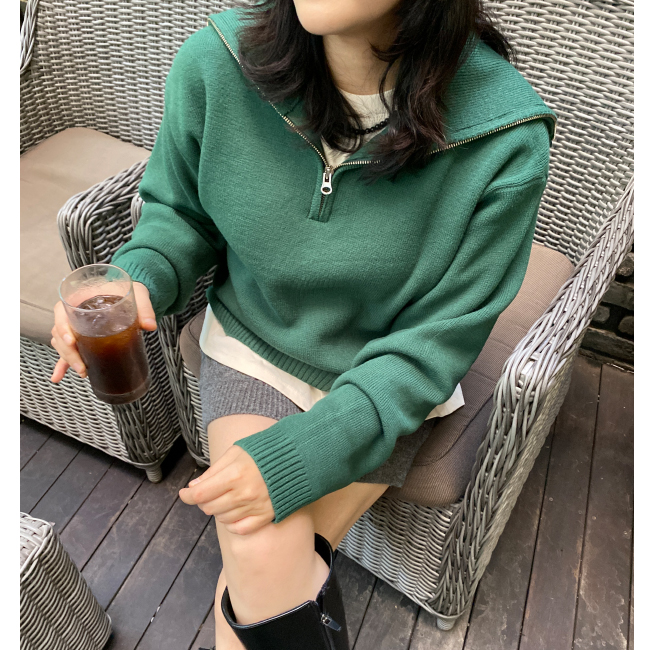 반집업라인으로 페미닌하면서도 캐주얼한 무드를 자아내며,