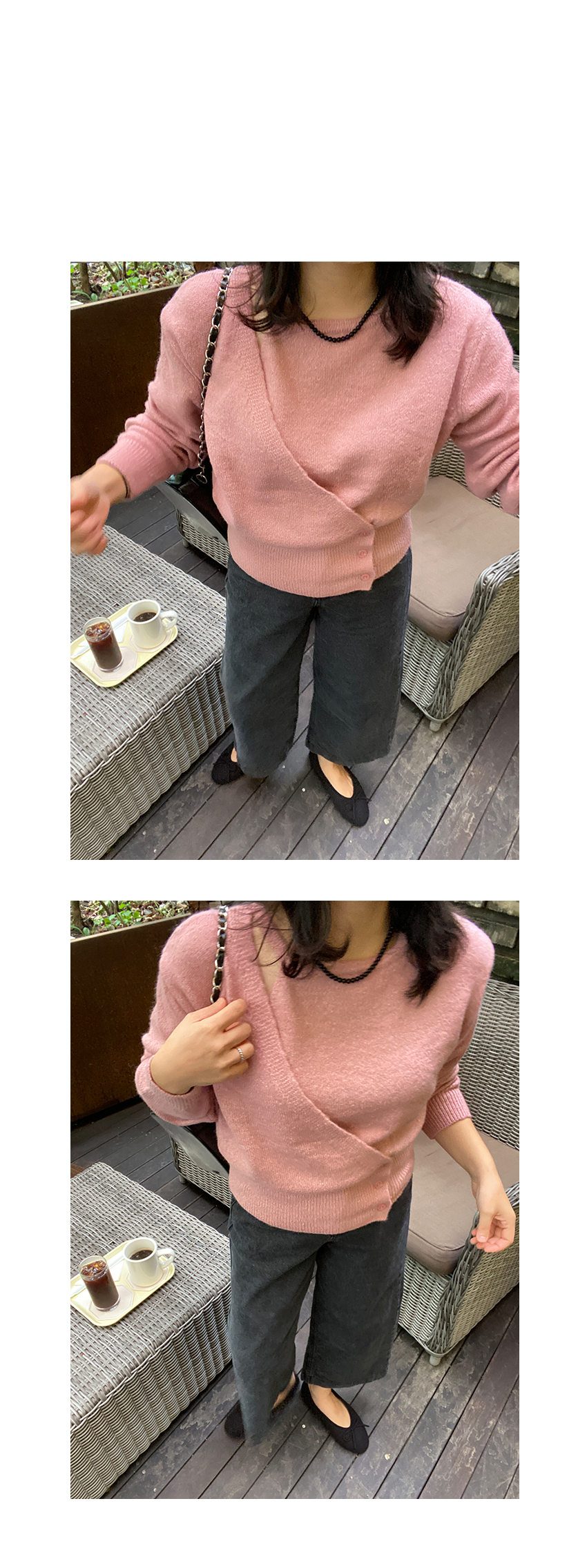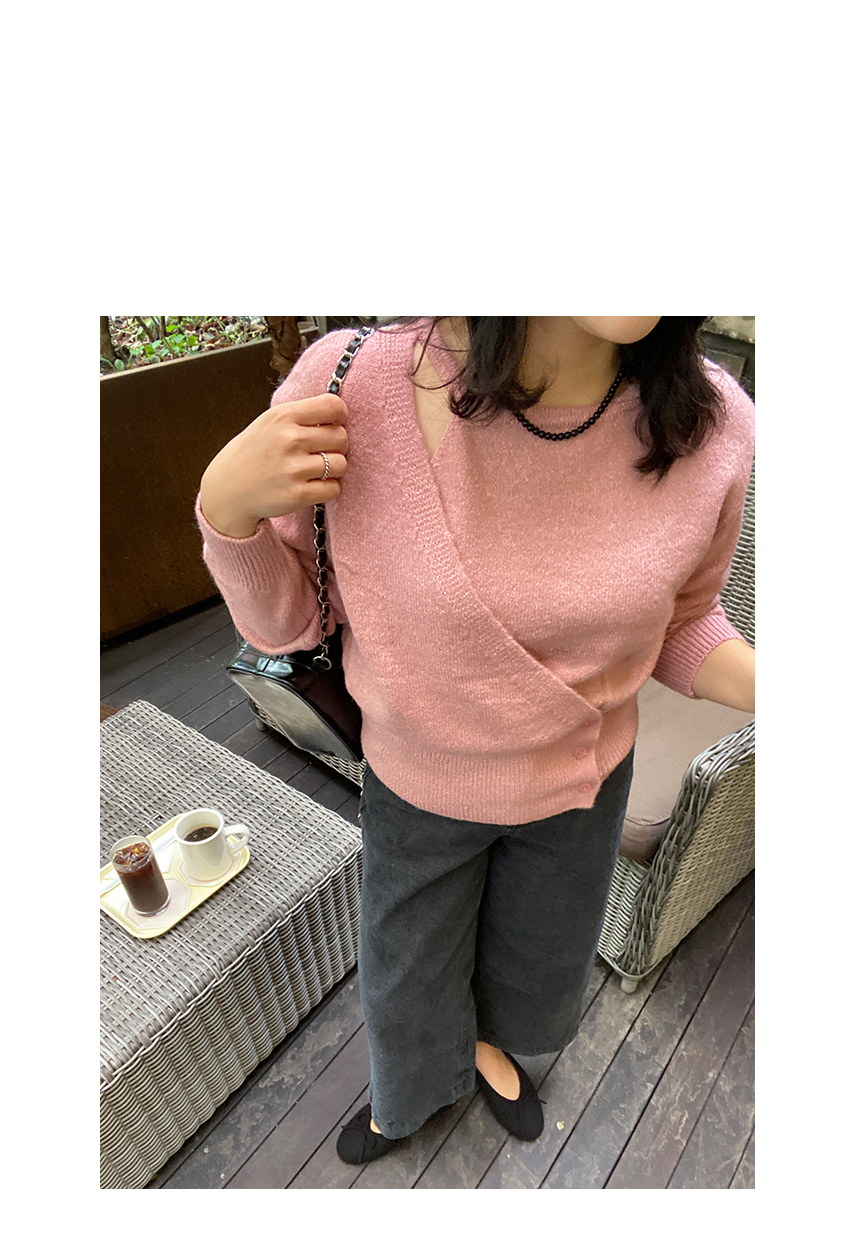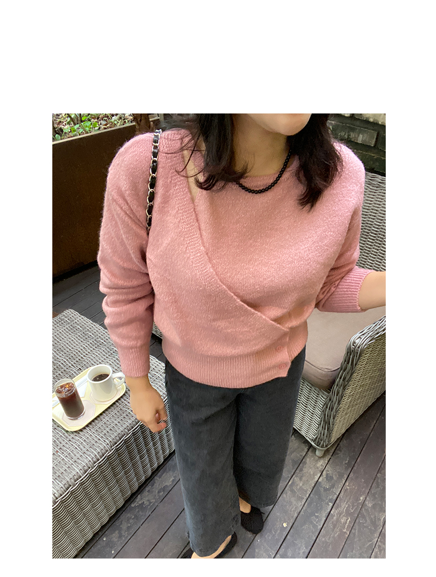 사이드 단추 랩디테일로 유니크한 실루엣을 연출해주어요,
