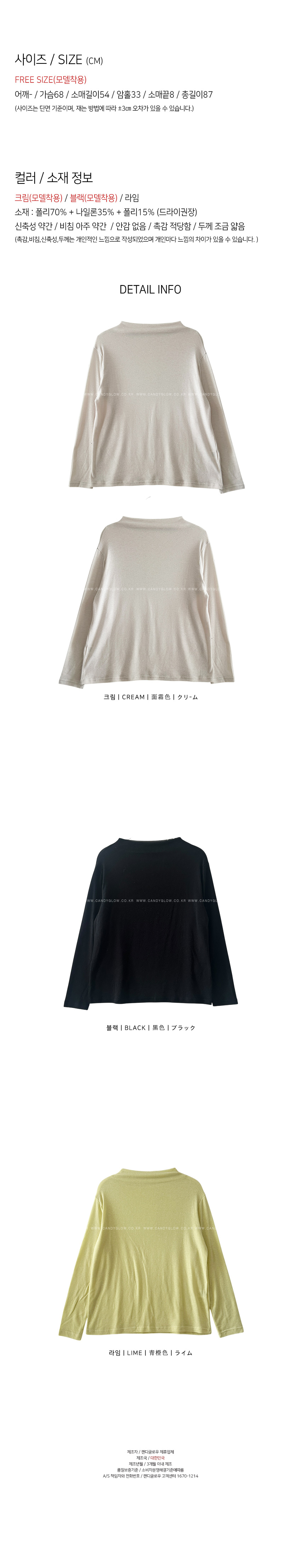 모던한 분위기의 티셔츠에요,살짝 드레이프 되는 네크라인이 포인트로세련된 분위기를 선사해드리는 제품입니다,가벼운 텍스처로 자켓이나 가디건,코트등 다양한 아우터안단에 이너용으로 제격이구요,부드러운 텍스처로 편안한 착용감을 선사해드려요,세미오피스룩부터 캐주얼까지다양하게 스타일링하기 좋구요,컬러별로 소장하셔도 좋을 티셔츠로 사심담아 추천드려요,컬러는 블랙,라임,크림 총 3컬러로 준비해보았구요사이즈는 프리사이즈로 44-66사이즈까지 추천해드리며,정확한 사이즈는 상세표를 참고해주세요
