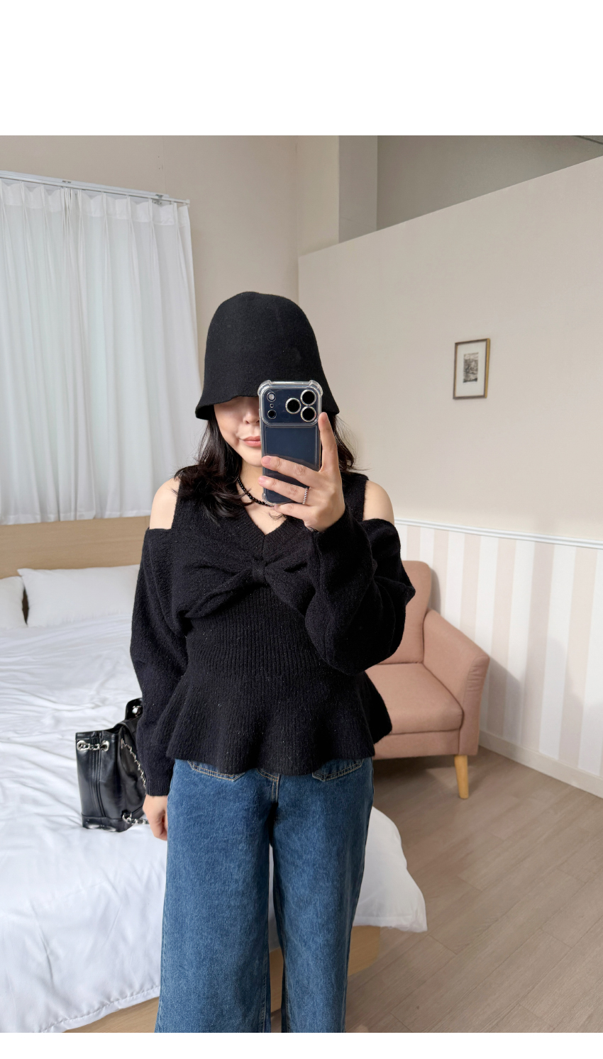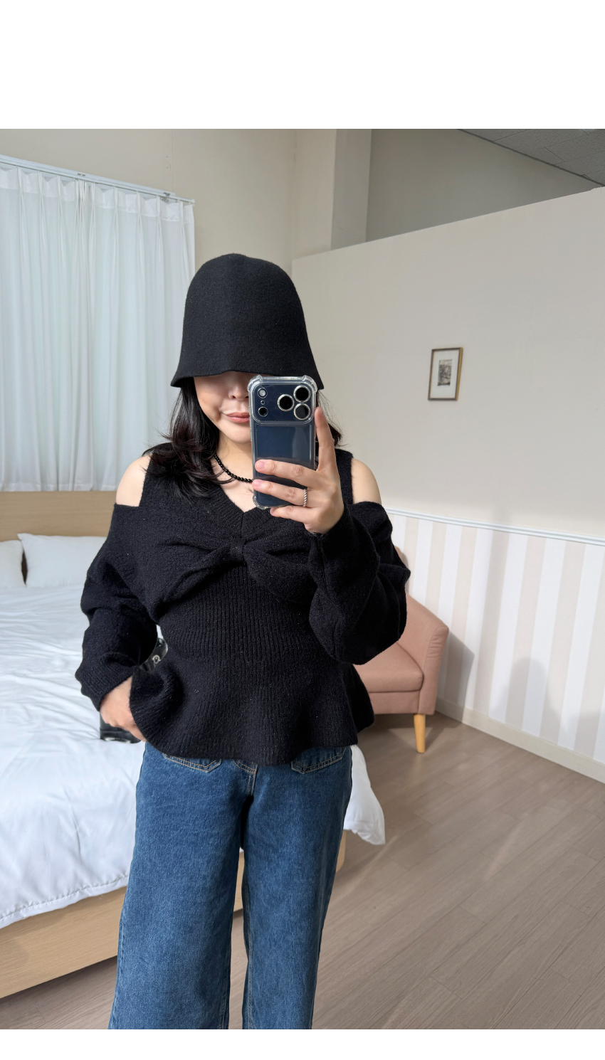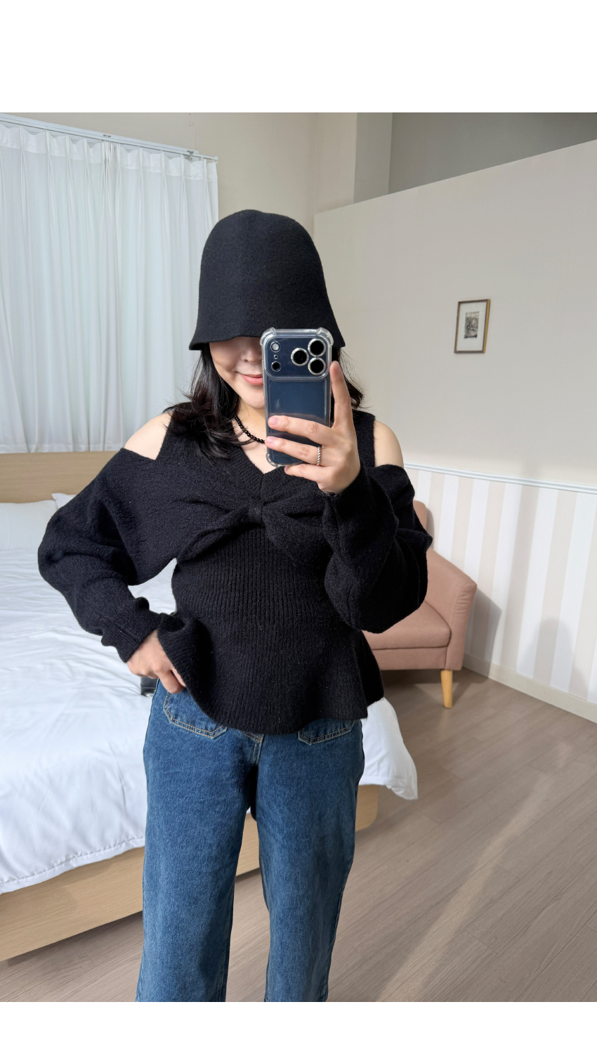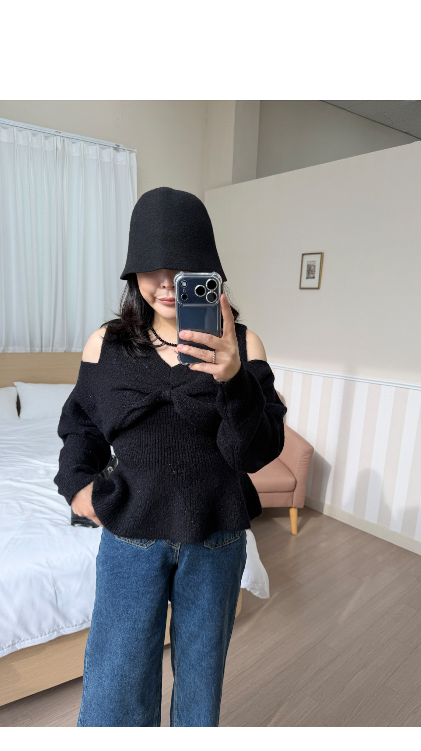 숄더라인 트임이 전체적인 선을 예쁘게 연출해드립니다,