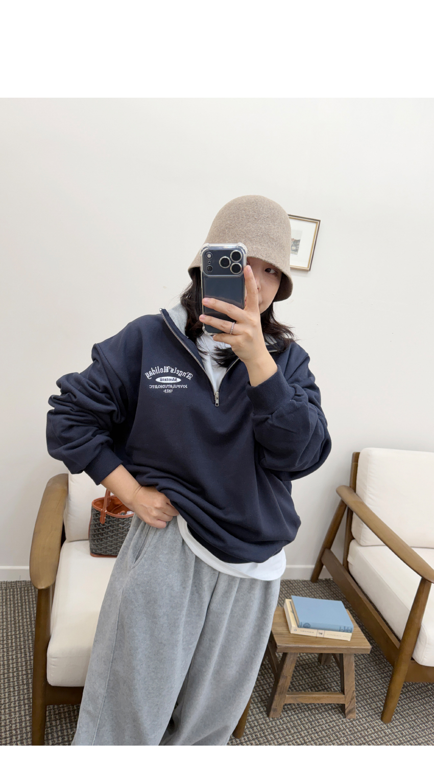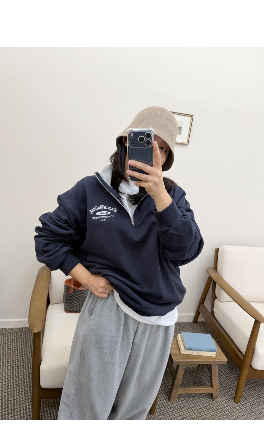 반집업라인으로 페미닌하면서도 캐주얼한 무드를 자아내며,