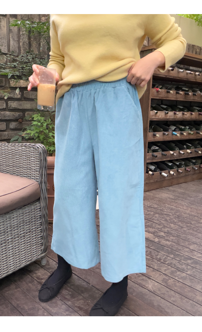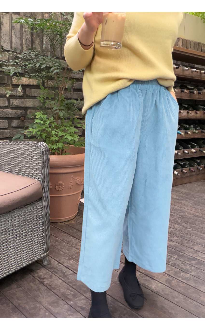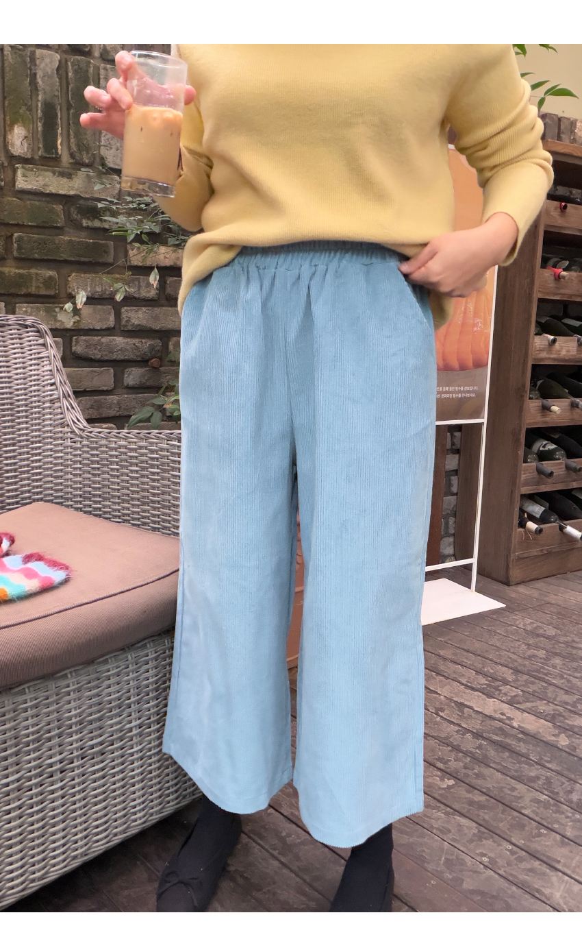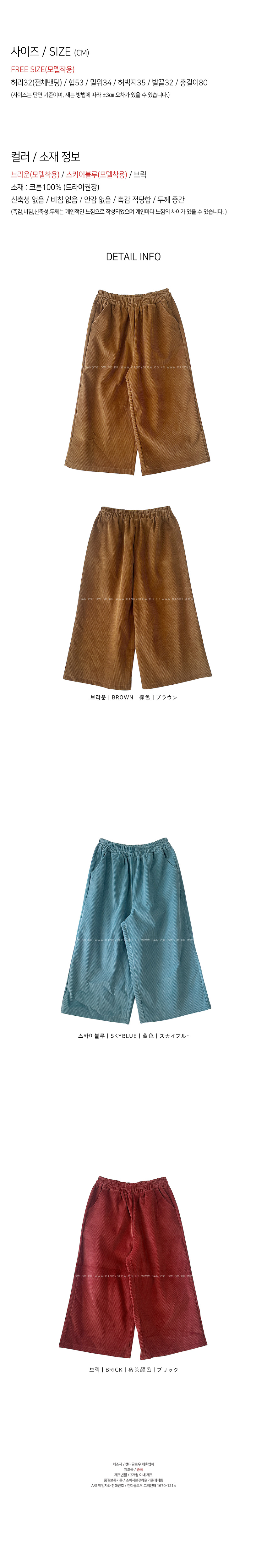 데일리한 무드의 골덴팬츠에요,심플한 와이드핏으로 깔끔한 실루엣을 연출해드리며,골덴소재로 보온성은 물론,양사이드 리얼포켓으로 실용성까지 챙겨주었어요,허리부분이 밴딩으로 편안함을 느끼실 수 있구요,다양한 상의아이템과 코디하기 이지한 데일리템입니다,하이웨스트라인으로 미운 허리군살을 쏙-커버해드리며,유행에 구애없이 꾸준히 즐겨주세요,컬러는 브릭,브라운,스카이블루 총 3컬러로 준비해보았구요사이즈는 프리사이즈로 25-30 사이즈까지 추천드릴게요,개인마다 사이즈 차이가 있으니,정확한 사이즈는 상세표를 참고해주세요,