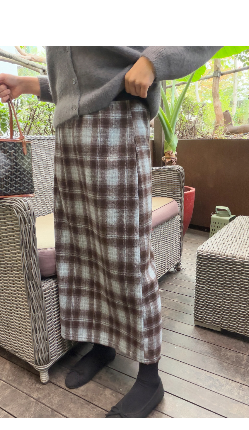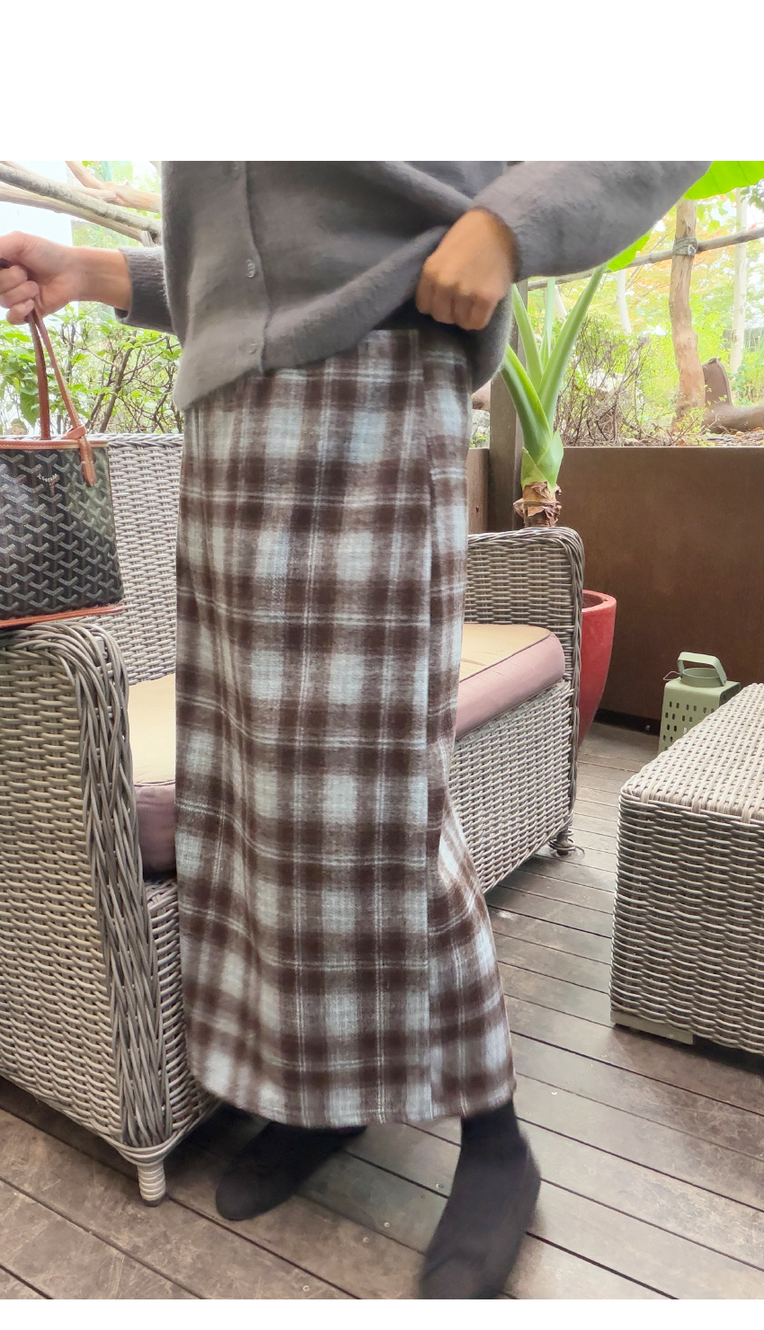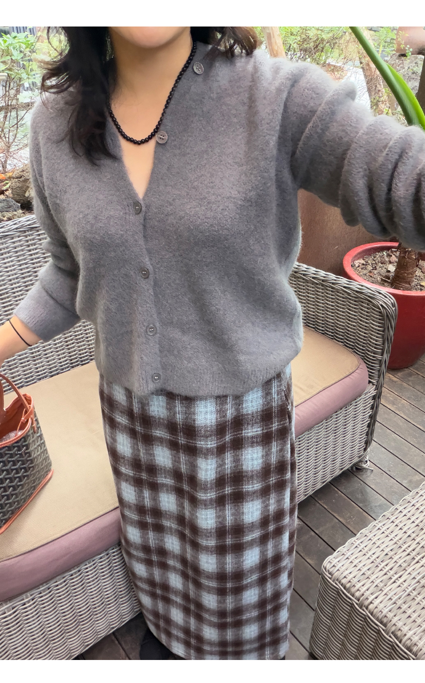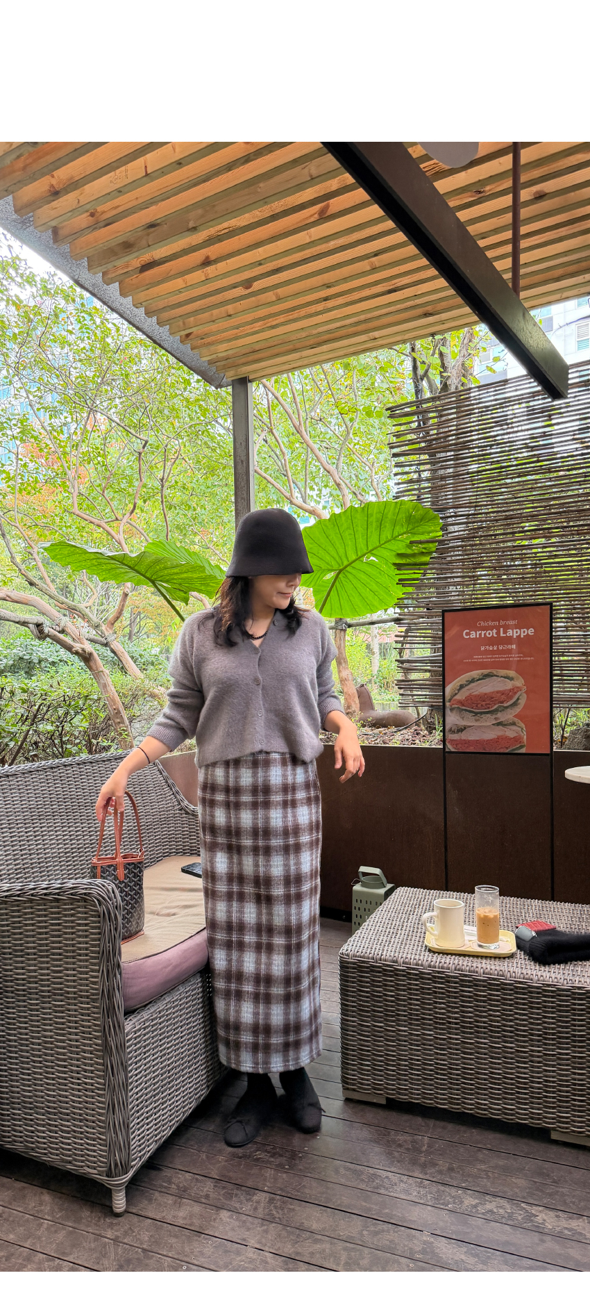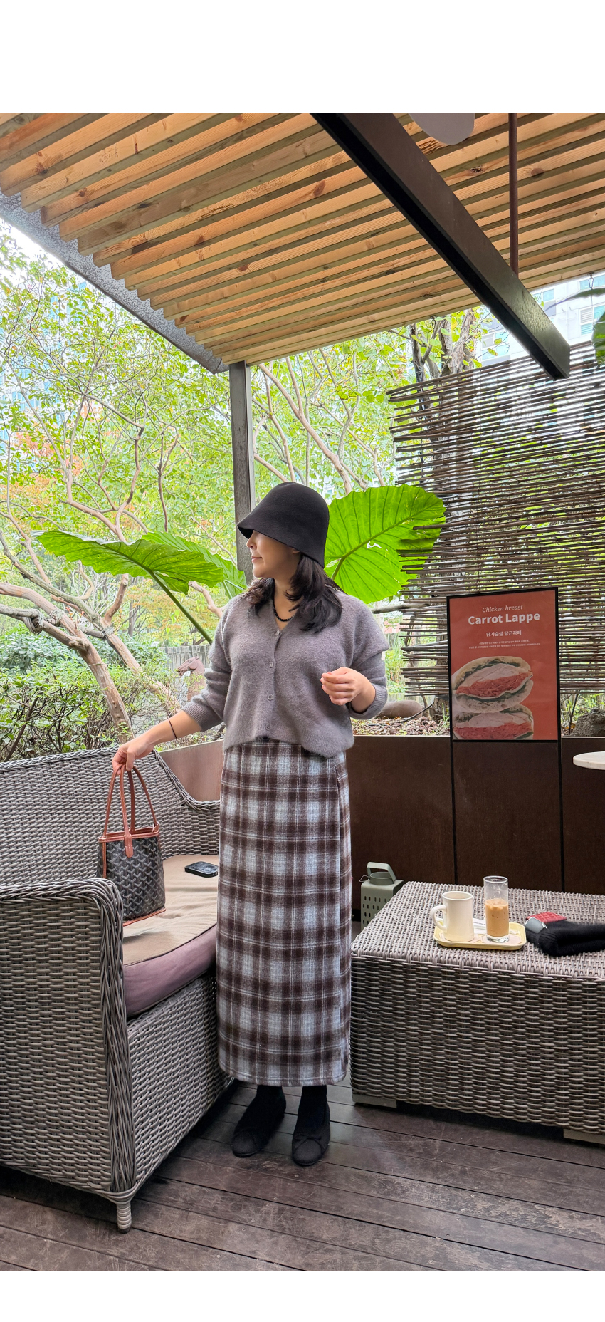 미디 기장에 H라인으로 떨어지는 실루엣으로