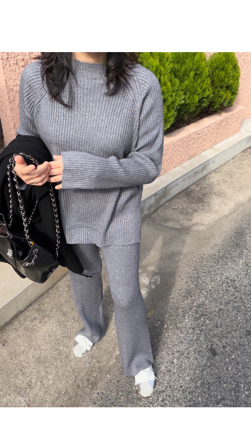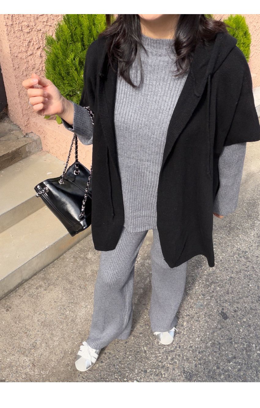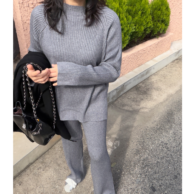 데일리한 골지니트와 일자핏 니트팬츠가 세트로 제작되어 활용성은 물론,