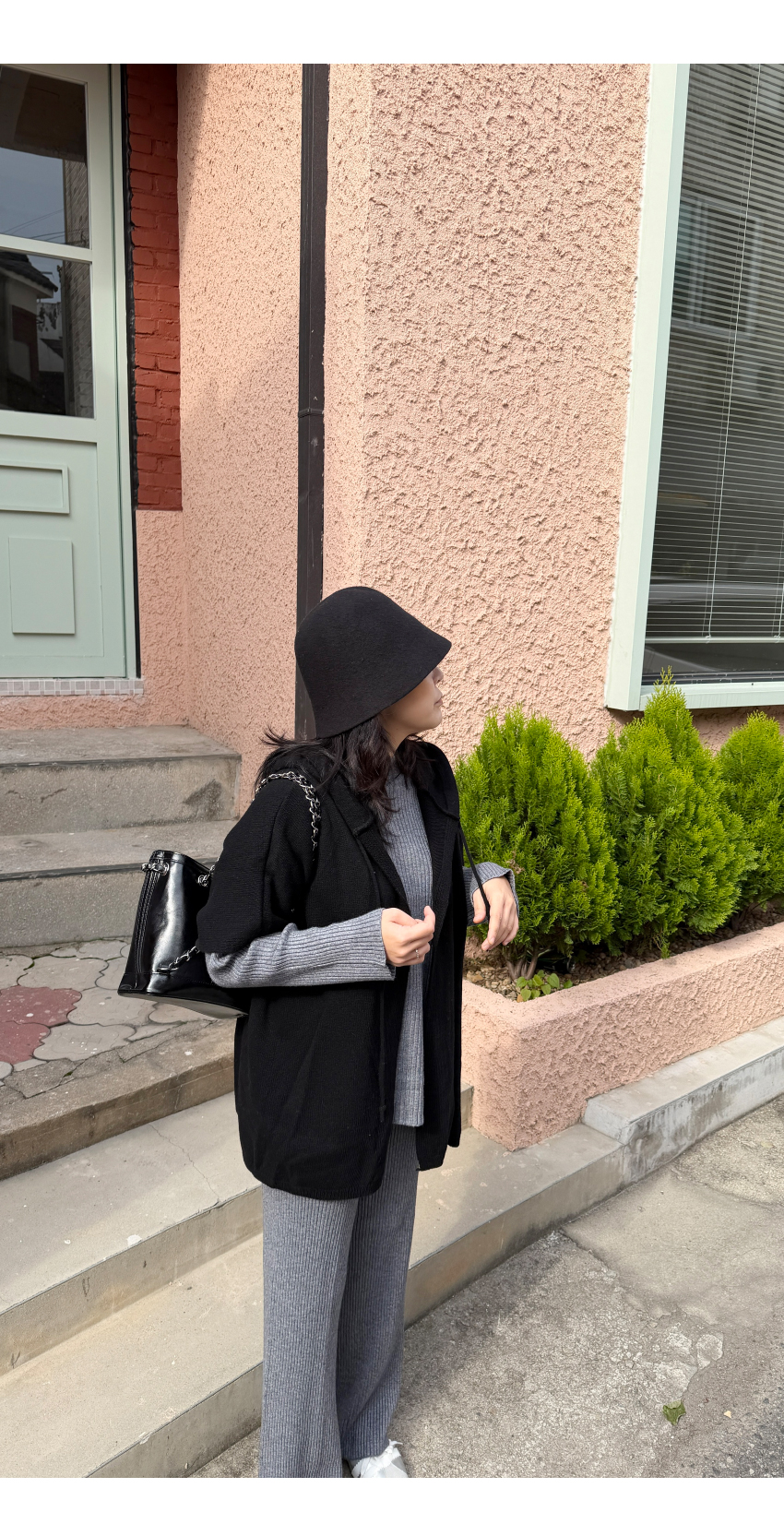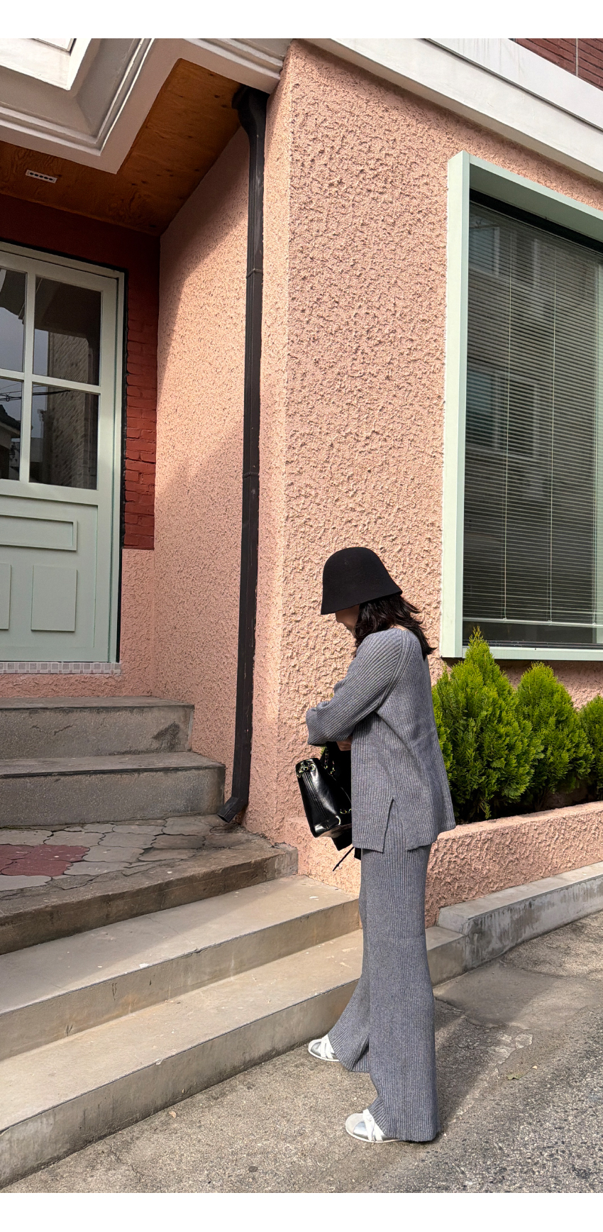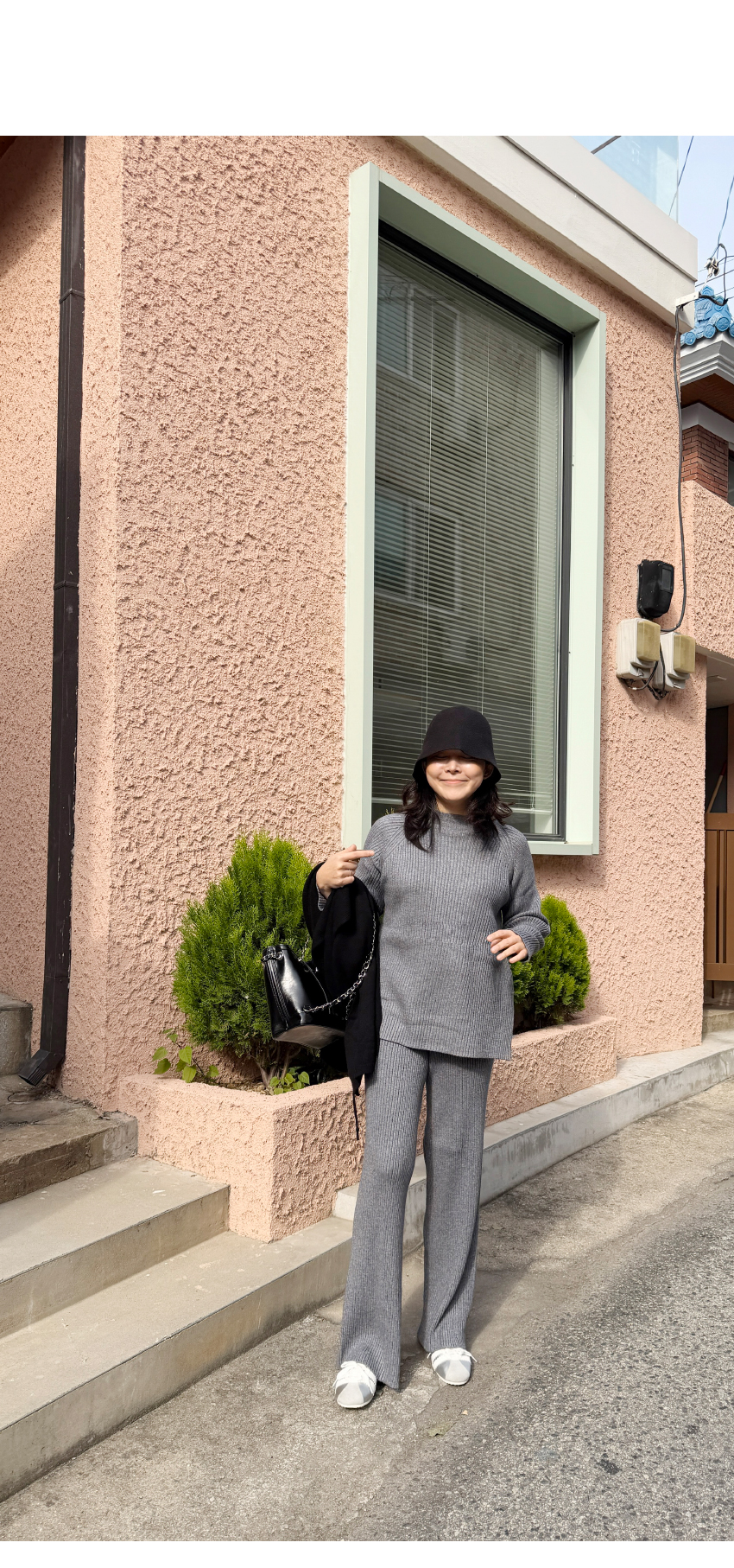 데일리한 골지니트와 일자핏 니트팬츠가 세트로 제작되어 활용성은 물론,