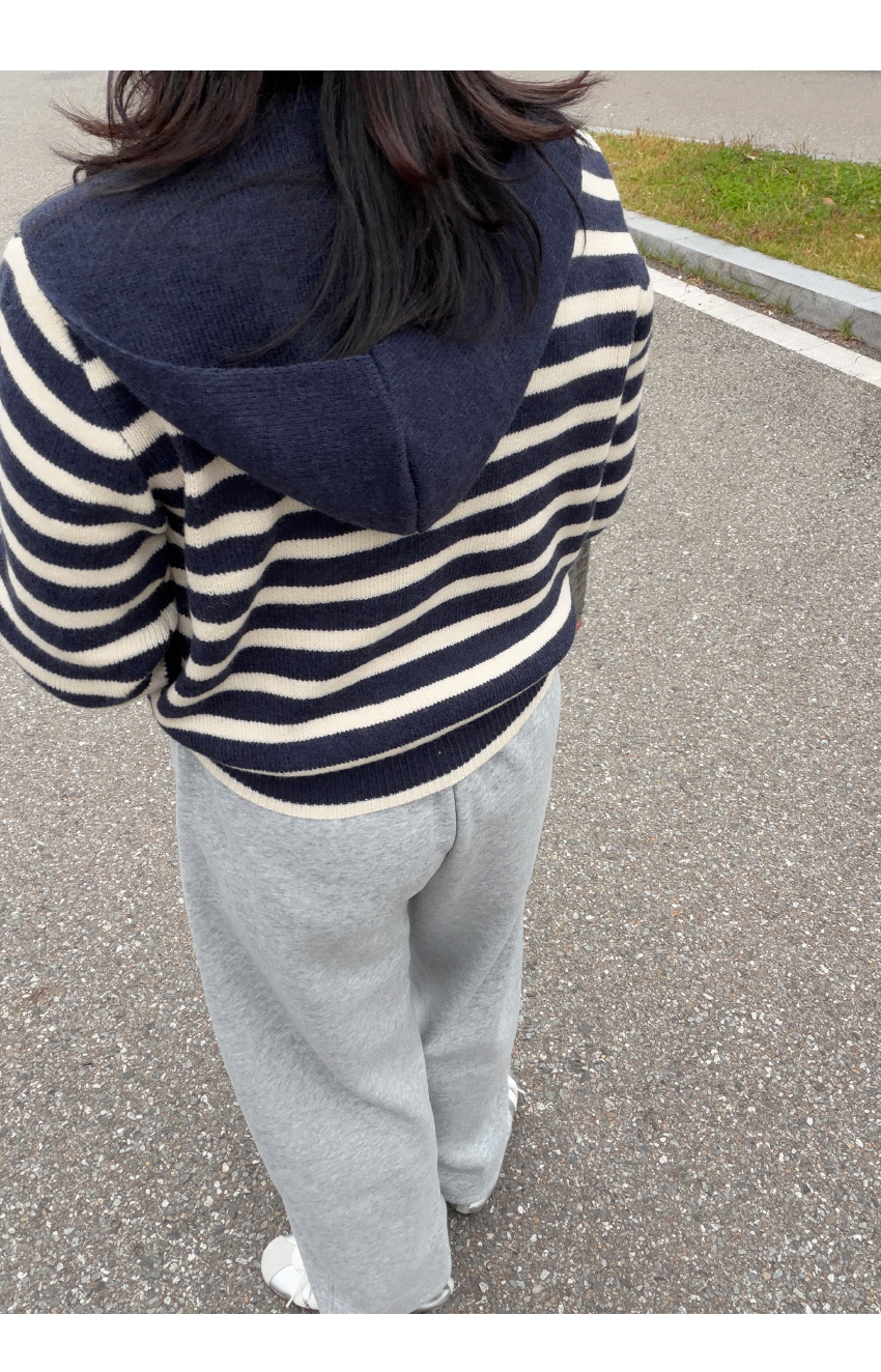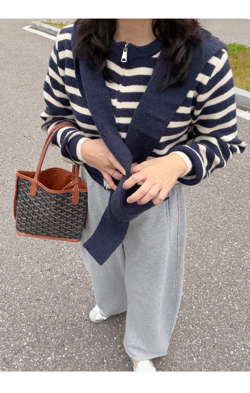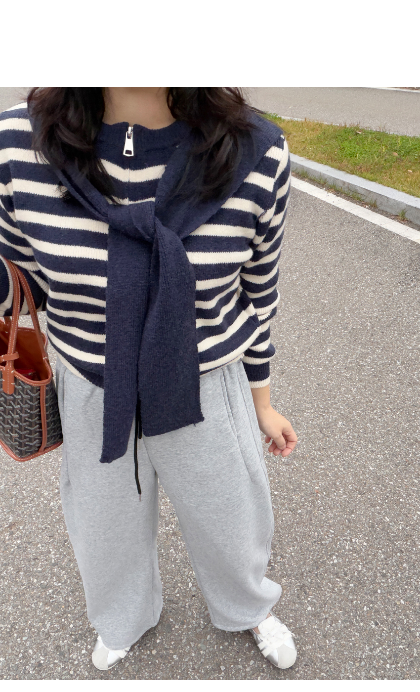 데일리로 활용하기 좋은 스트라이프 니트에요,소프트한 착용감으로 아주 부드러운 텍스처를 자랑하는 아이템입니다기본에 충실한 디테일에 라운드 넥으로 보다 더 깔끔한 실루엣을 연출해드리며,앞중심 지퍼로 간편한 클로징을 도와드립니다후드넥이 마련된 머플러가 세트로 제작되어 가성비는 물론,캐쥬얼한 실루엣으로 센스있게 즐기기 좋아다양한 아이템과 두루두루 매칭하기 편하실거에요,컬러는 그레이,네이비,아이보리 총 3컬러로 준비해보았구요,사이즈는 프리사이즈로 44-66사이즈까지 추천해드리며,정확한 사이즈는 상세표를 참고해주세요,