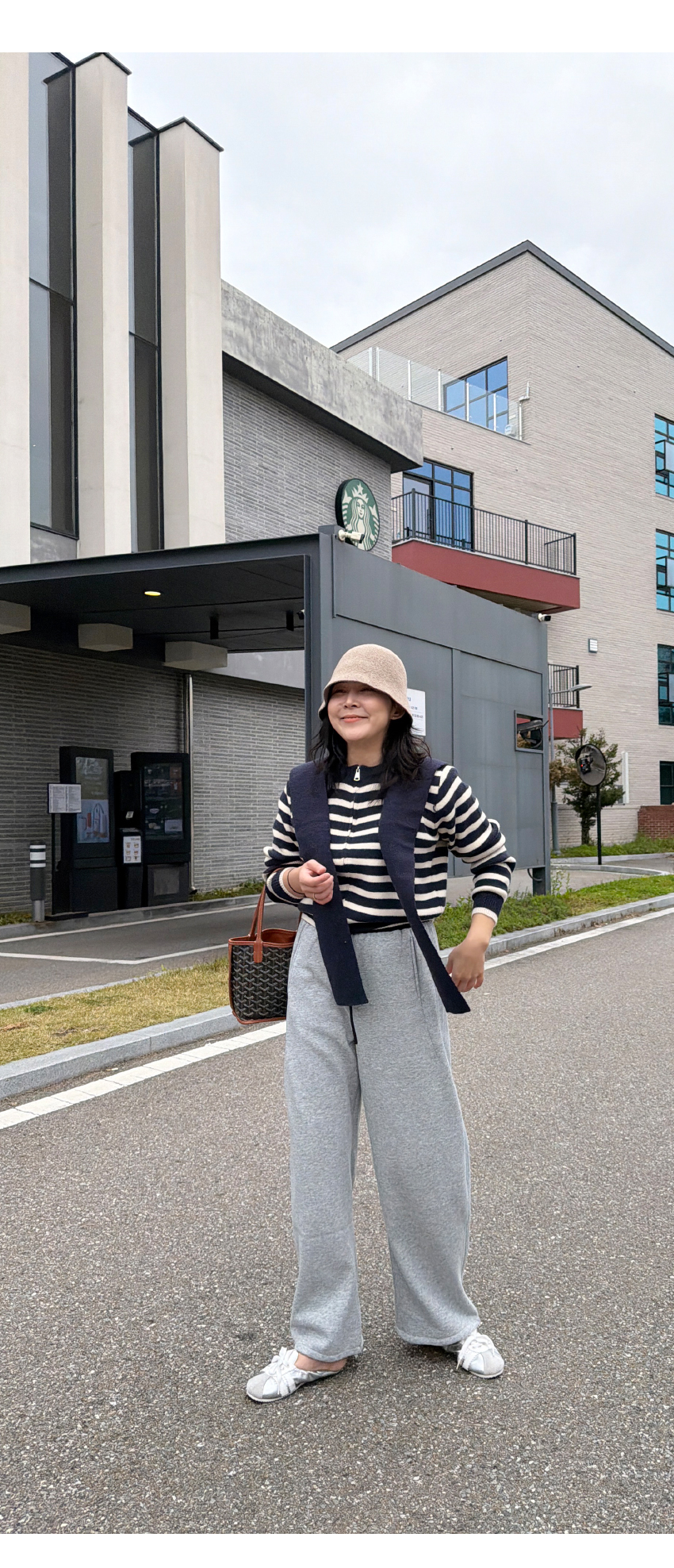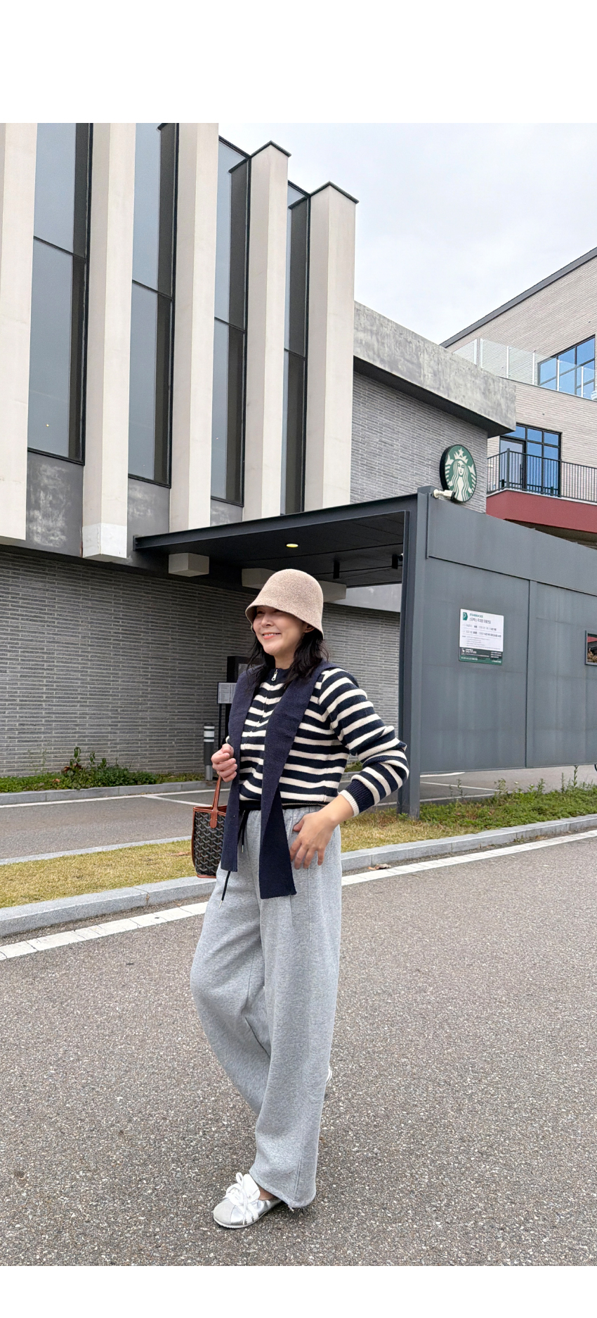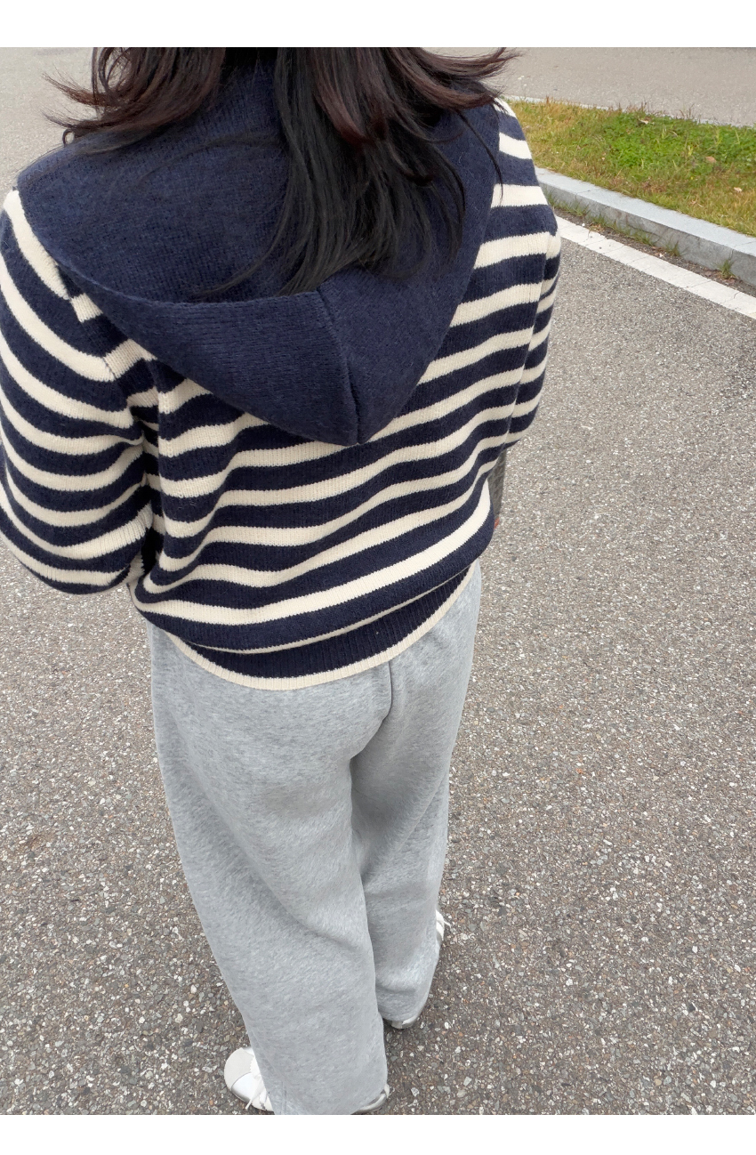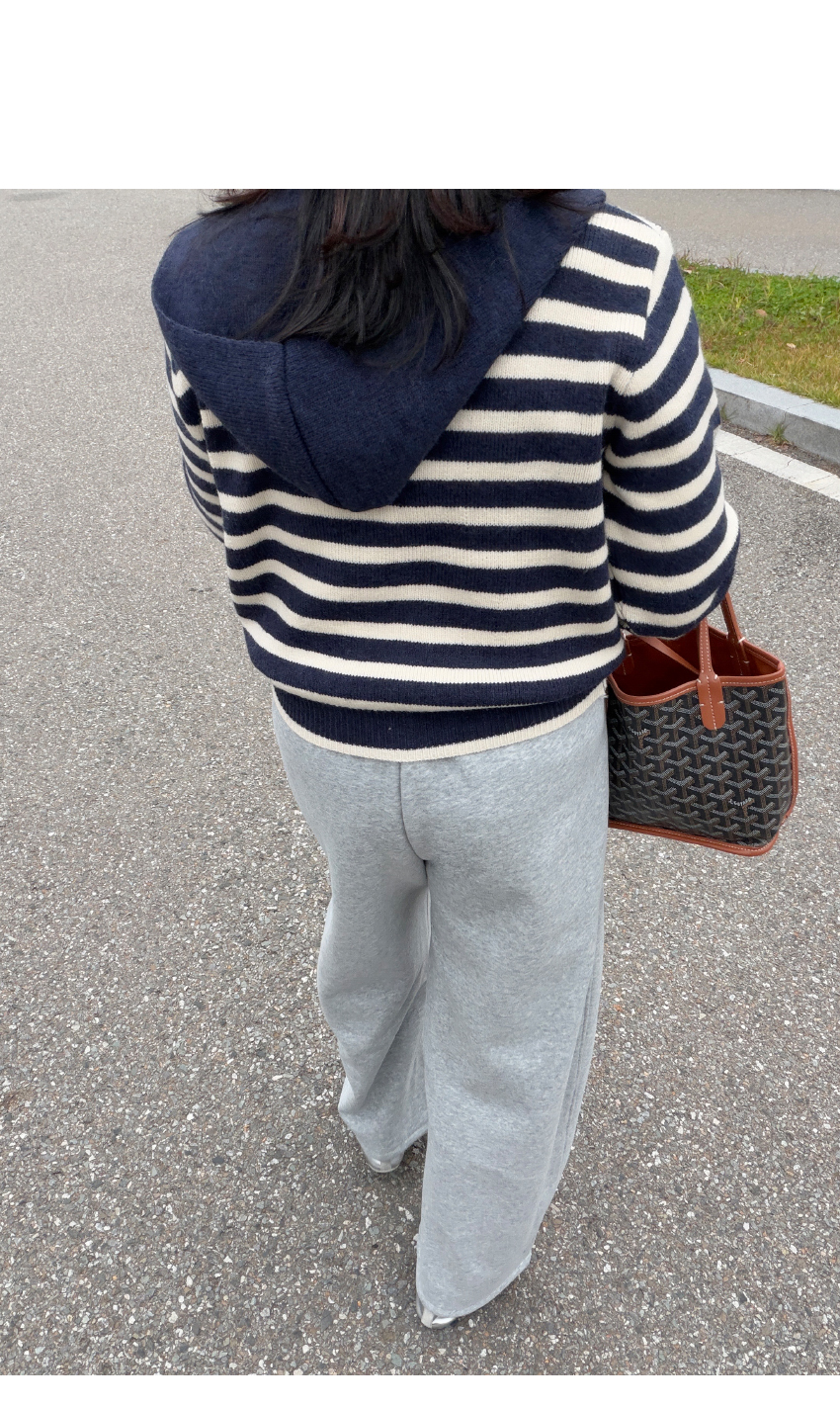 데일리로 활용하기 좋은 스트라이프 니트에요,소프트한 착용감으로 아주 부드러운 텍스처를 자랑하는 아이템입니다기본에 충실한 디테일에 라운드 넥으로 보다 더 깔끔한 실루엣을 연출해드리며,앞중심 지퍼로 간편한 클로징을 도와드립니다후드넥이 마련된 머플러가 세트로 제작되어 가성비는 물론,캐쥬얼한 실루엣으로 센스있게 즐기기 좋아다양한 아이템과 두루두루 매칭하기 편하실거에요,컬러는 그레이,네이비,아이보리 총 3컬러로 준비해보았구요,사이즈는 프리사이즈로 44-66사이즈까지 추천해드리며,정확한 사이즈는 상세표를 참고해주세요,