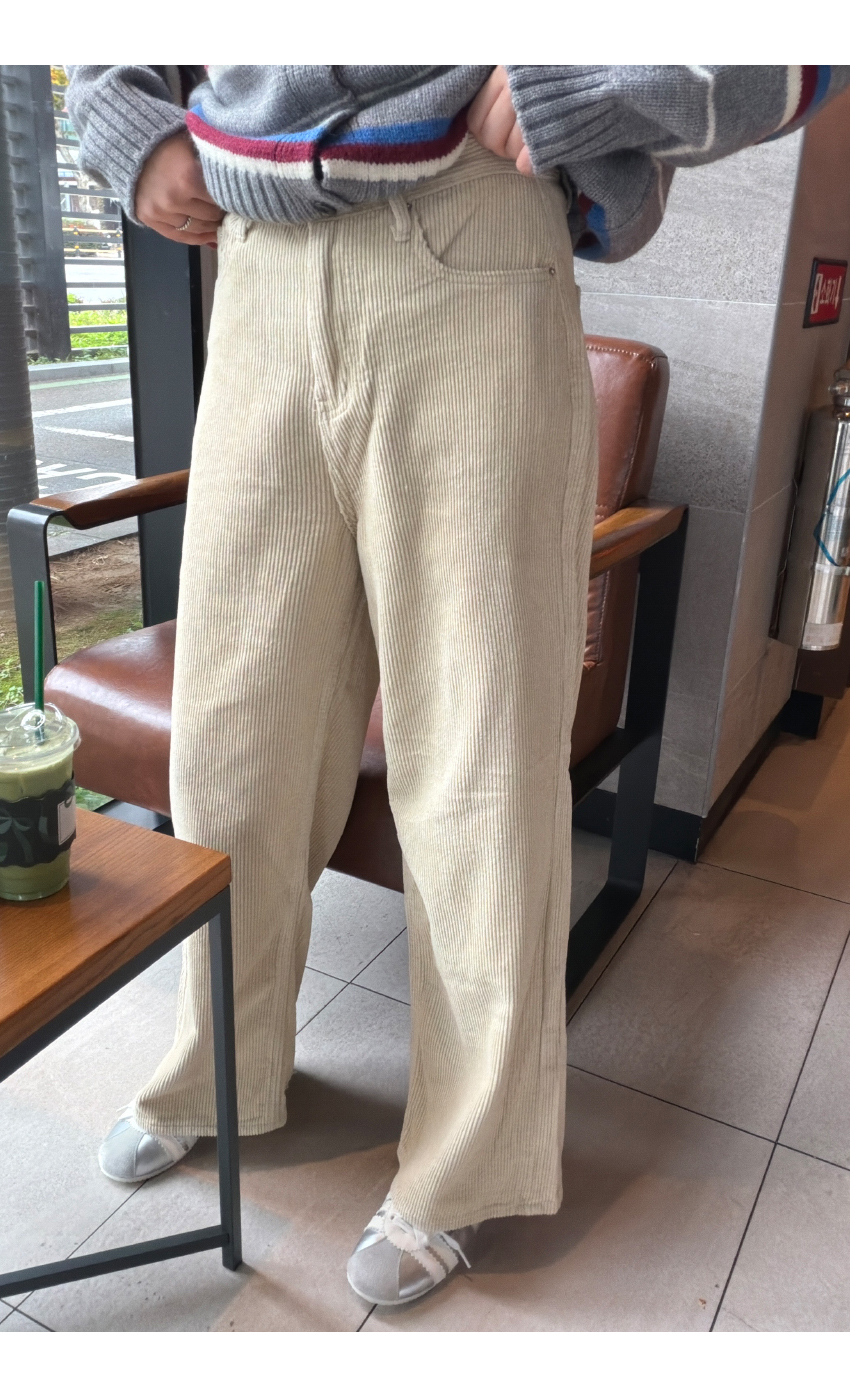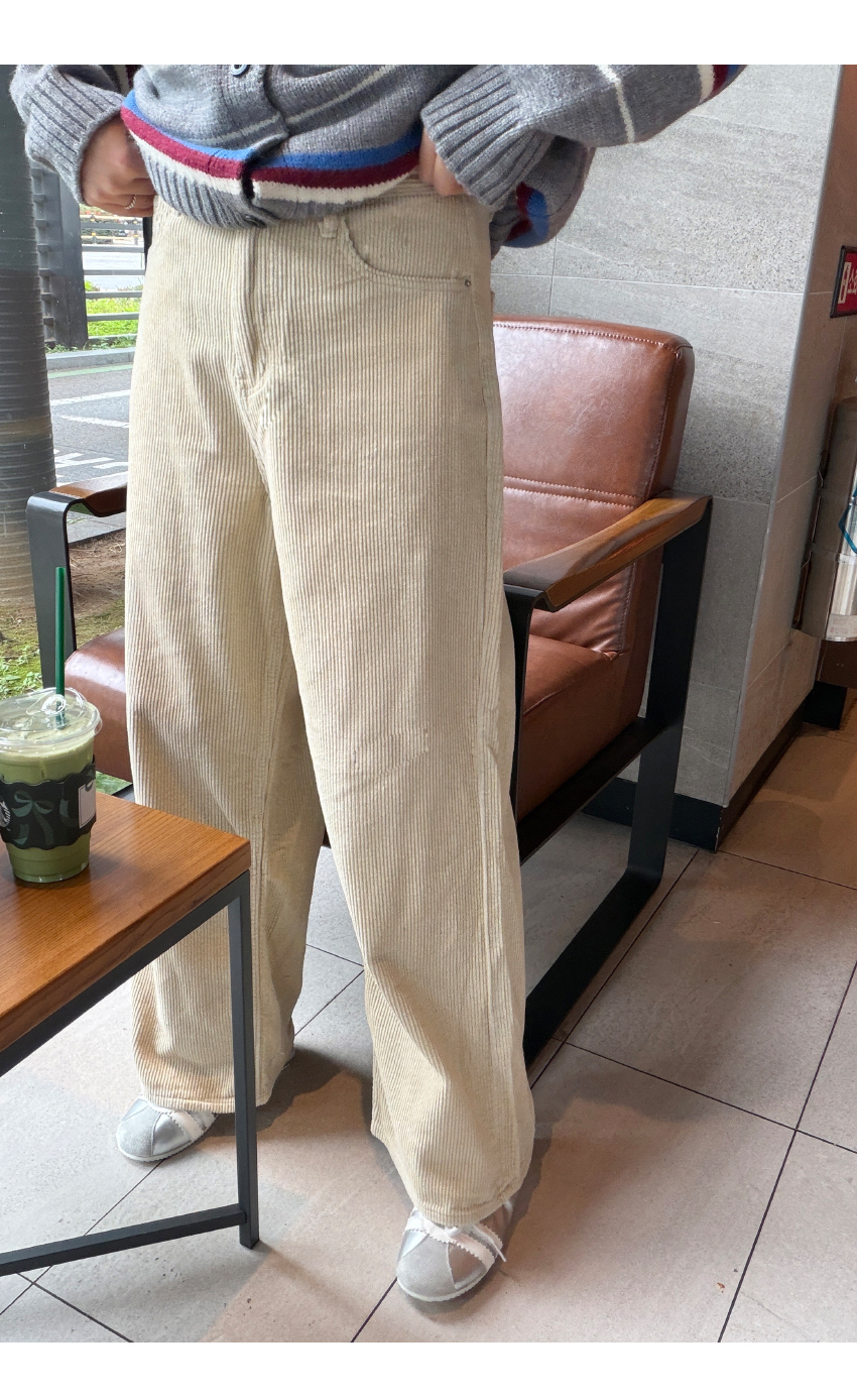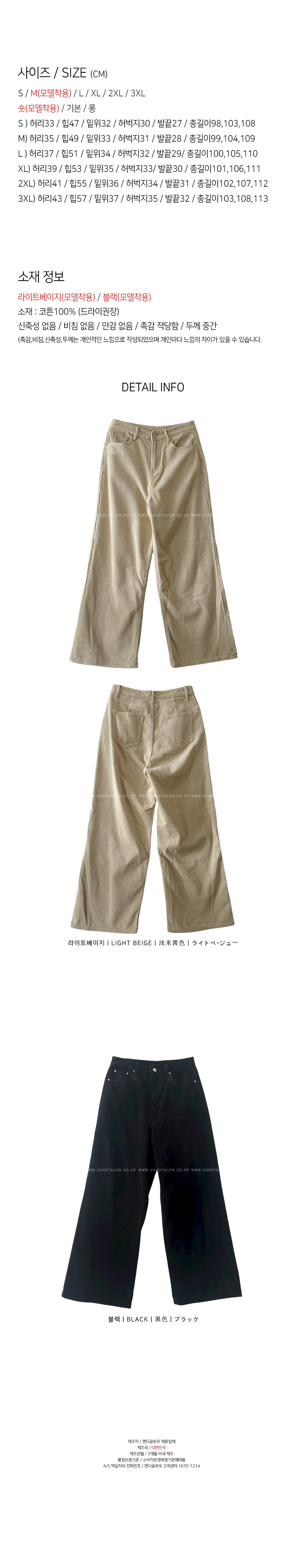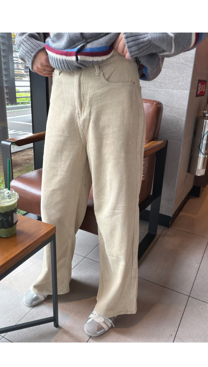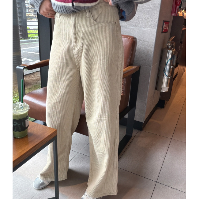 코튜로이팬츠를 소개해드려요너무 뻣뻣하지않은 부드러운 코튼소재에하이웨스트라인으로 롱한 레그라인을 연출해드리는데요,와이드한 일자핏으로 체형커버는 물론,다양한 티셔츠나 니트등 코디가 이지한 데일리템이예요,전체적인 룩에 감도를 높여드릴 아이템으로 추천드릴게요,