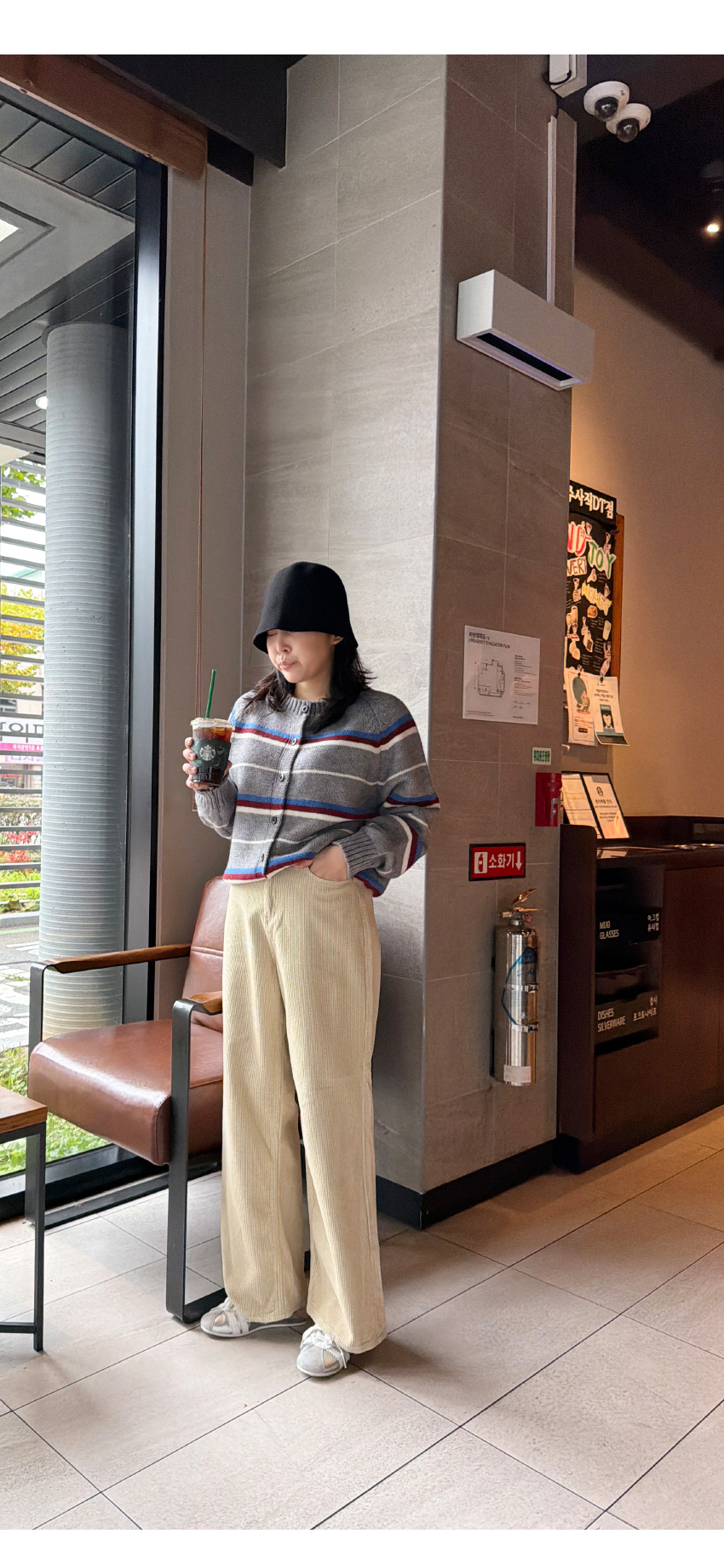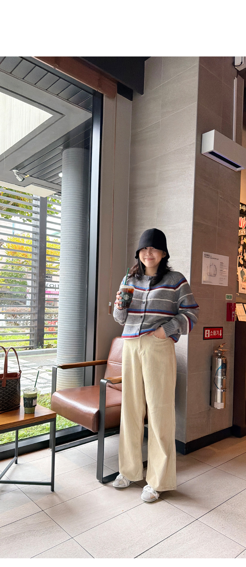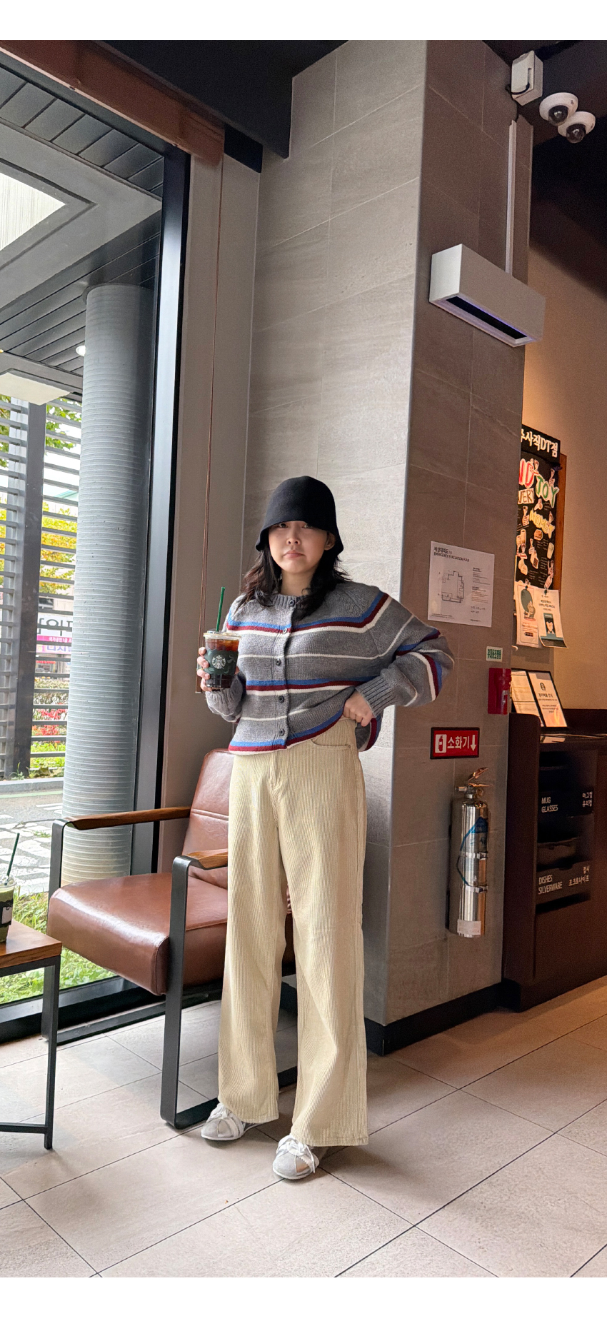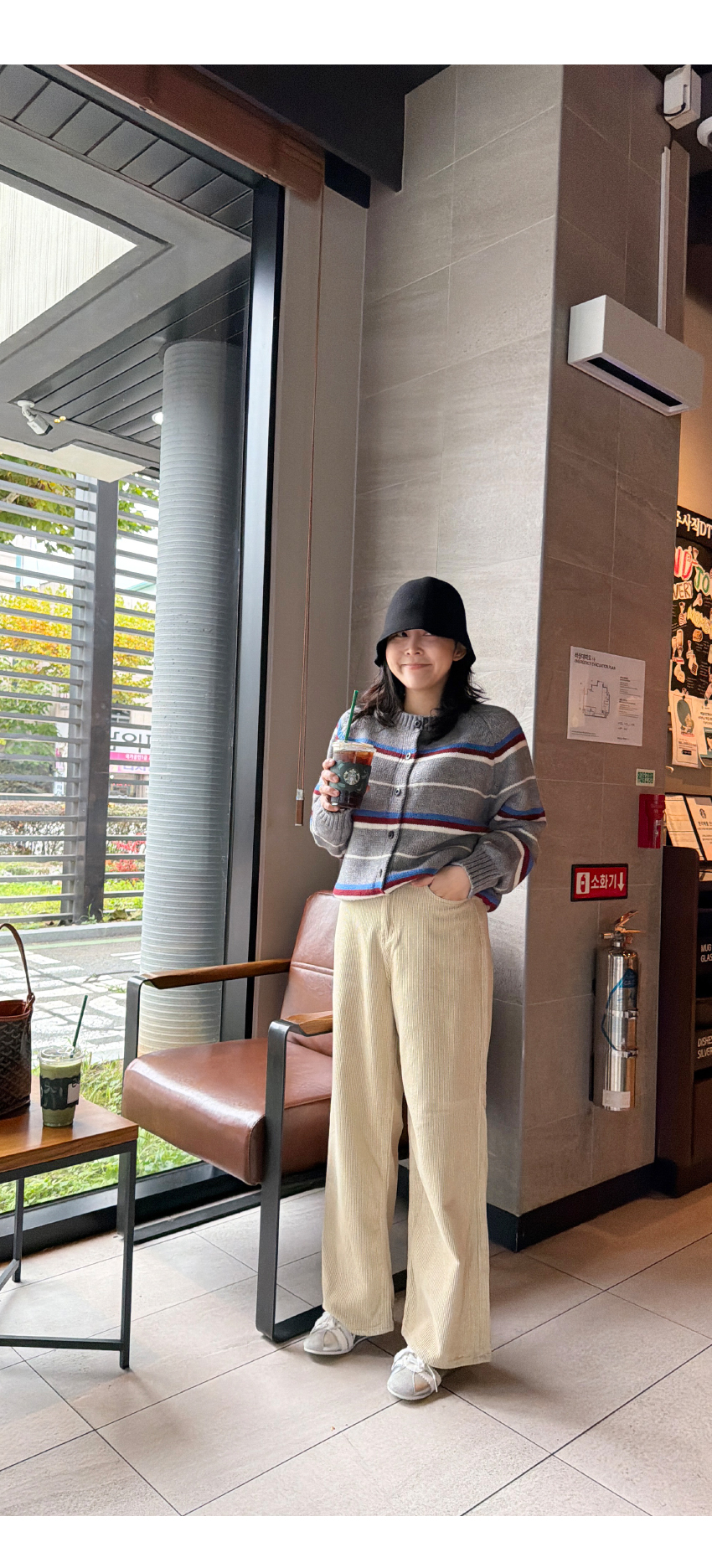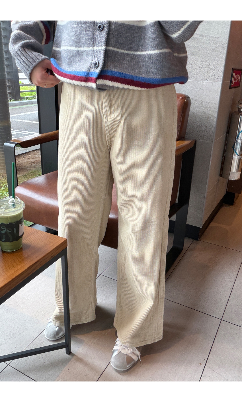 코튜로이팬츠를 소개해드려요너무 뻣뻣하지않은 부드러운 코튼소재에하이웨스트라인으로 롱한 레그라인을 연출해드리는데요,와이드한 일자핏으로 체형커버는 물론,다양한 티셔츠나 니트등 코디가 이지한 데일리템이예요,전체적인 룩에 감도를 높여드릴 아이템으로 추천드릴게요,