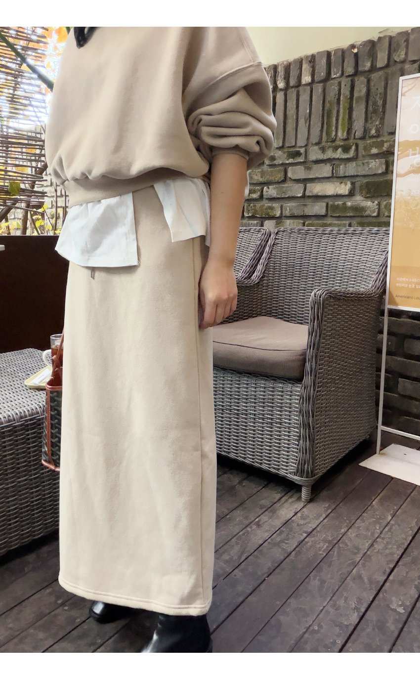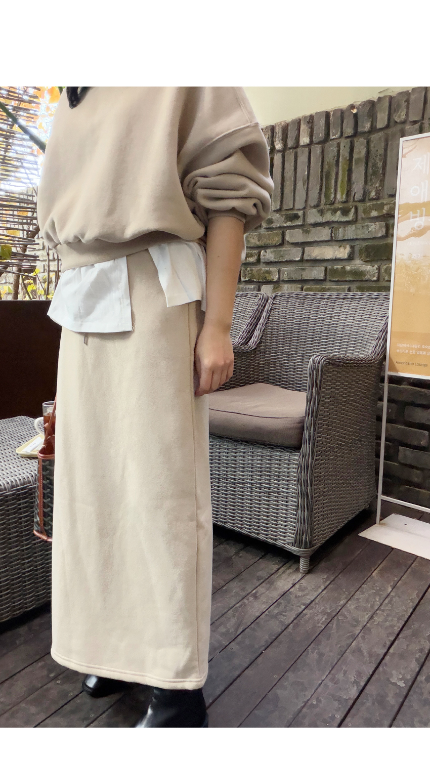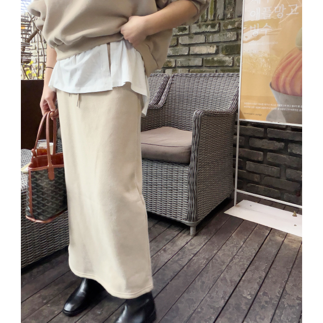 캐쥬얼한 무드의 롱라인 스커트에요,