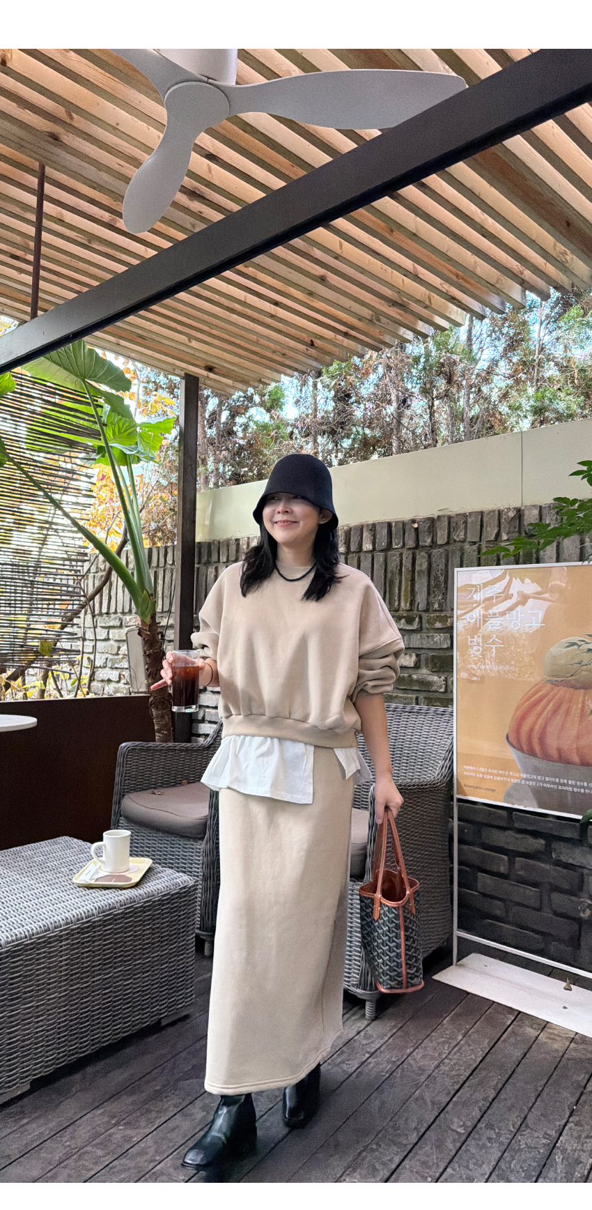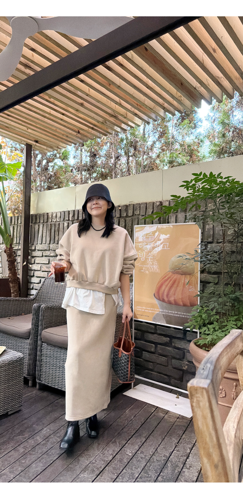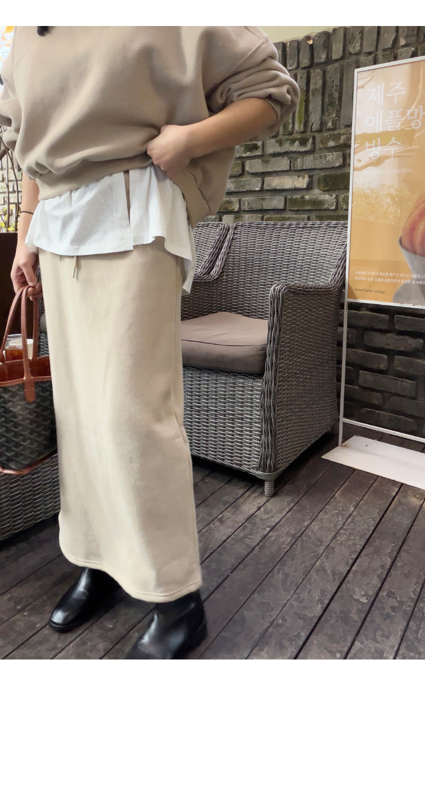 캐쥬얼한 무드의 롱라인 스커트에요,