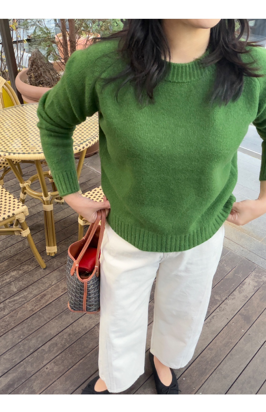 깔끔한 라운드 네크라인으로 여리여리한 목선과