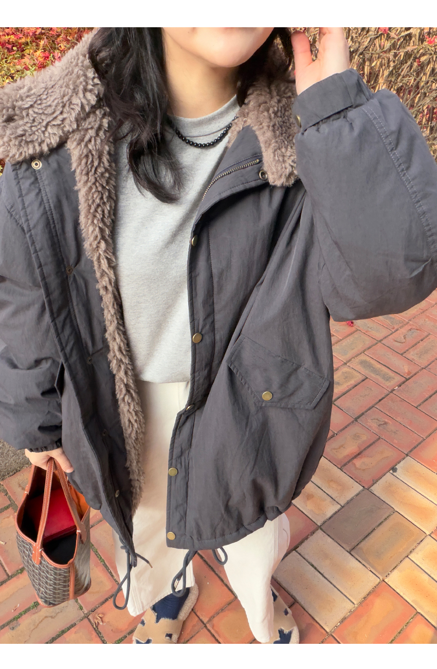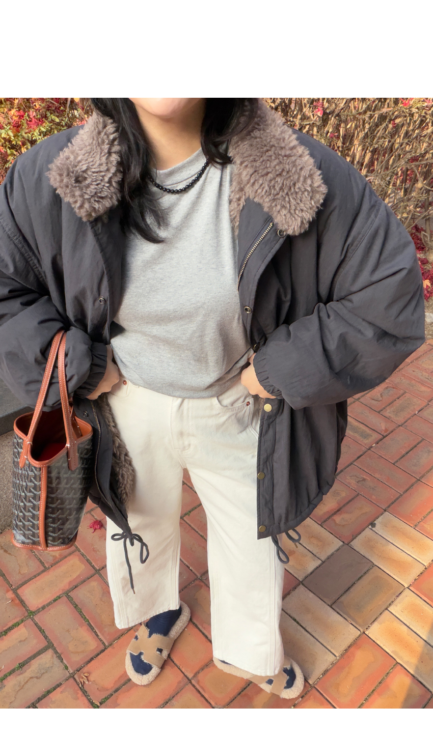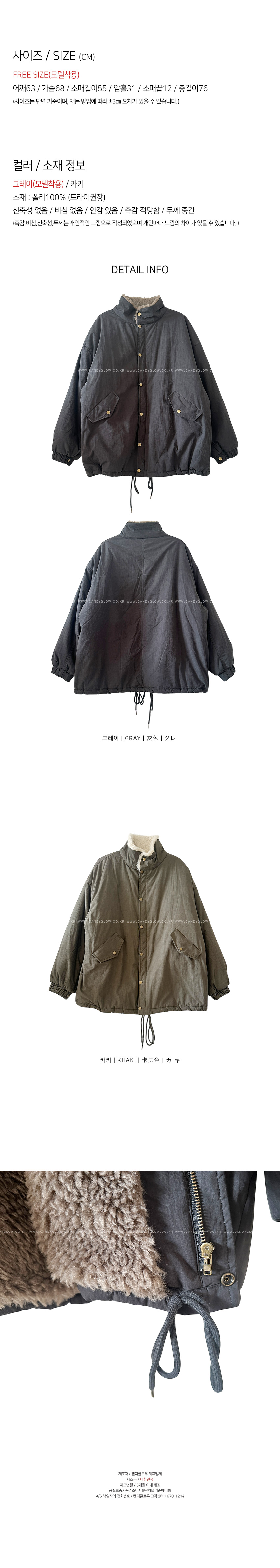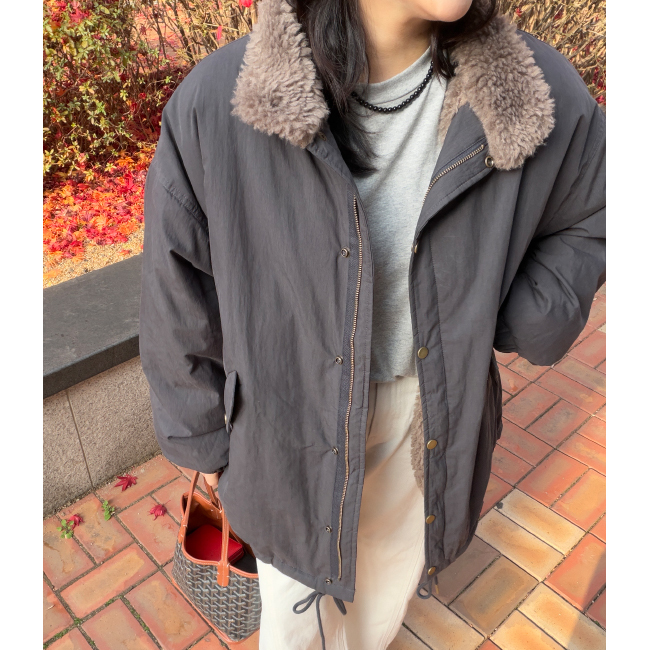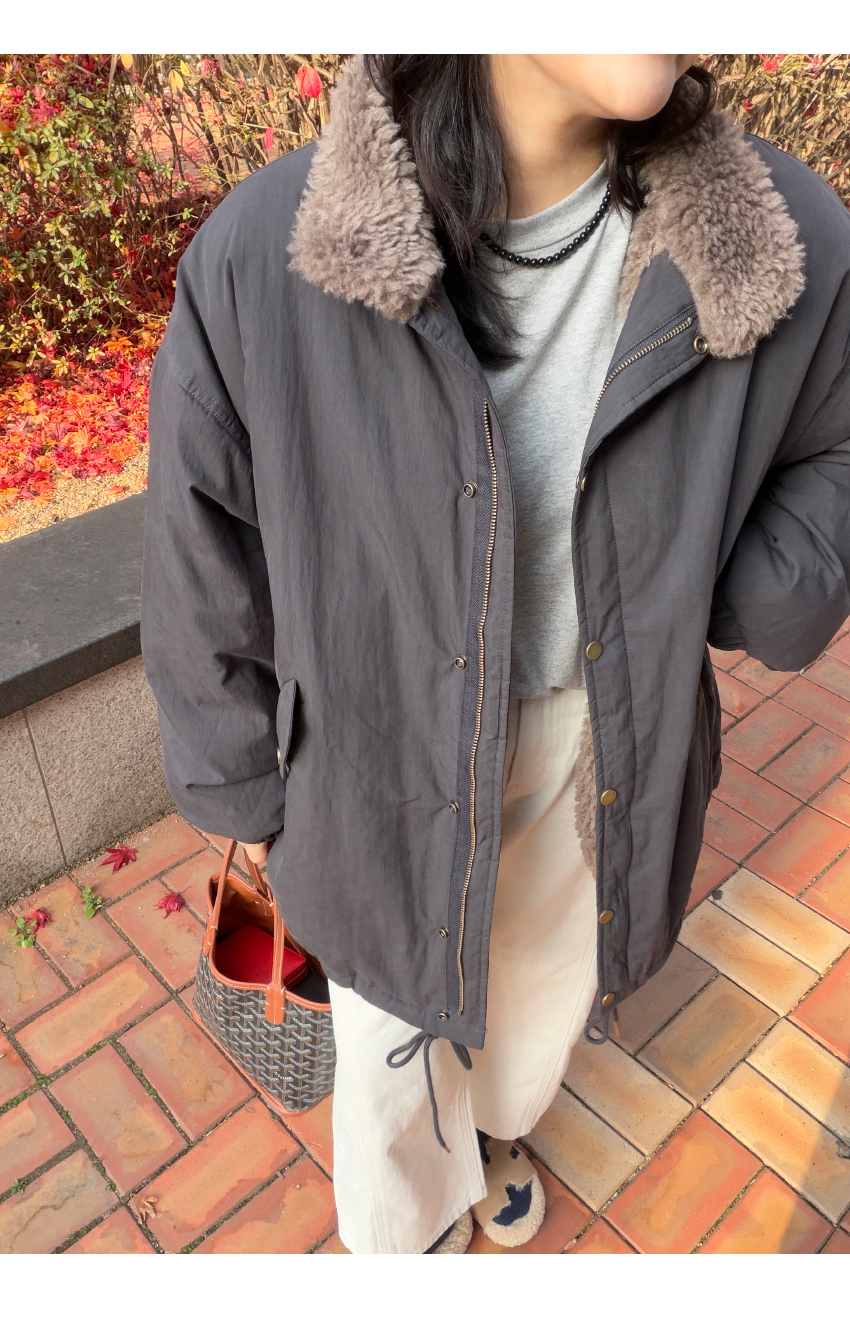 데일리 겨울 야상을 소개해드려요,유행에 구애없이 입기 좋으면서다양한 아이템과 매치하기에도 좋은 캐주얼템이예요,안감이 퍼로 높은 보온성을 자랑하며,캐주얼한 디테일로 데일리하게 즐기기 좋아요,넉넉한 오버핏으로 체형커버는 물론,앞중심 지퍼와 똑딱이 단추로 간편한 클로징을 도와드립니다,페미닌룩이나 간편한 캐주얼룩 등 코디하기 편해 사심담아 추천드릴게요,컬러는 그레이,카키 총 2컬러로 준비해보았구요사이즈는 프리사이즈로 44-77사이즈까지 추천해드리며,정확한 사이즈는 상세표를 참고해주세요!