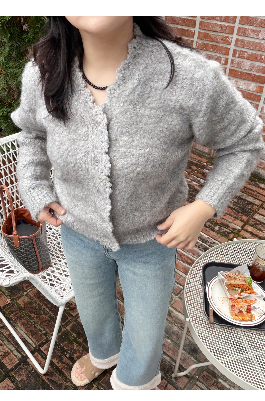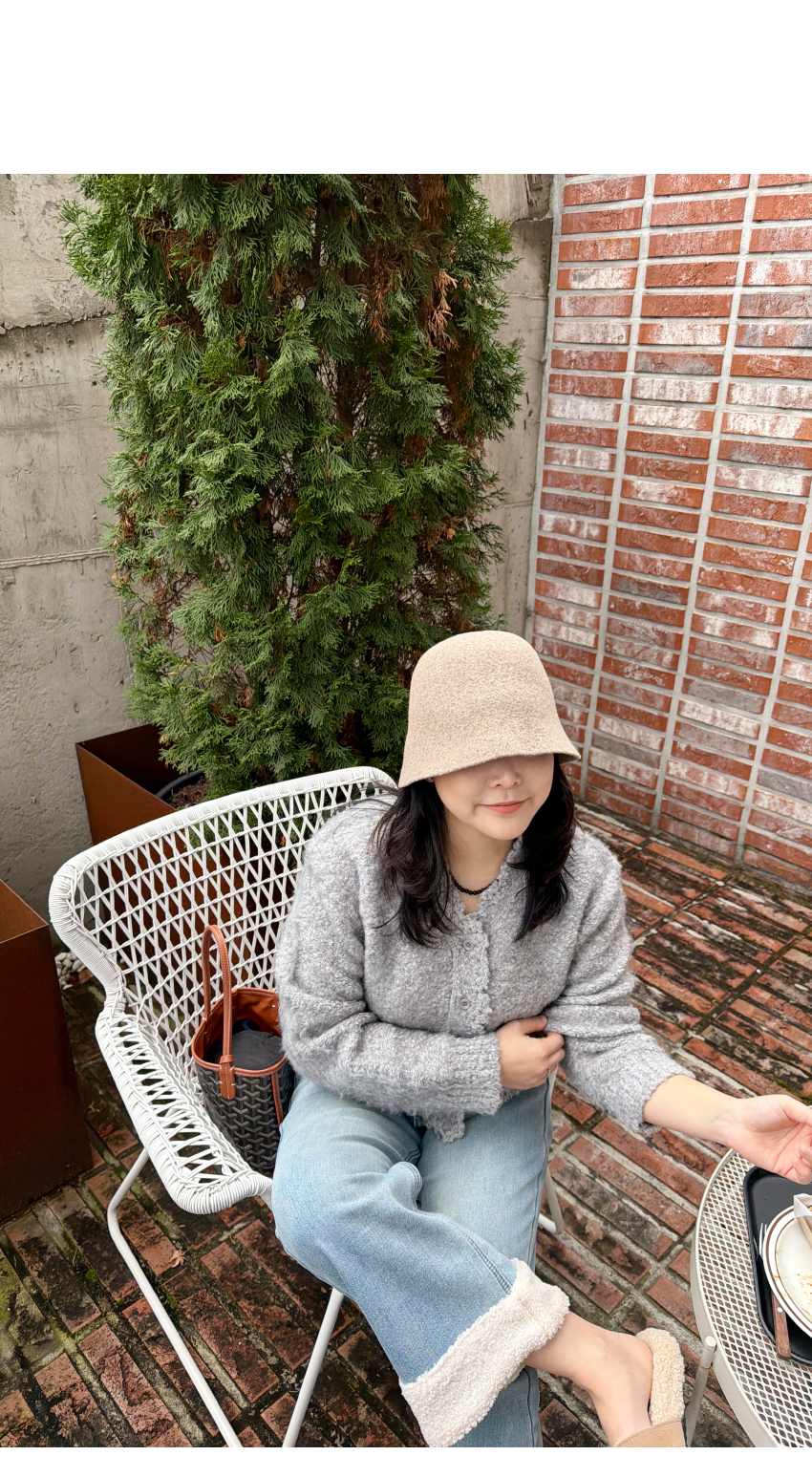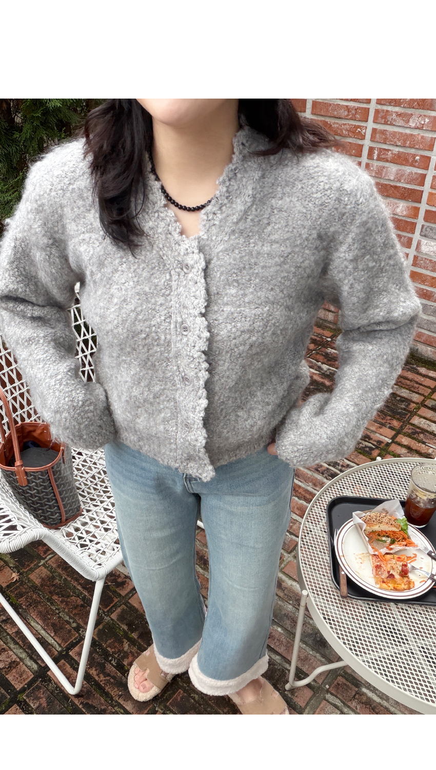 페미닌한 무드의 니트 가디건이에요.브이넥라인의 베이직한 무드와유니크한 분위기를 연출해드립니다,울소재가 50% 함유되어 보온성은 물론,부드러운 텍스처로 피부가 예민하신 분들도