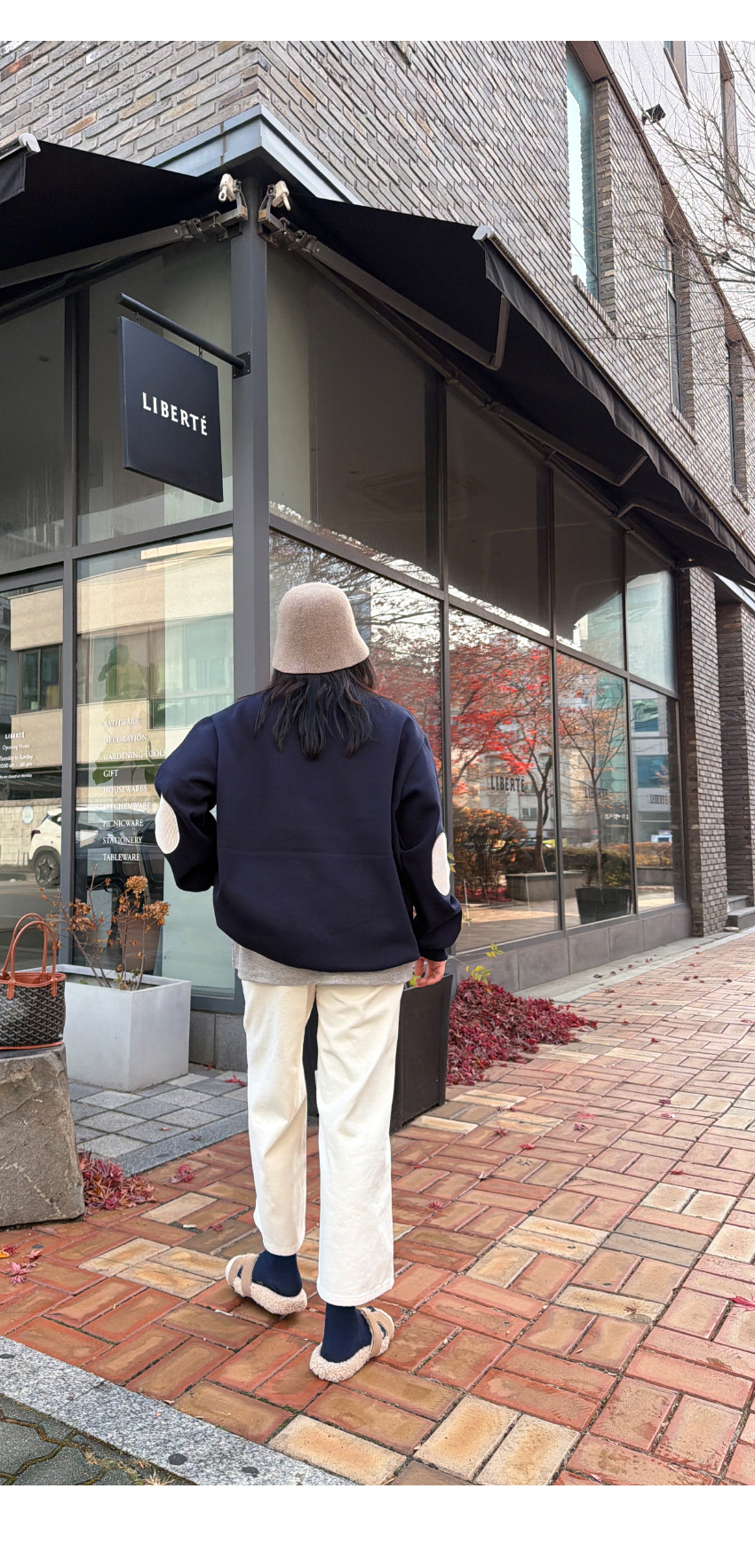 소매라인 패치가 더해져 유니크한 무드를 자아내요,