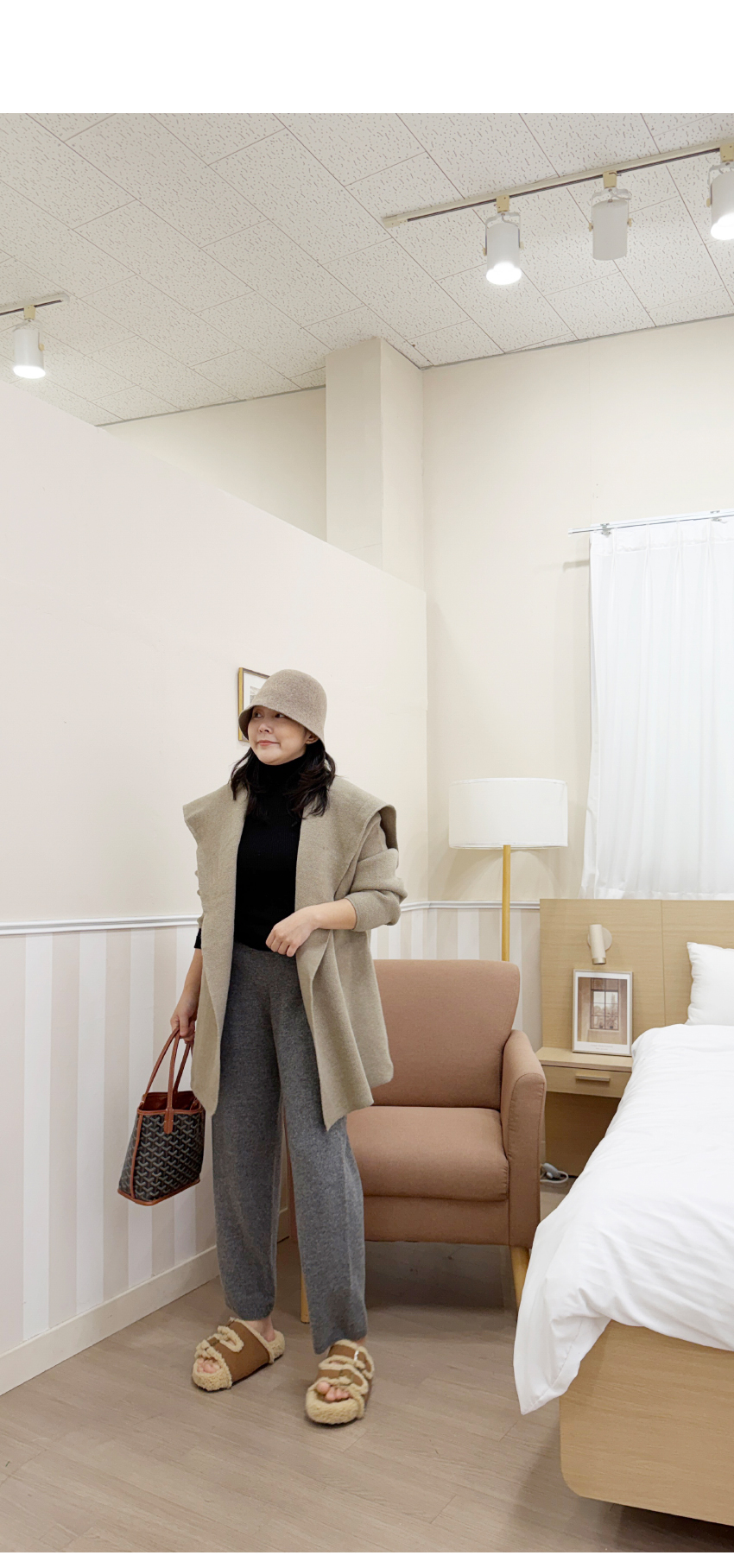 네추럴한 무드의 후드 가디건이에요.