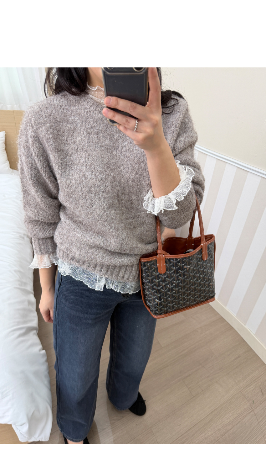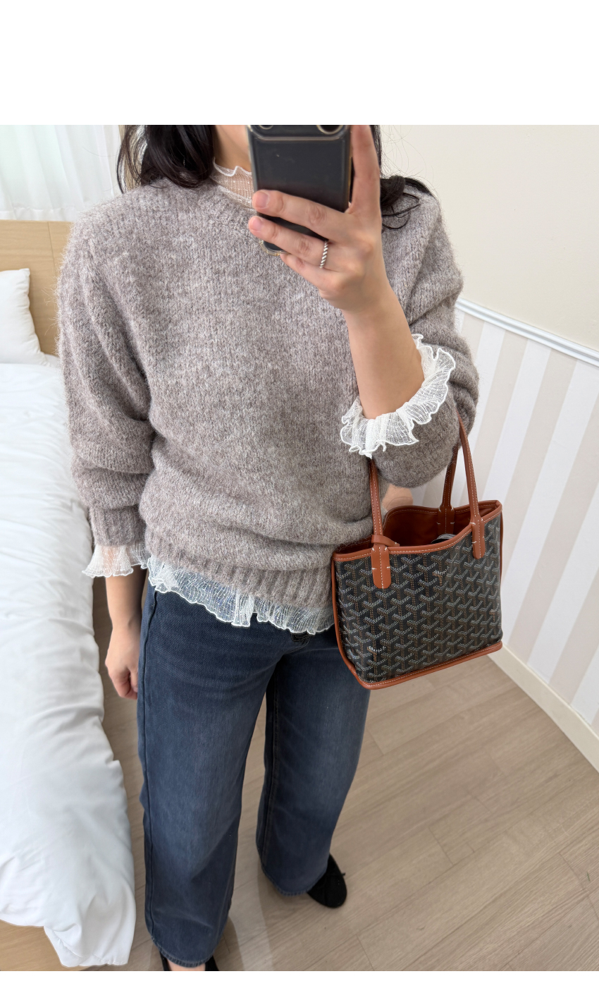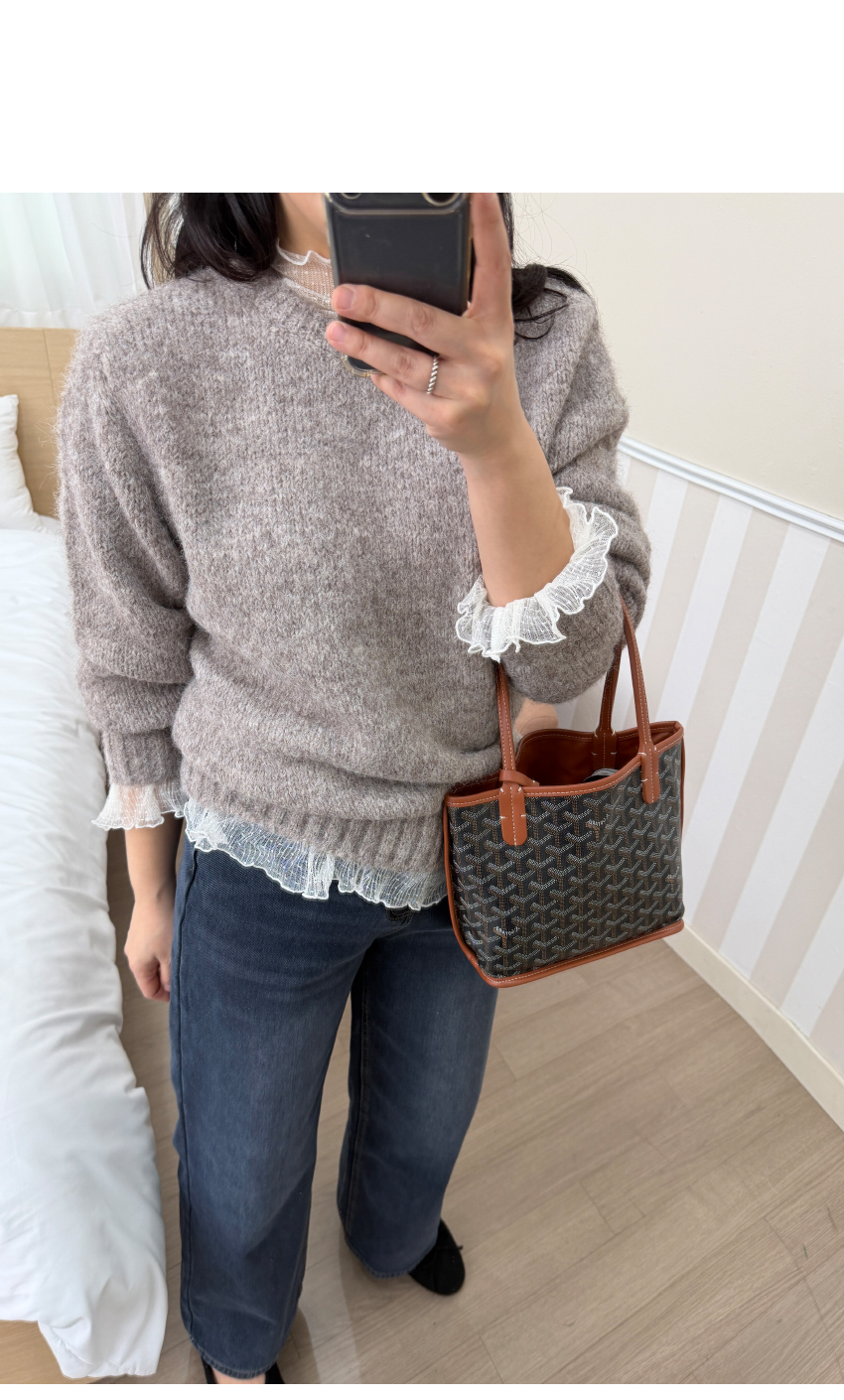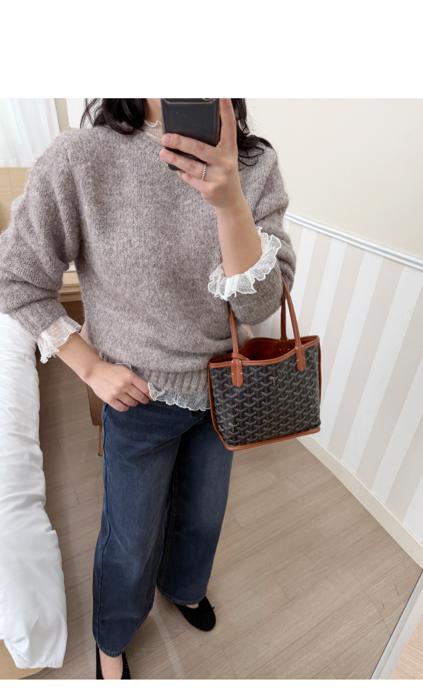 넥라인에 레이스디테일이 포인트되어 다양한 룩으로 즐기실 수 있어요,