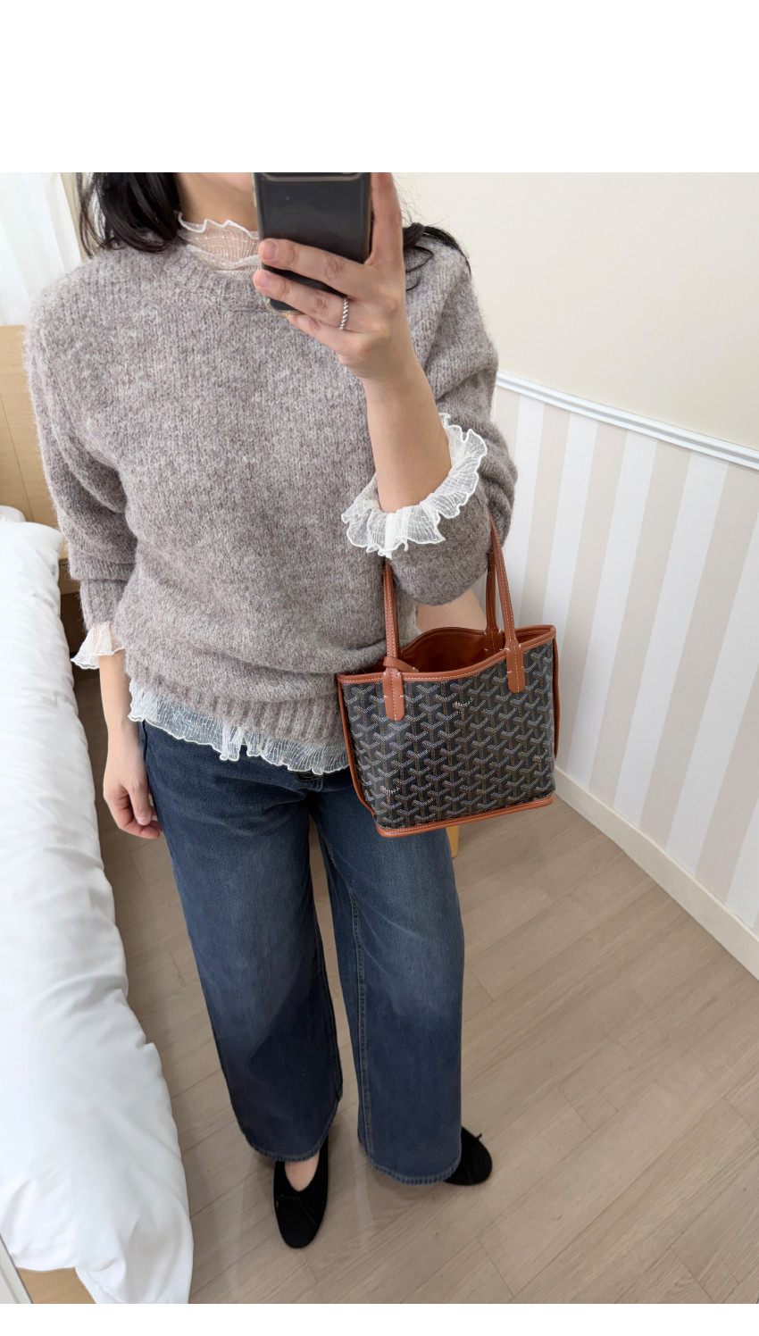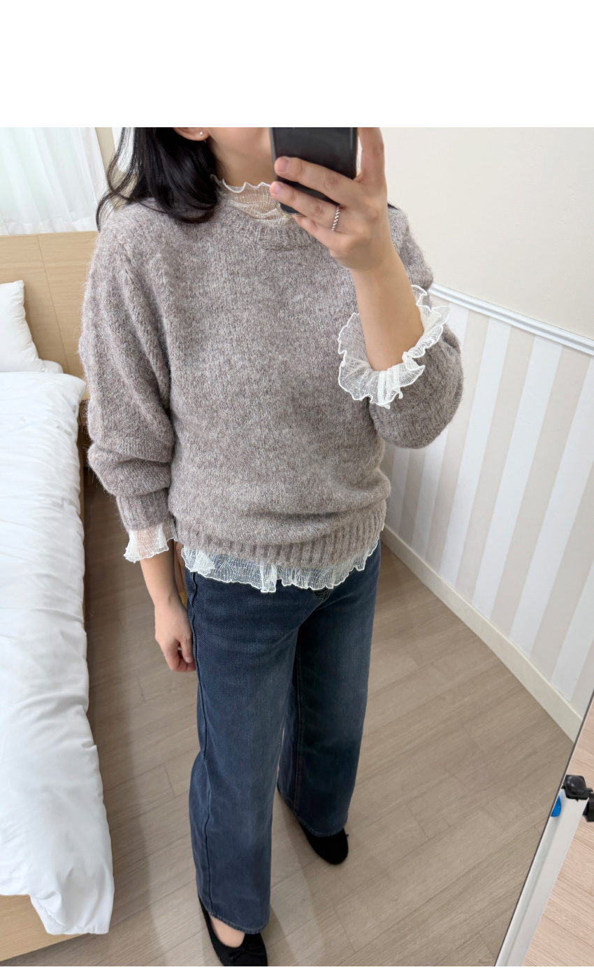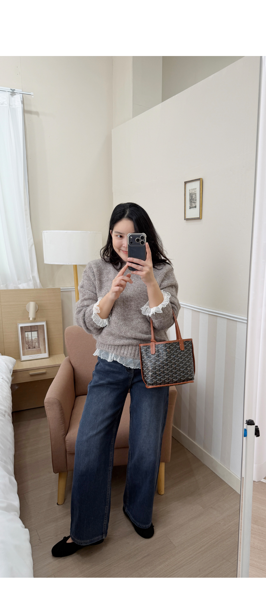 넥라인에 레이스디테일이 포인트되어 다양한 룩으로 즐기실 수 있어요,