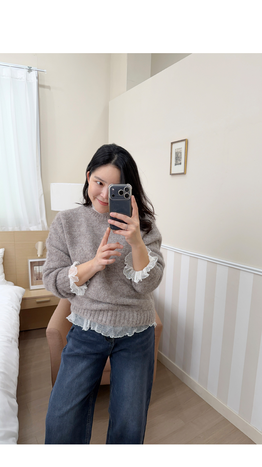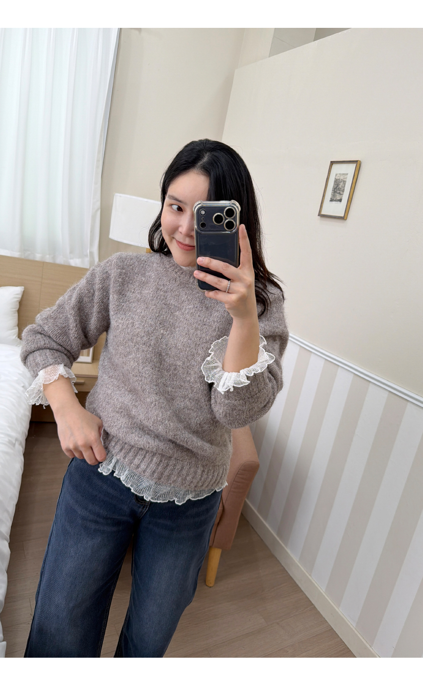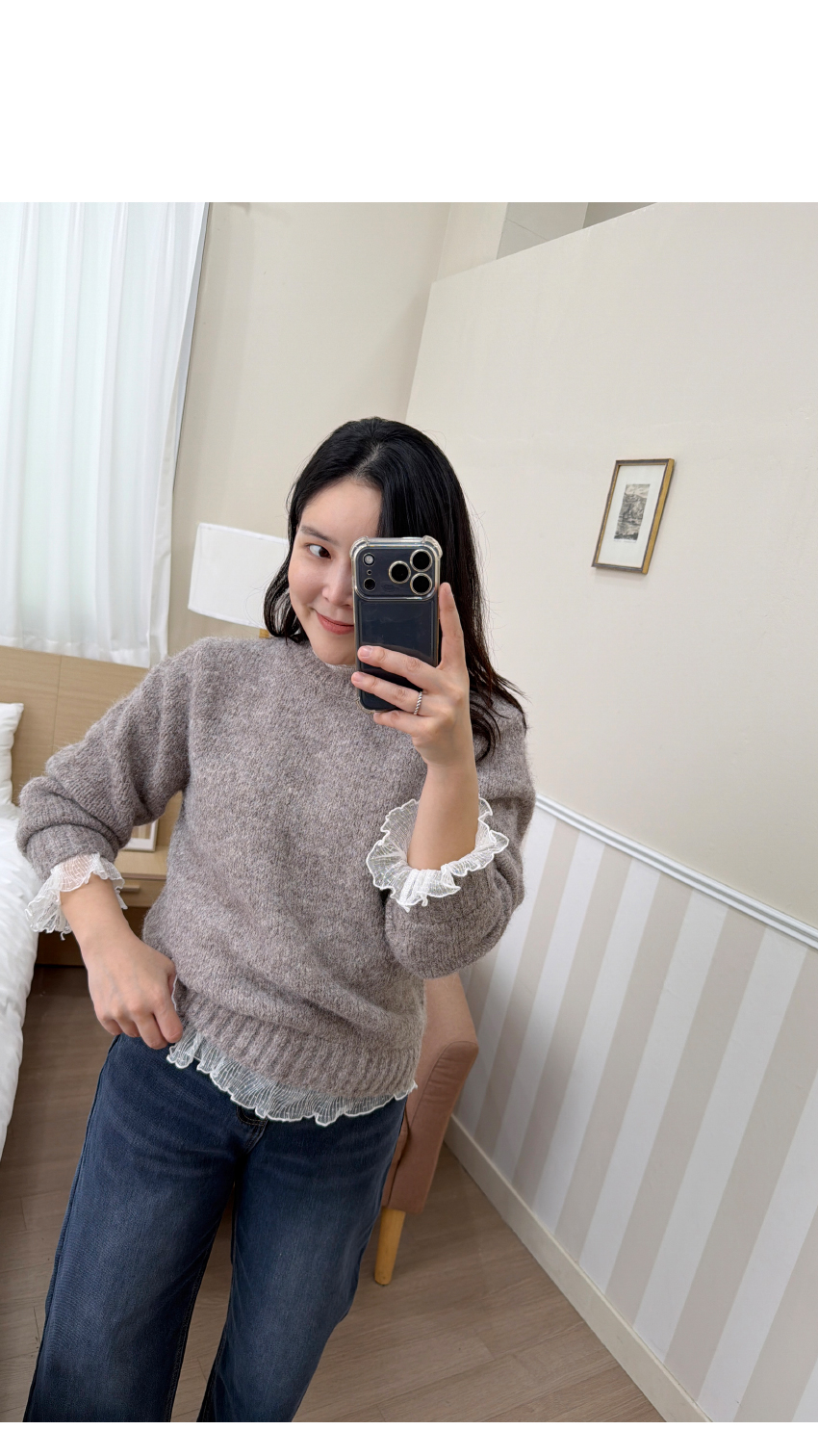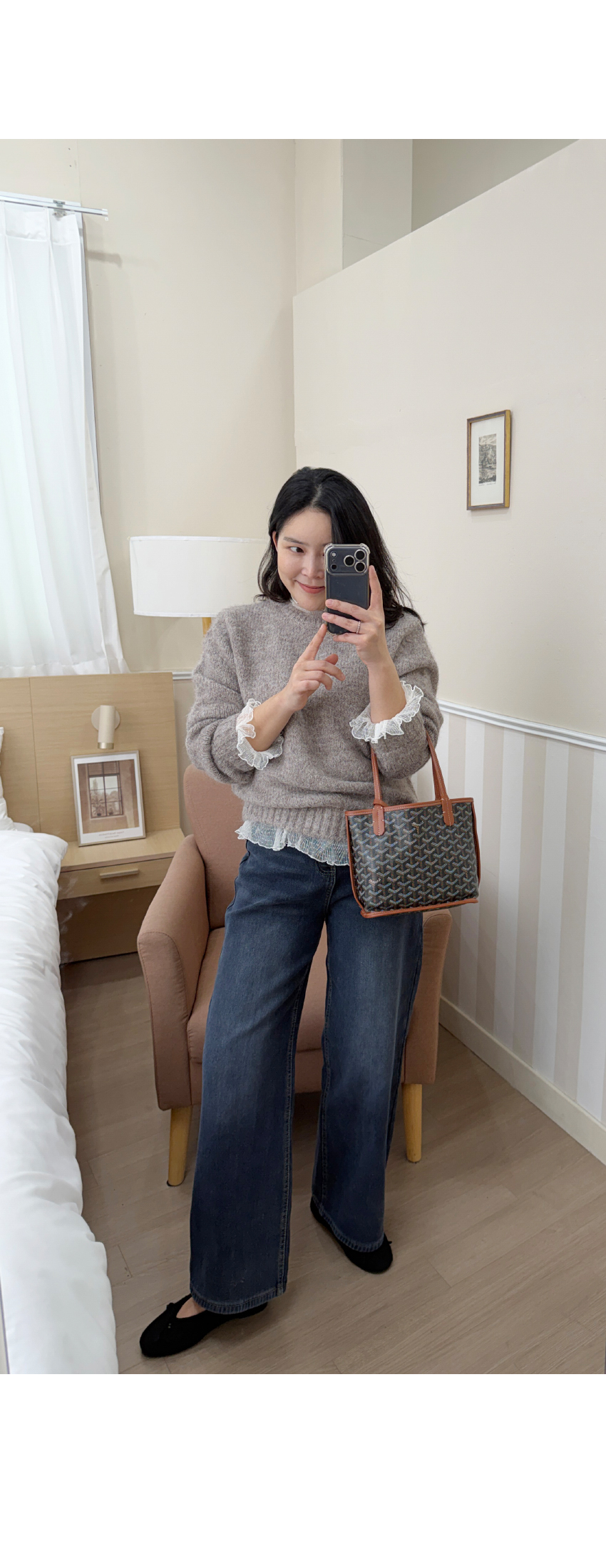 넥라인에 레이스디테일이 포인트되어 다양한 룩으로 즐기실 수 있어요,