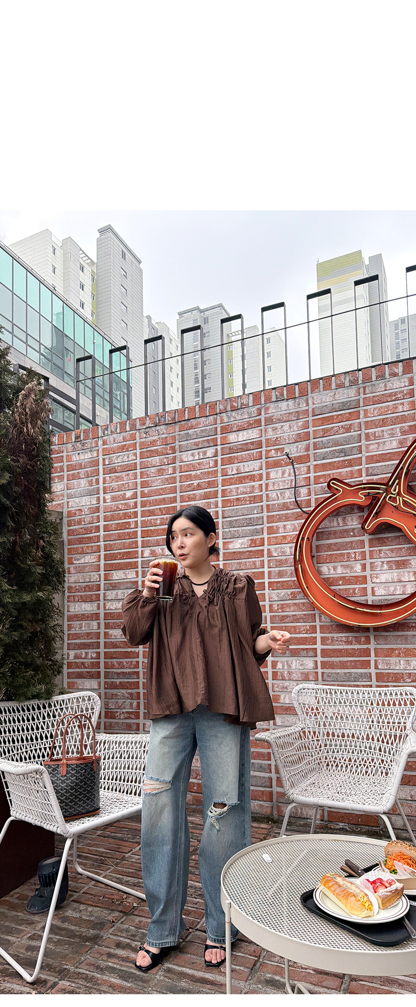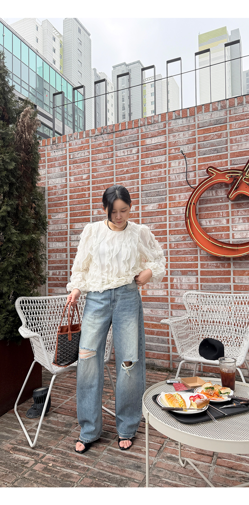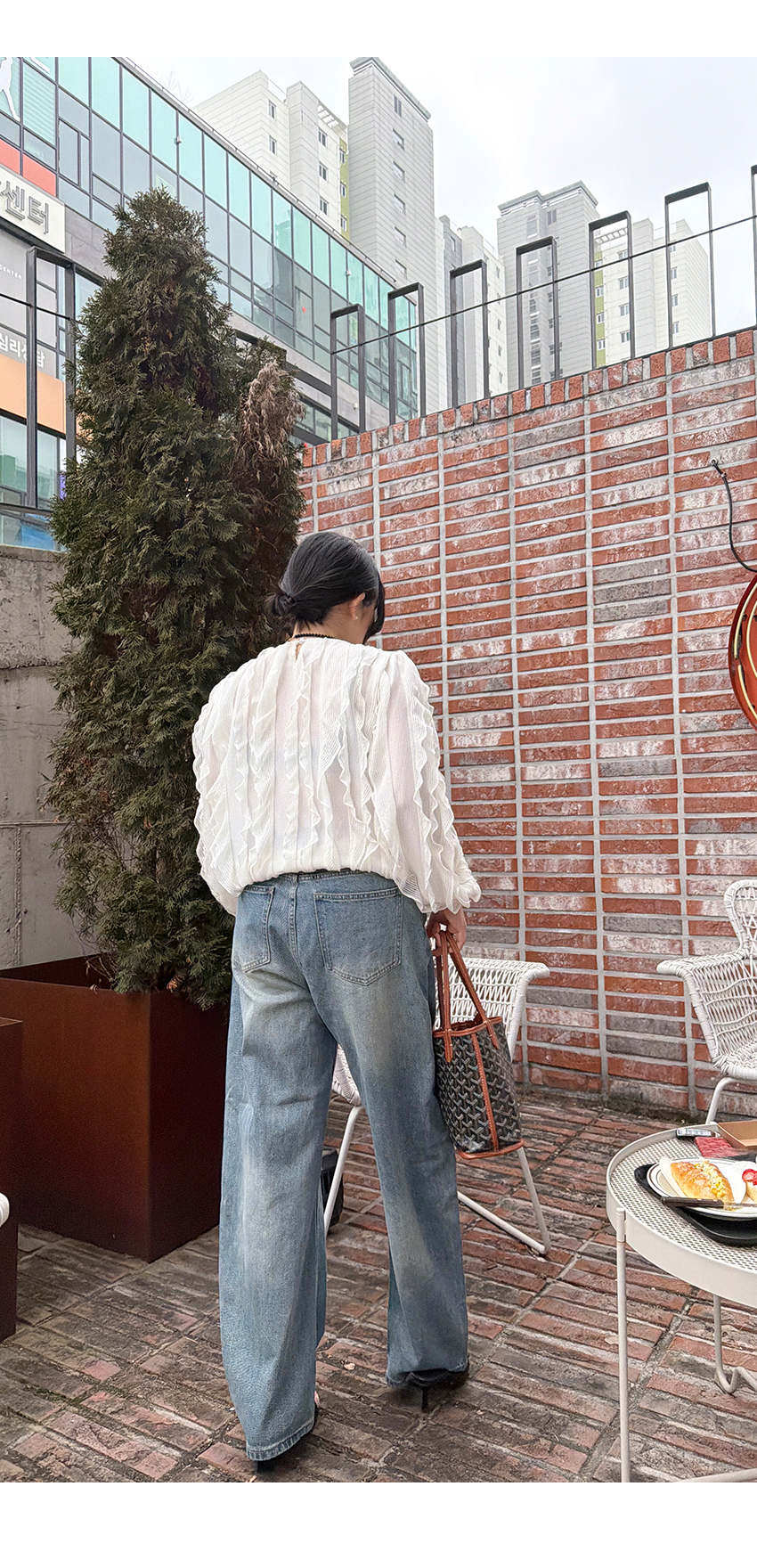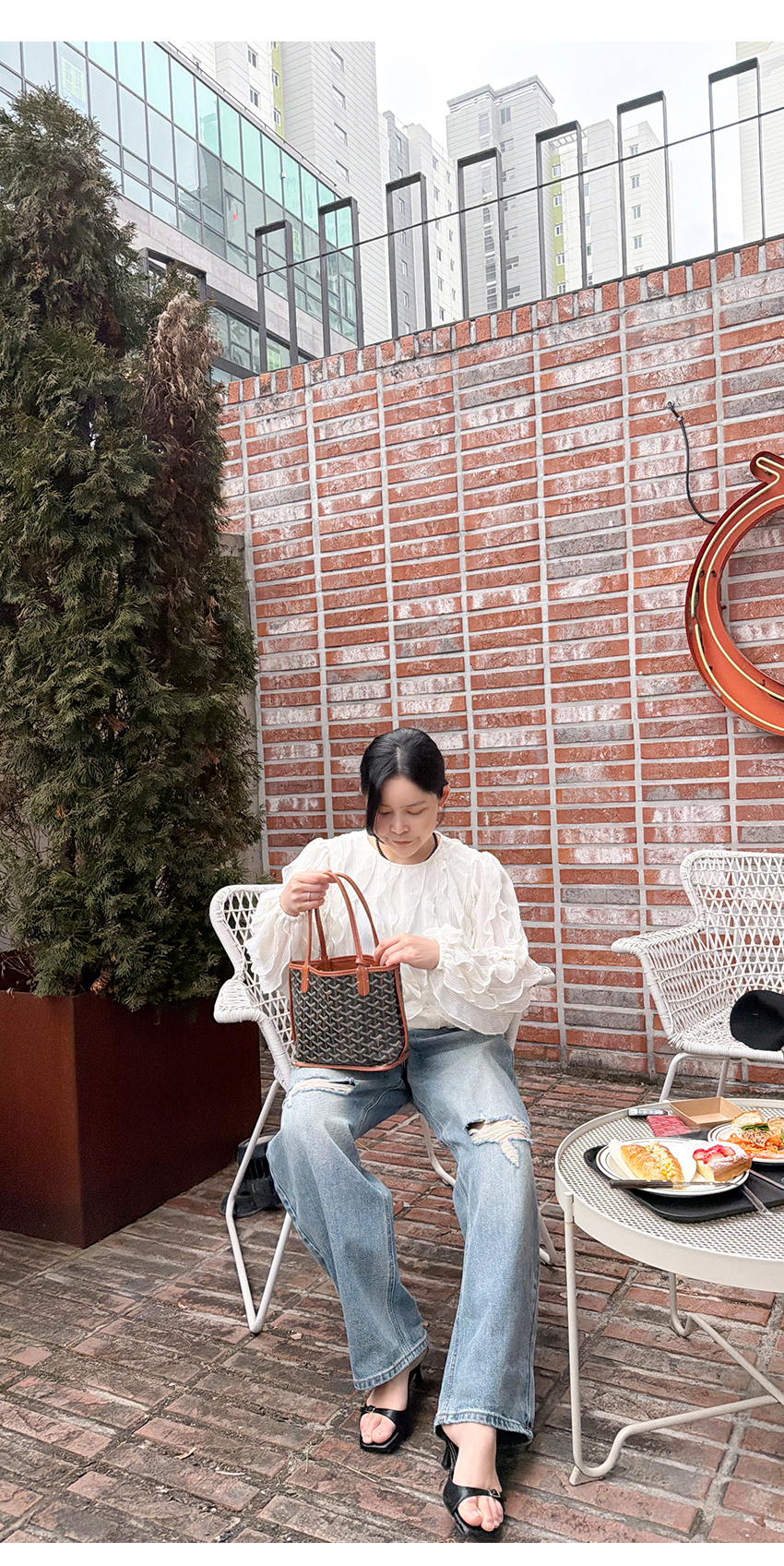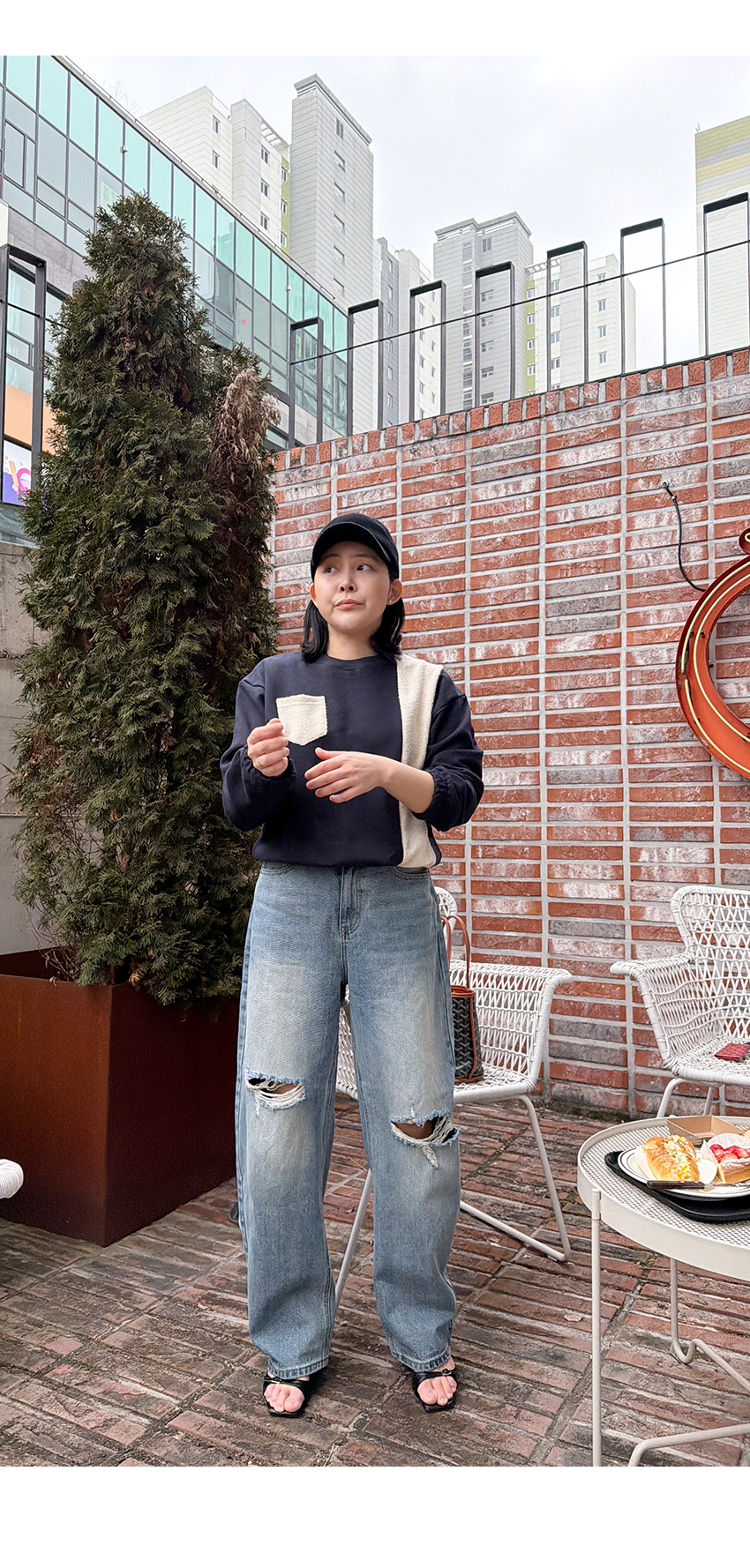 하이웨스트 라인에 전체적으로 넉넉한 핏이라