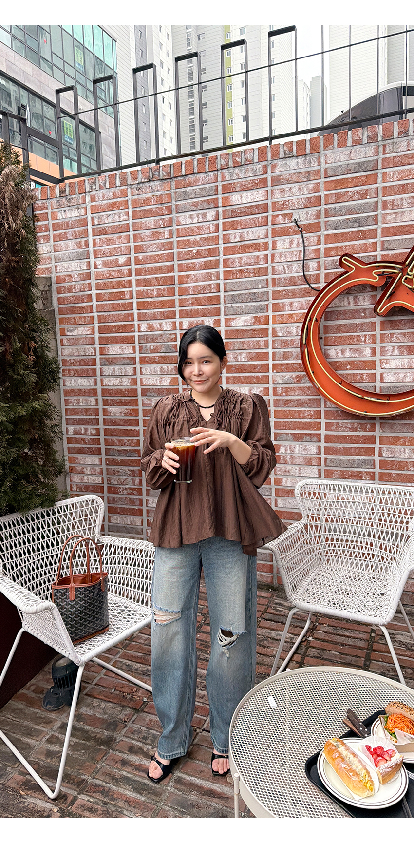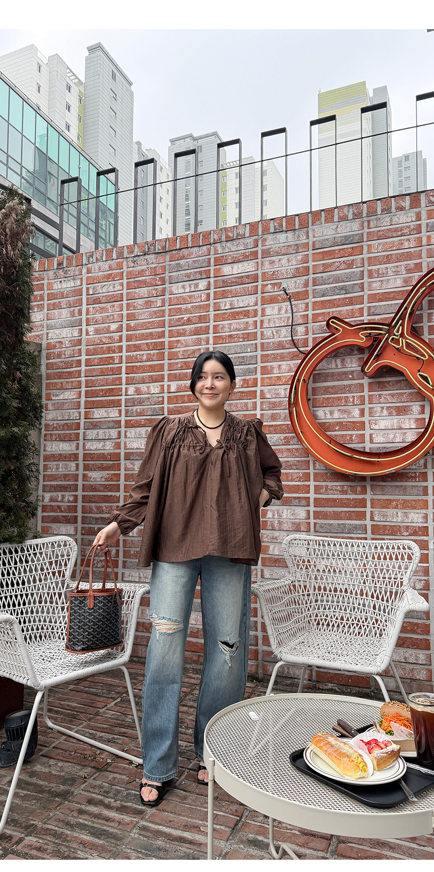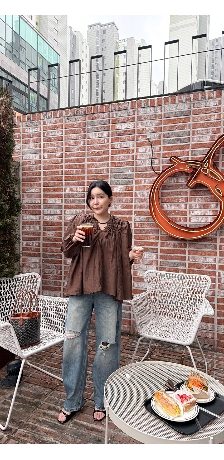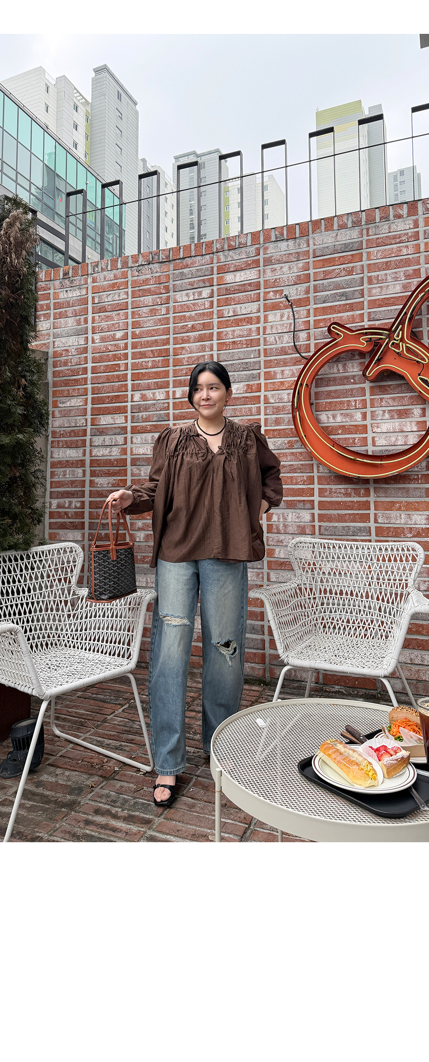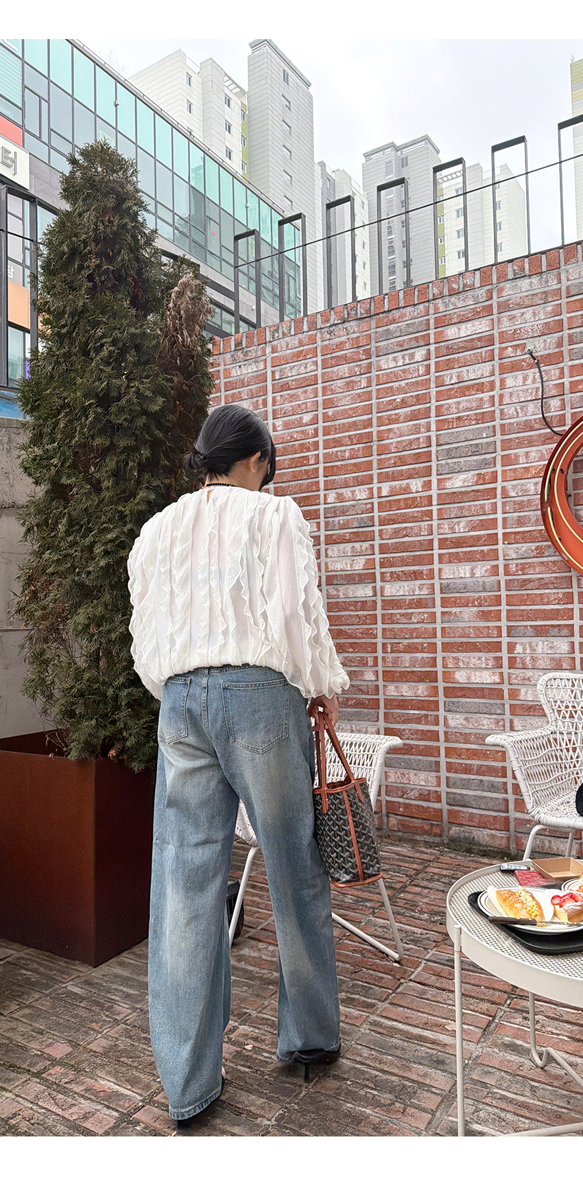 하이웨스트 라인에 전체적으로 넉넉한 핏이라