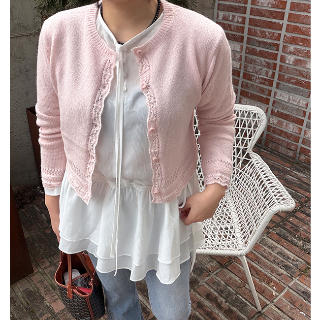 자잘한 레이스 패턴이 사랑스러우면서도걸리쉬한 분위기를 어필해주며,여성미를 어필해드립니다,