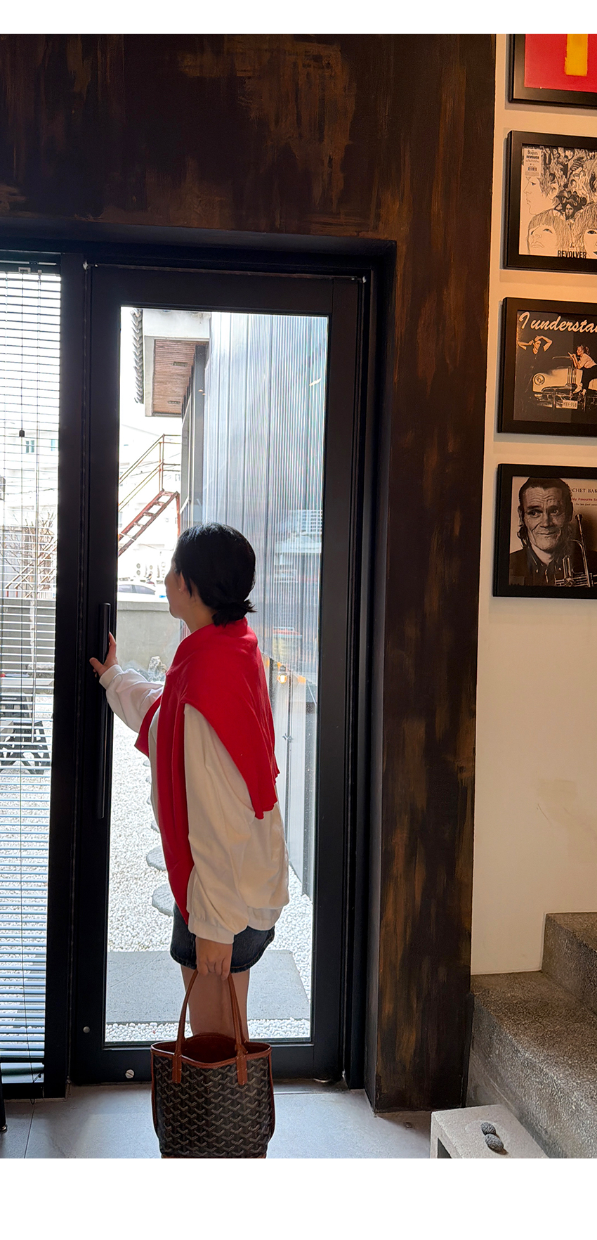 얇은소재의 긴팔로 에어컨실내에서도 제격이구요,