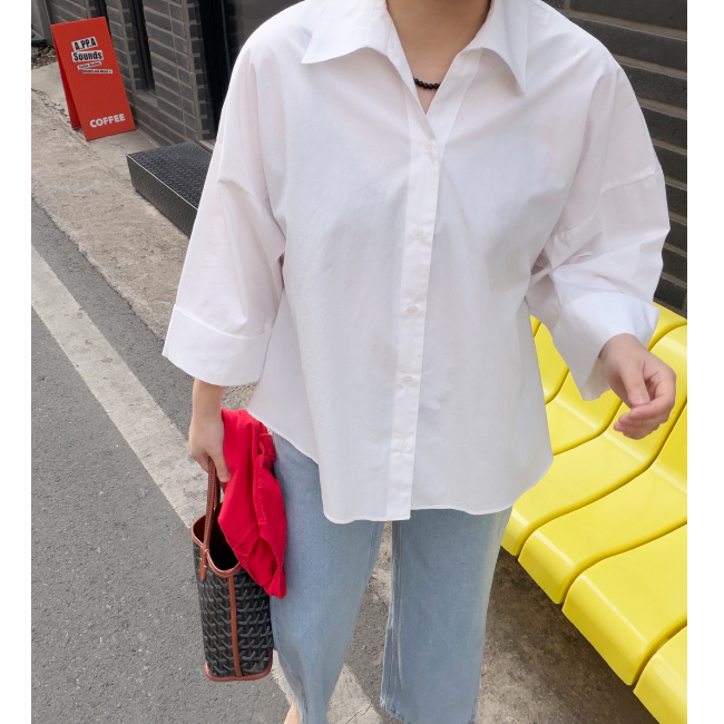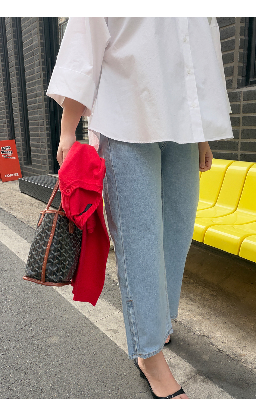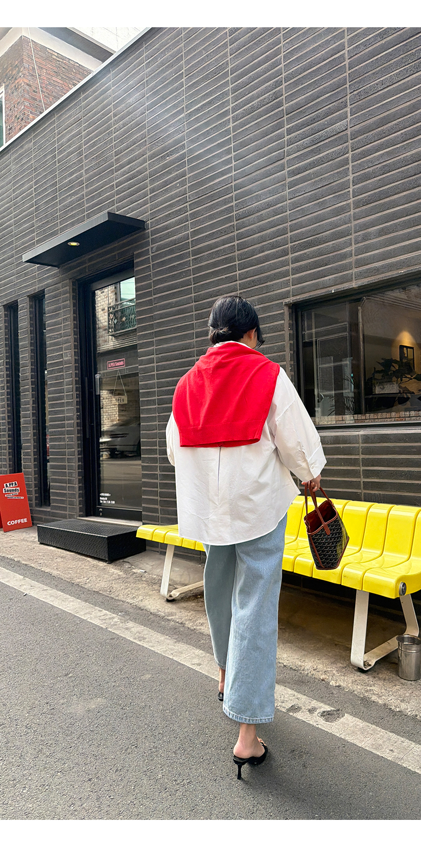 브이넥 네크라인으로 은은하게 드러나는 목선과 쇄골라인이