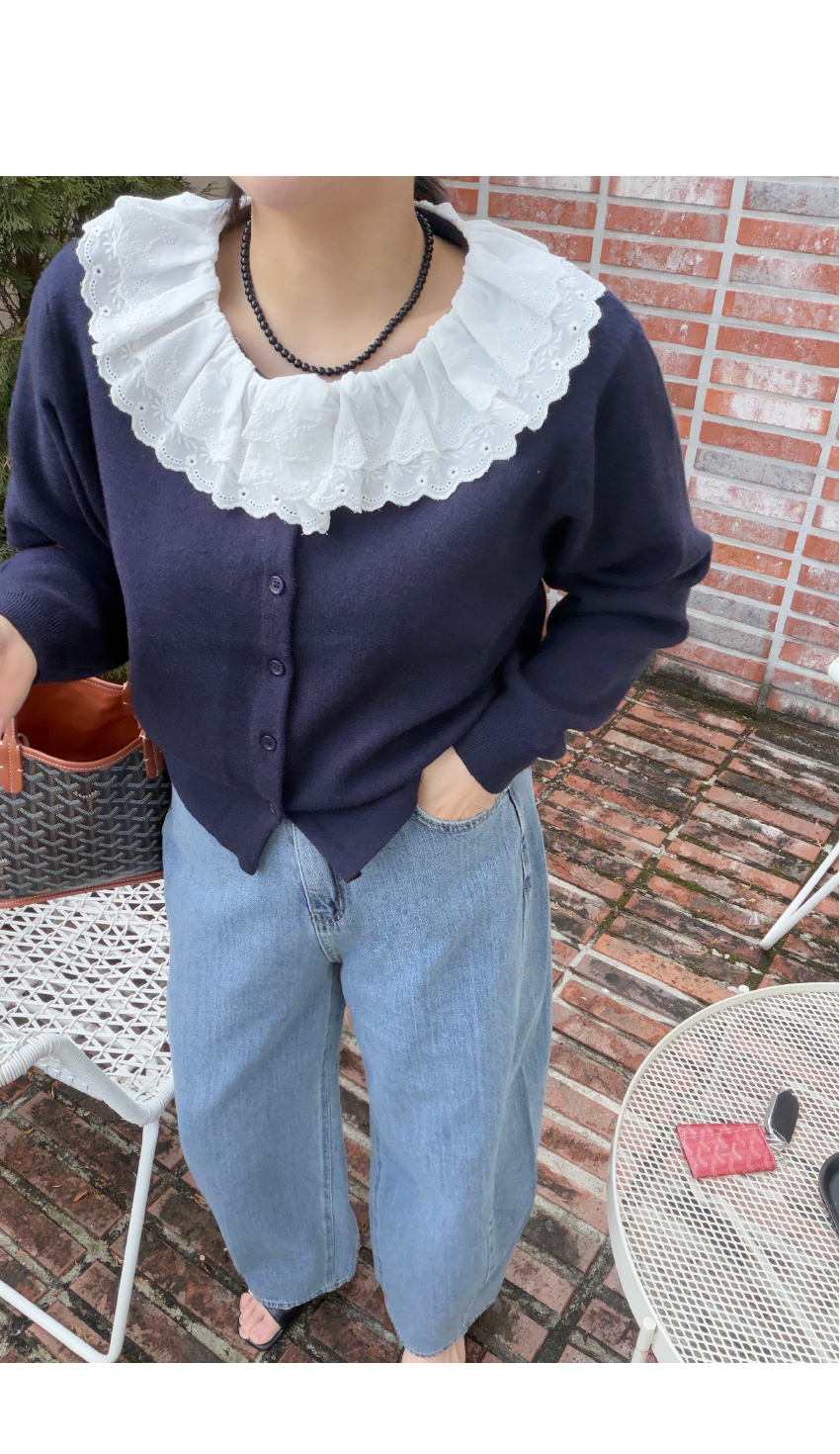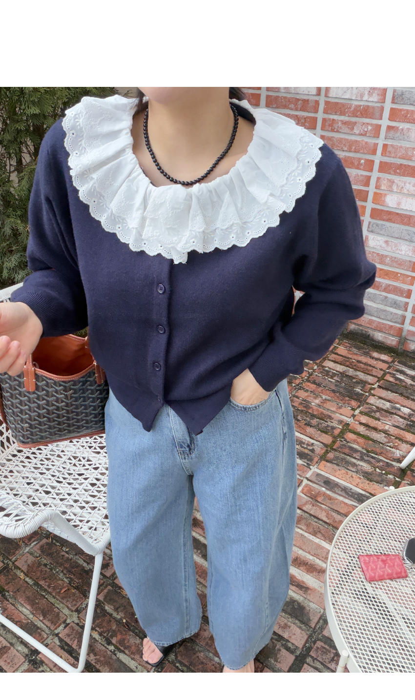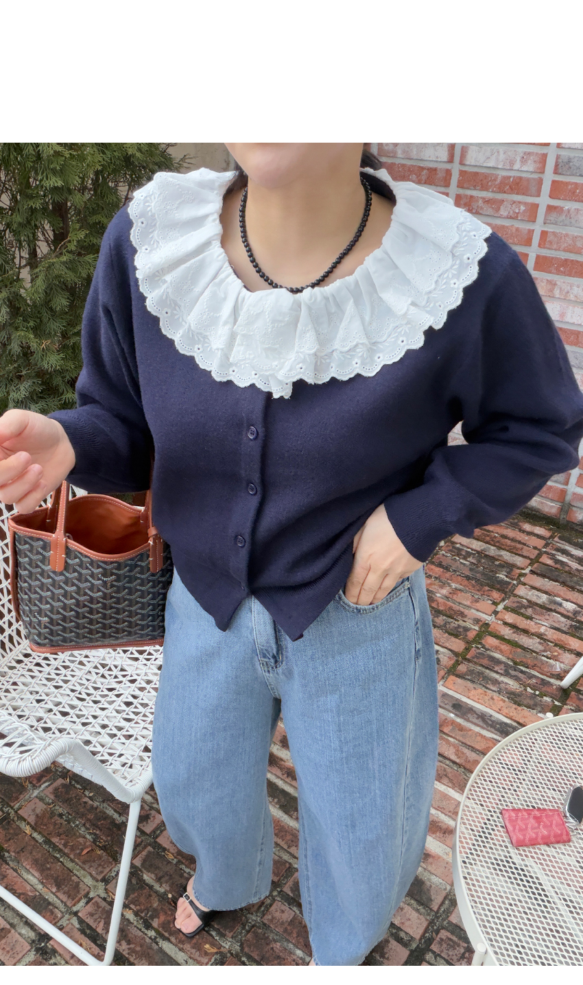 페미닌한 무드의 감도를 높여드릴 가디건이에요,심플한 실루엣으로 여성스러운 무드를 어필해드리는 제품입니다,앞중심 단추로 간편한 클로징을 도와드리며, 깔끔한 실루엣을 연출해드려요,네크라인부터 떨어지는 프릴레이스가 은은한 포인트가 되어드리며, 부드러운 텍스처로 편안한 착용감은 물론,슬랙스부터 데님,스커트까지 다양하게 즐겨주세요,컬러는 그레이,네이비,레드 총 3컬러로 준비해보았구요사이즈는 프리사이즈로 44-66사이즈까지 추천해드리며정확한 사이즈는 상세표를 참고해주세요!